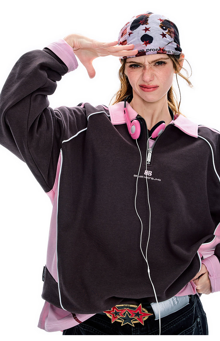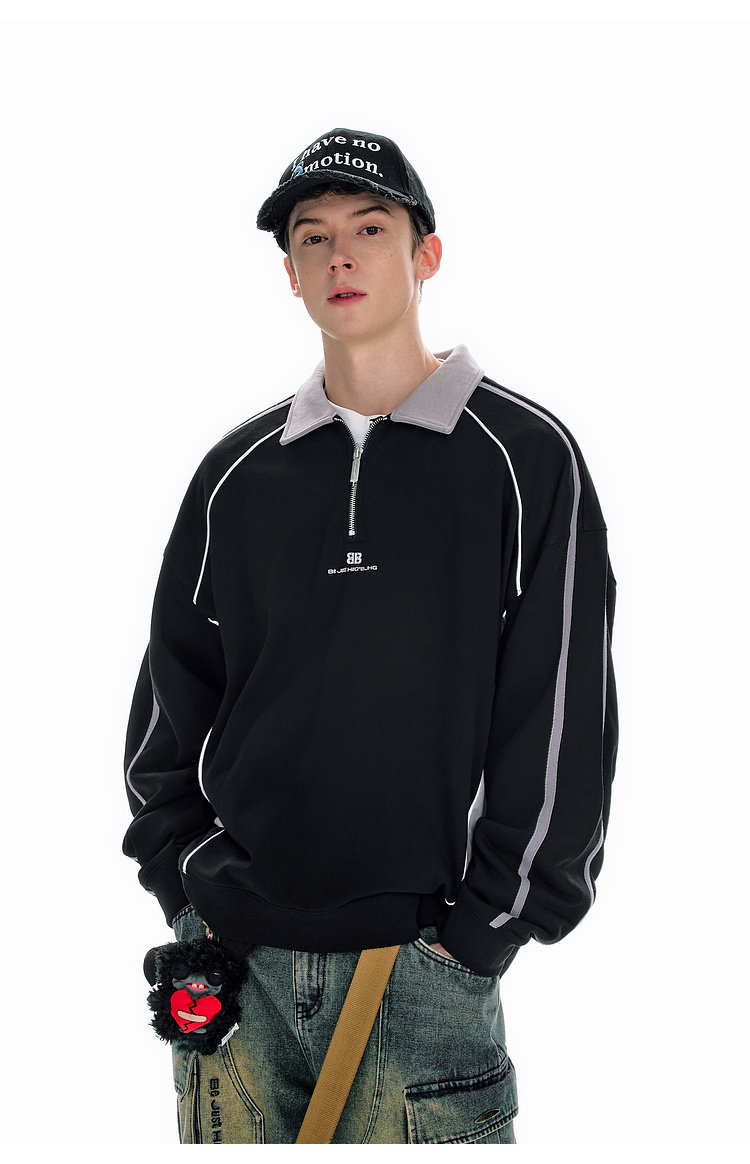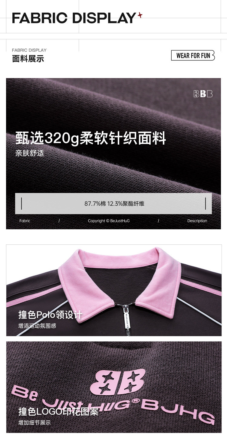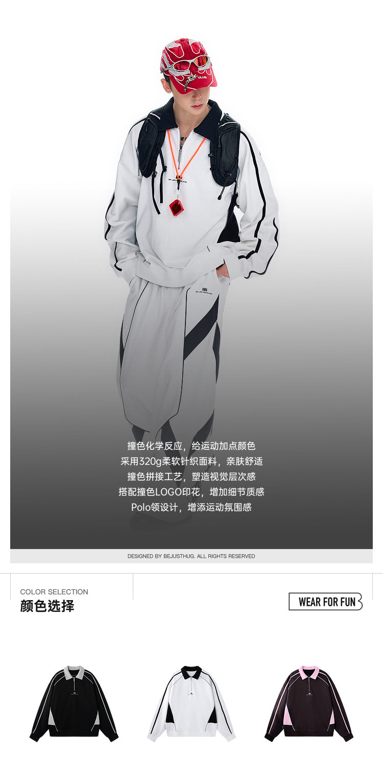 BJHG不计后果polo领美式卫衣男款运动春季新款撞色重磅针织上衣女