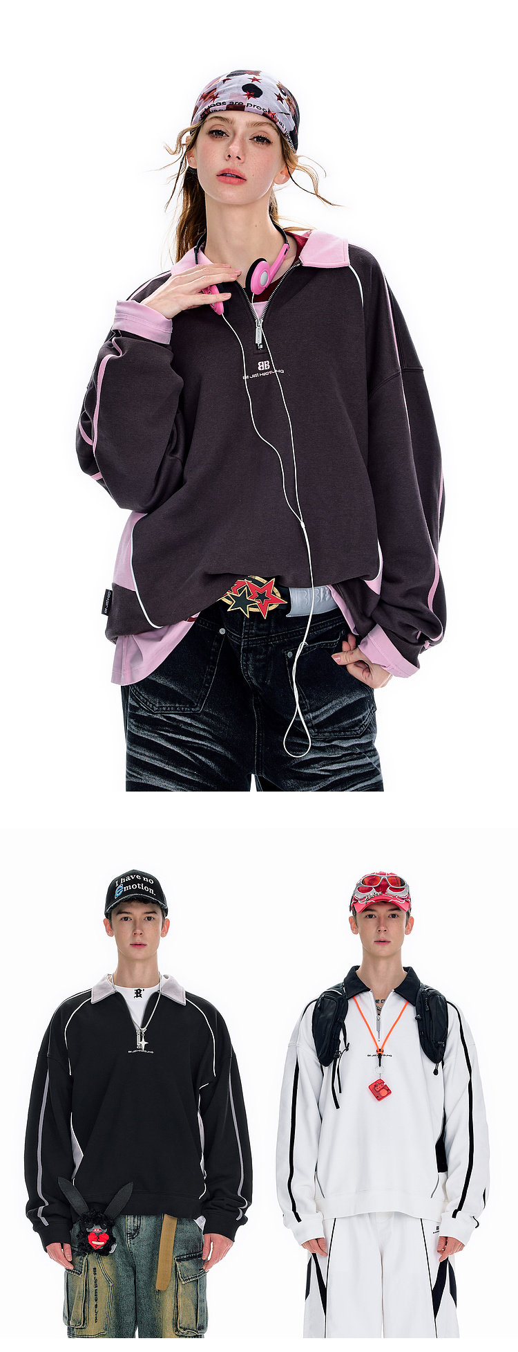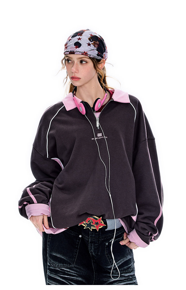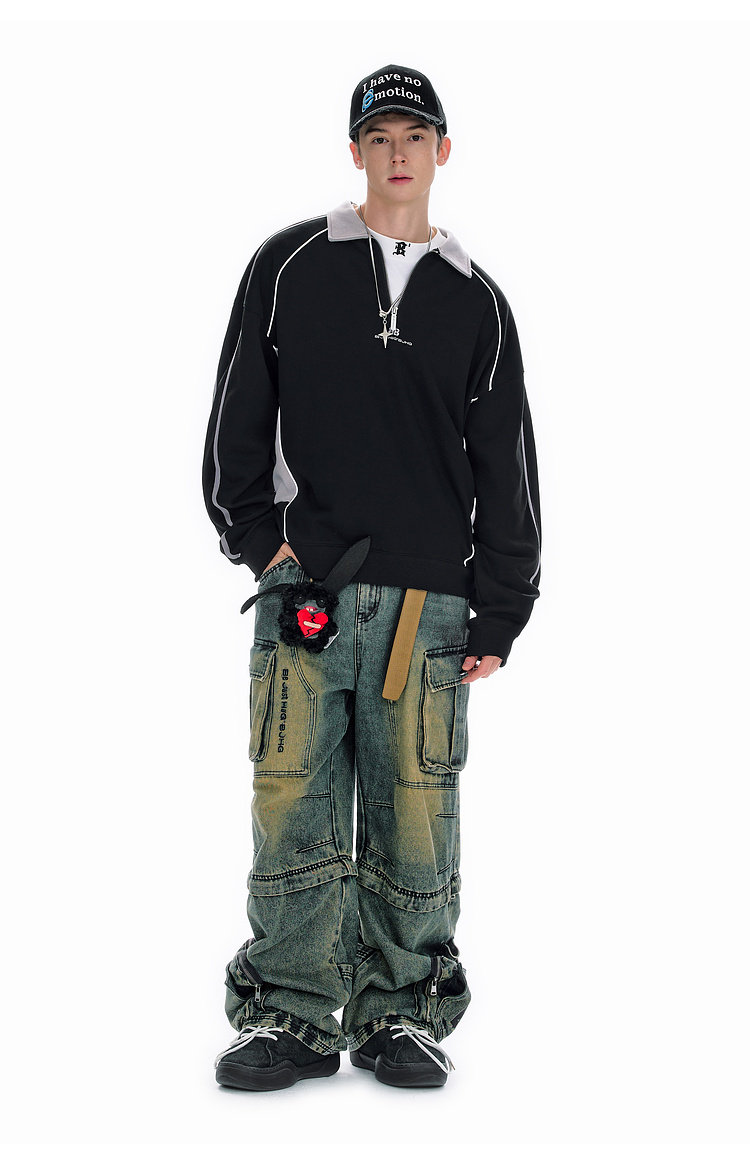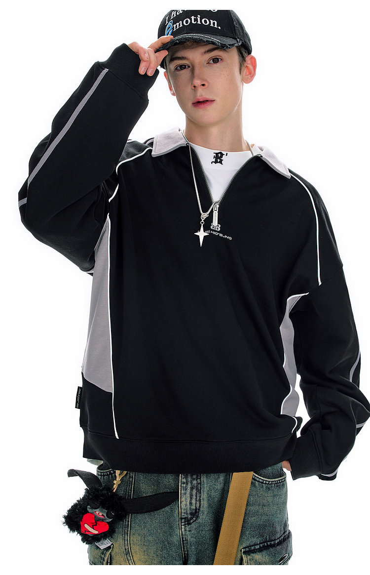 BJHG不计后果polo领美式卫衣男款运动春季新款撞色重磅针织上衣女