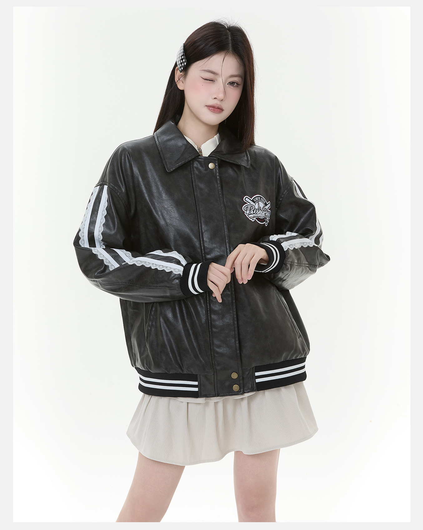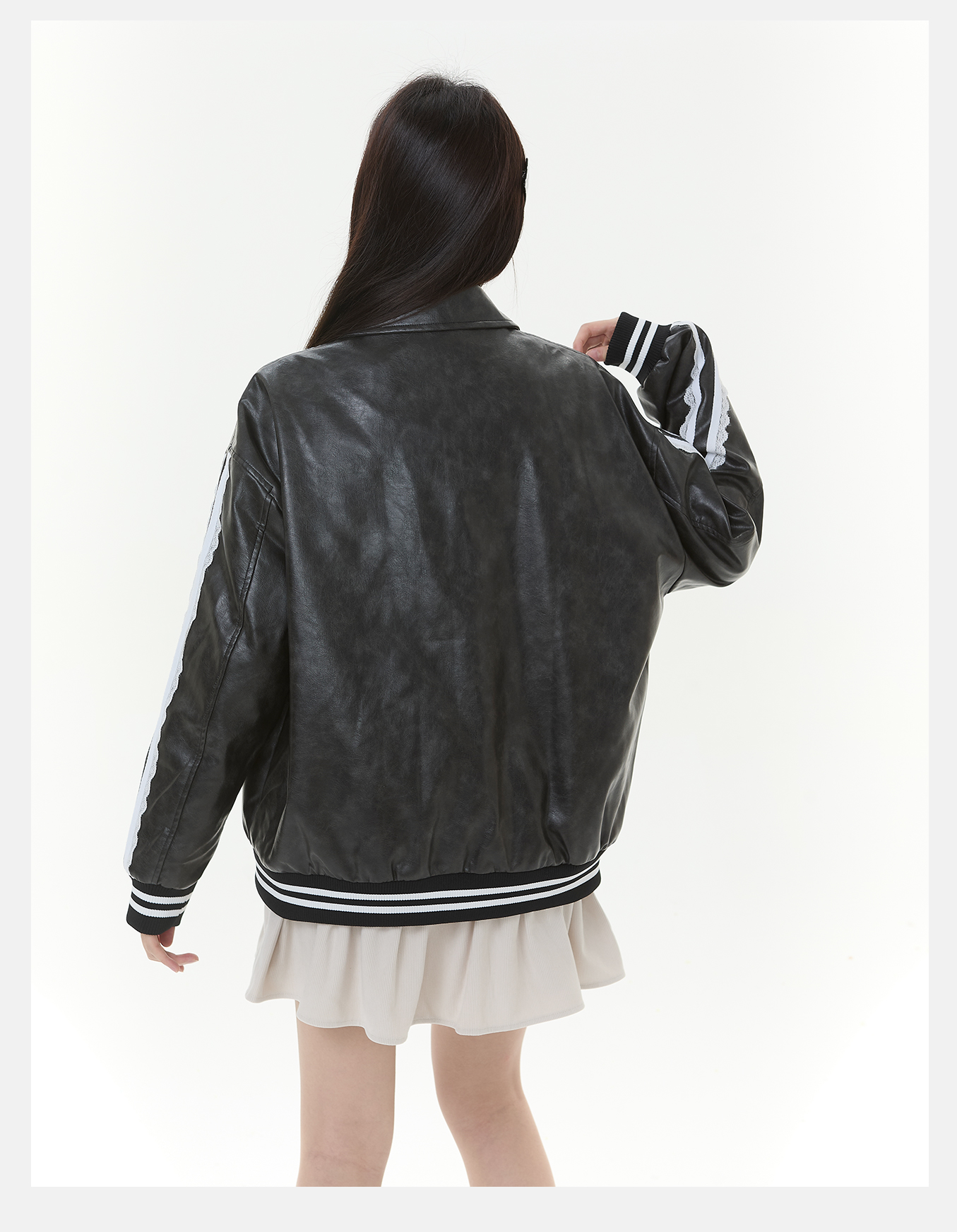 P&X设计师女装2025冬季PU夹克休闲夹棉短款皮衣825422079 黑色