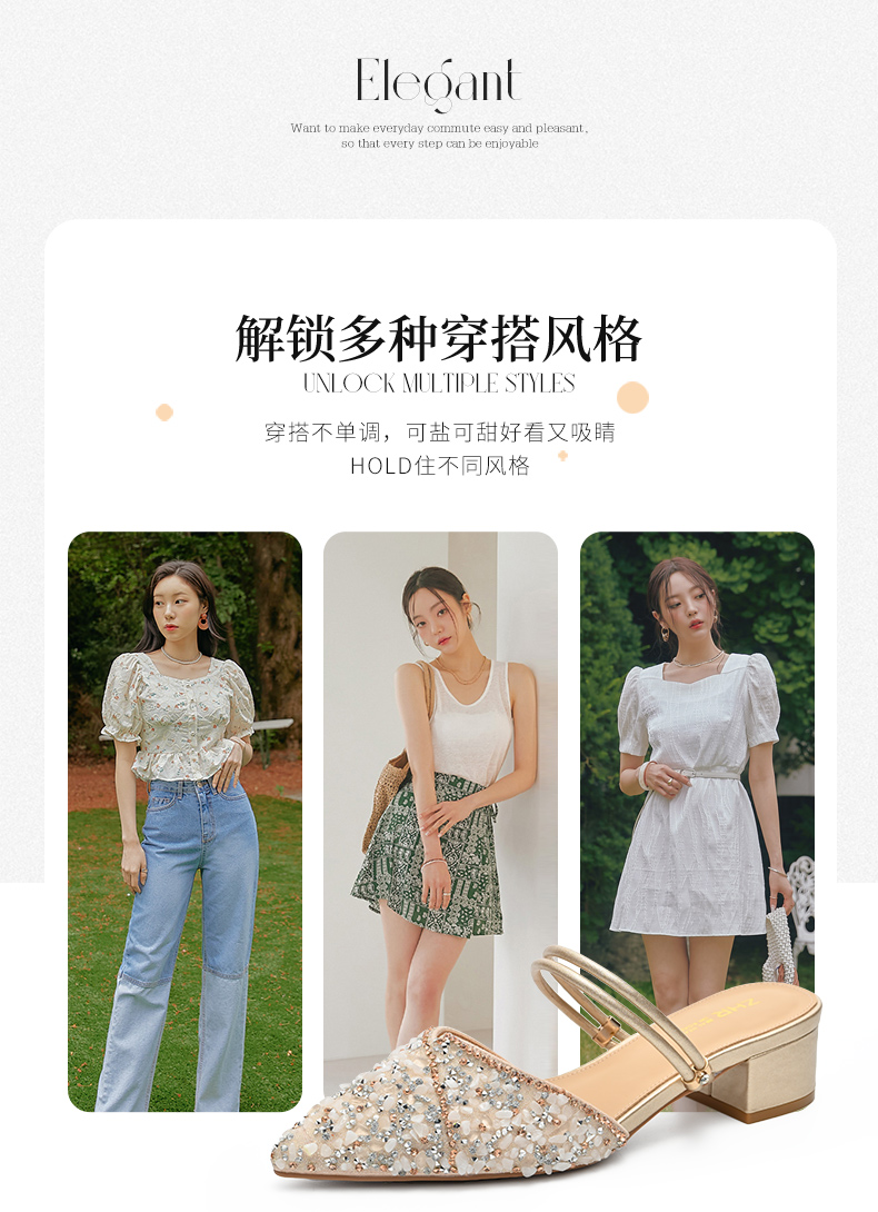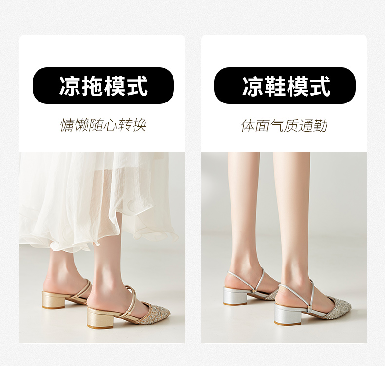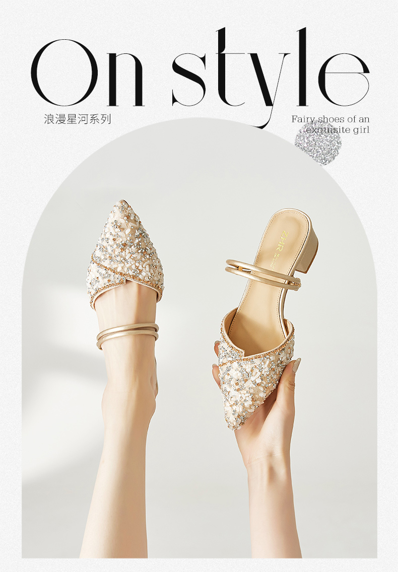 ZHR水钻凉鞋女拖鞋外凉拖鞋女鞋子配裙子穆勒拖夏季女鞋子女百搭