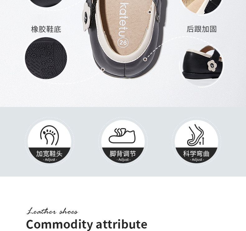 卡特兔女童公主鞋春秋软底小皮鞋休闲时尚演出鞋宴会黑色皮鞋