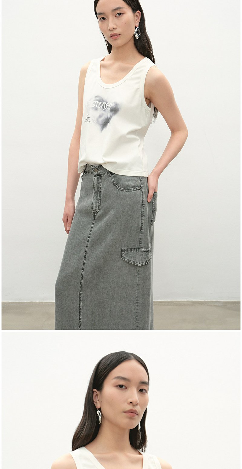 NEELLY纳俪商场同款夏季新款简约休闲无袖字母T恤女个性舒适上衣N25053R01167