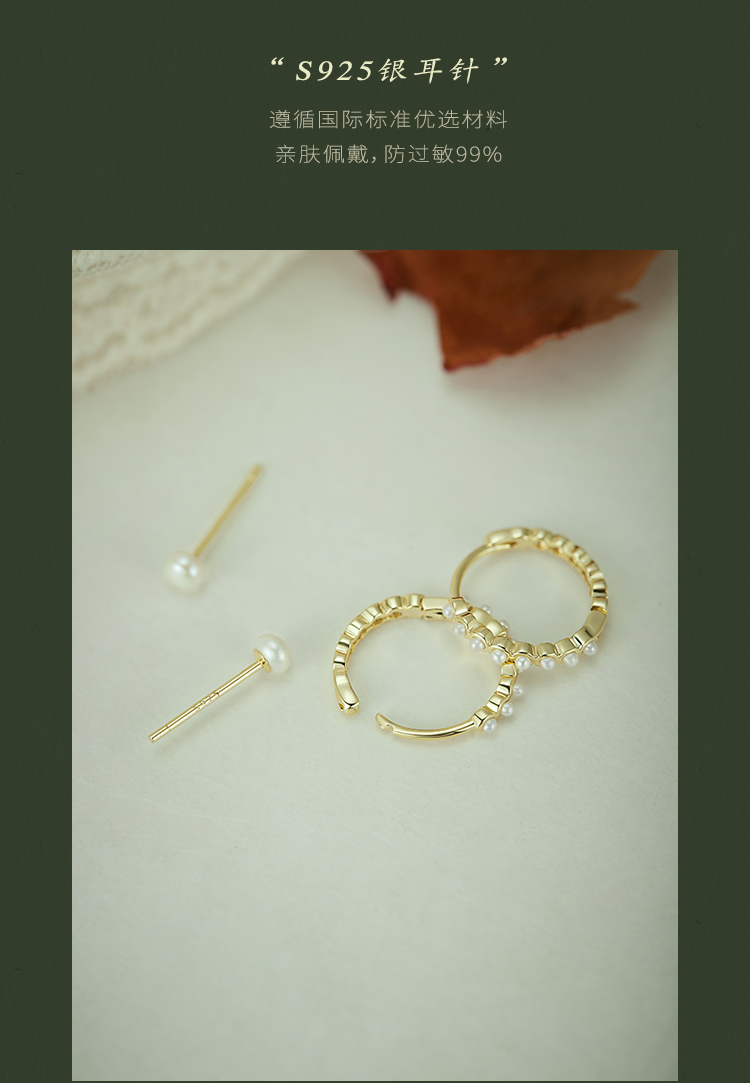 Oflye潮流饰品 小香风珍珠耳环女新款高级感精致耳饰气质轻奢耳扣
