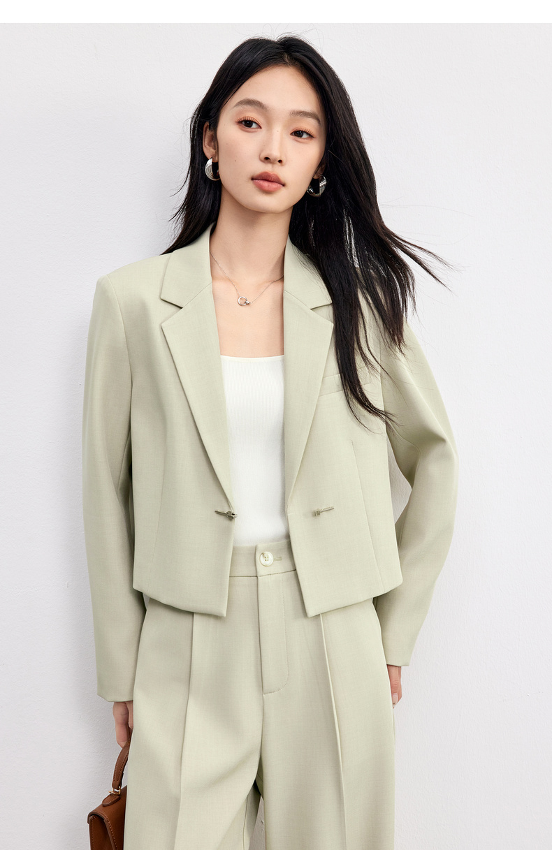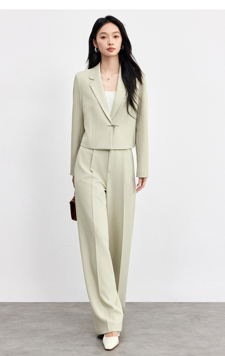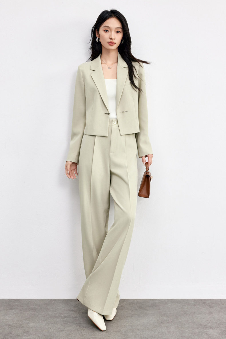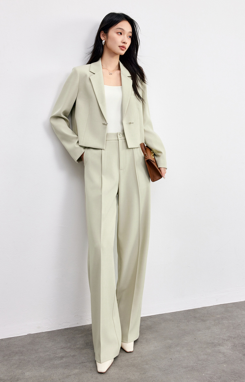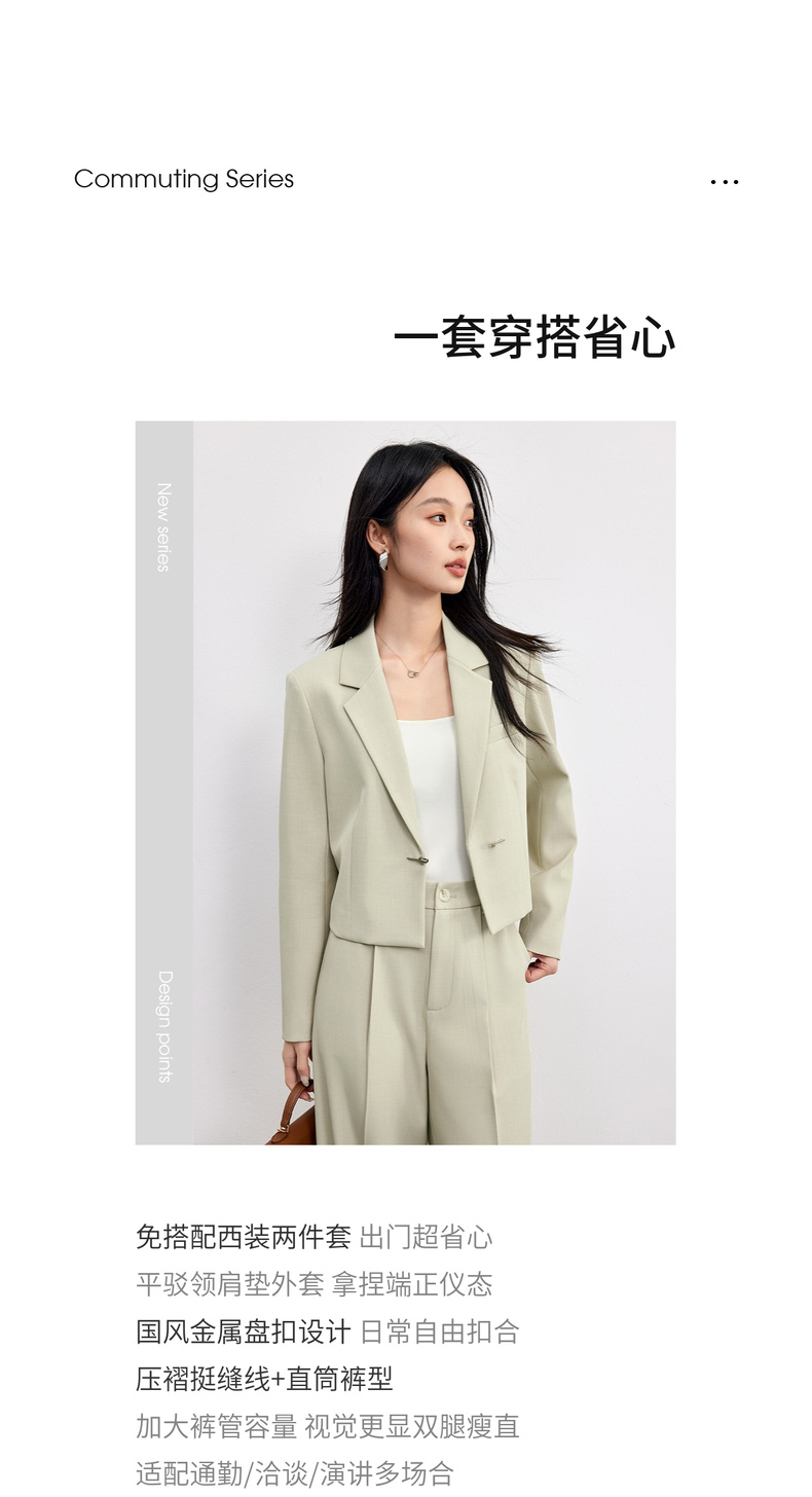 【内购】【免搭配套装】通勤平驳领国风盘扣垫肩短款西装外套高腰直筒长裤-153ZA2516