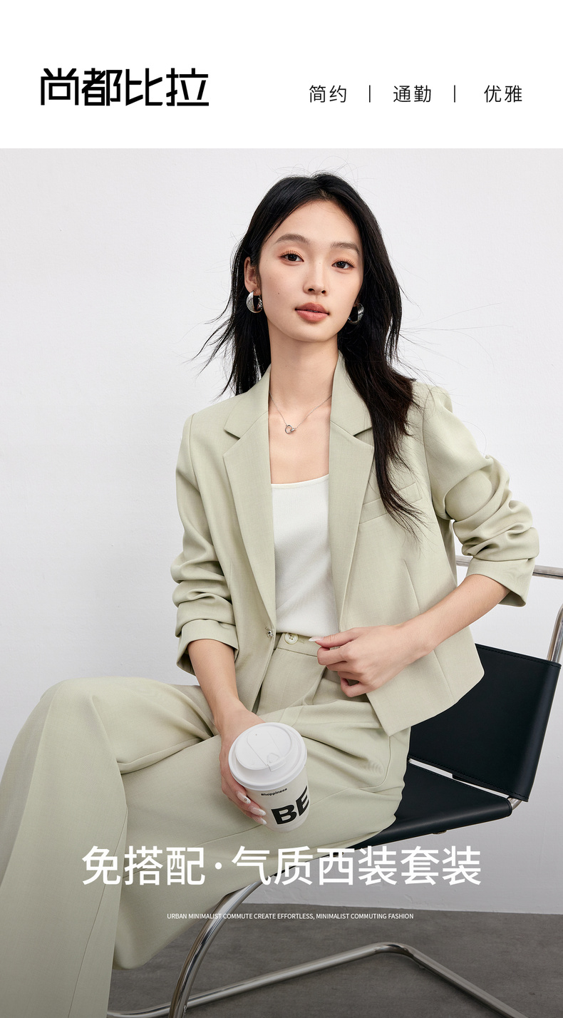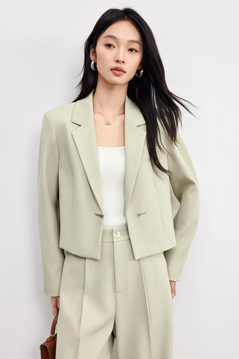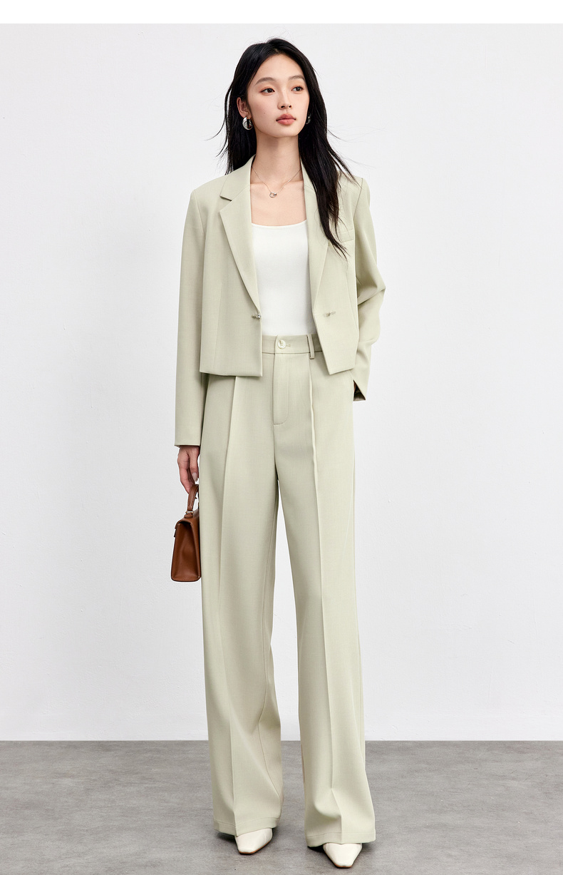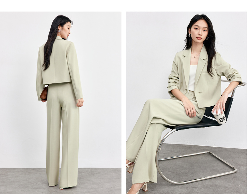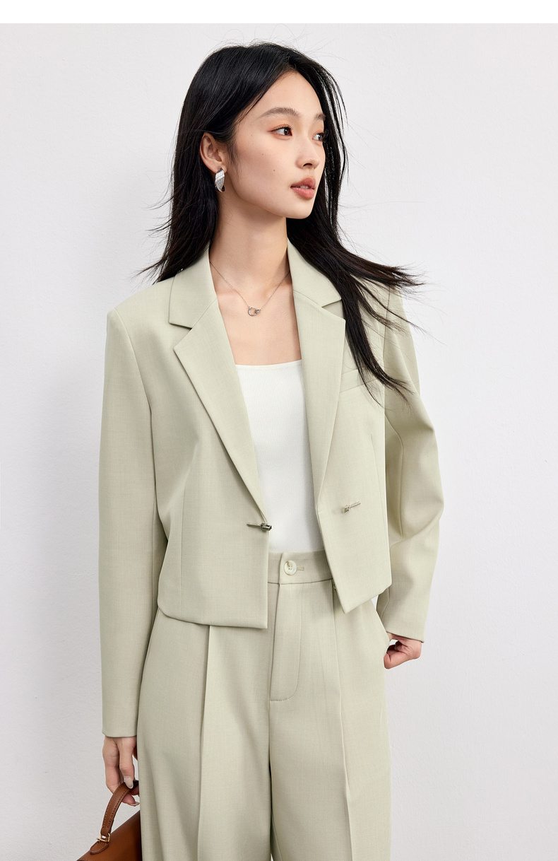 【内购】【免搭配套装】通勤平驳领国风盘扣垫肩短款西装外套高腰直筒长裤-153ZA2516