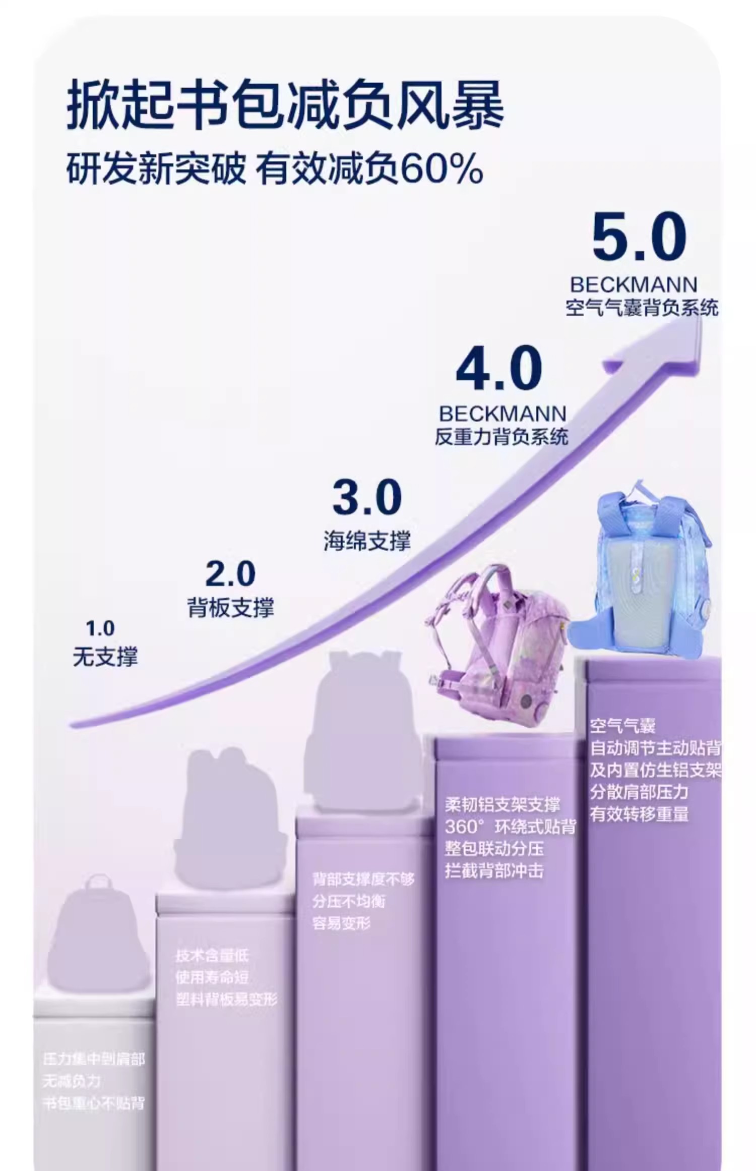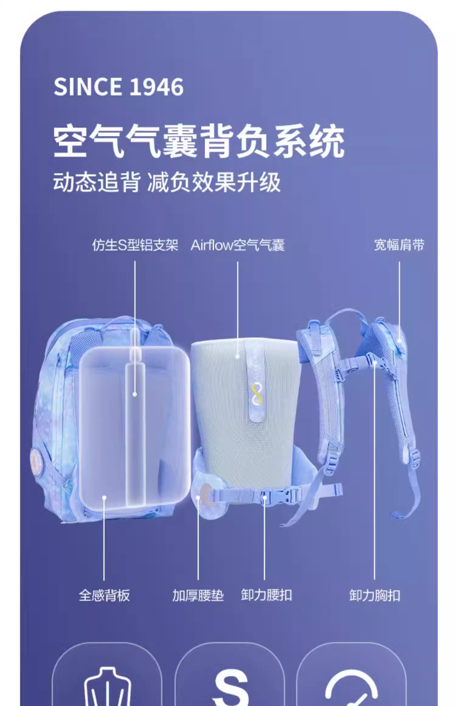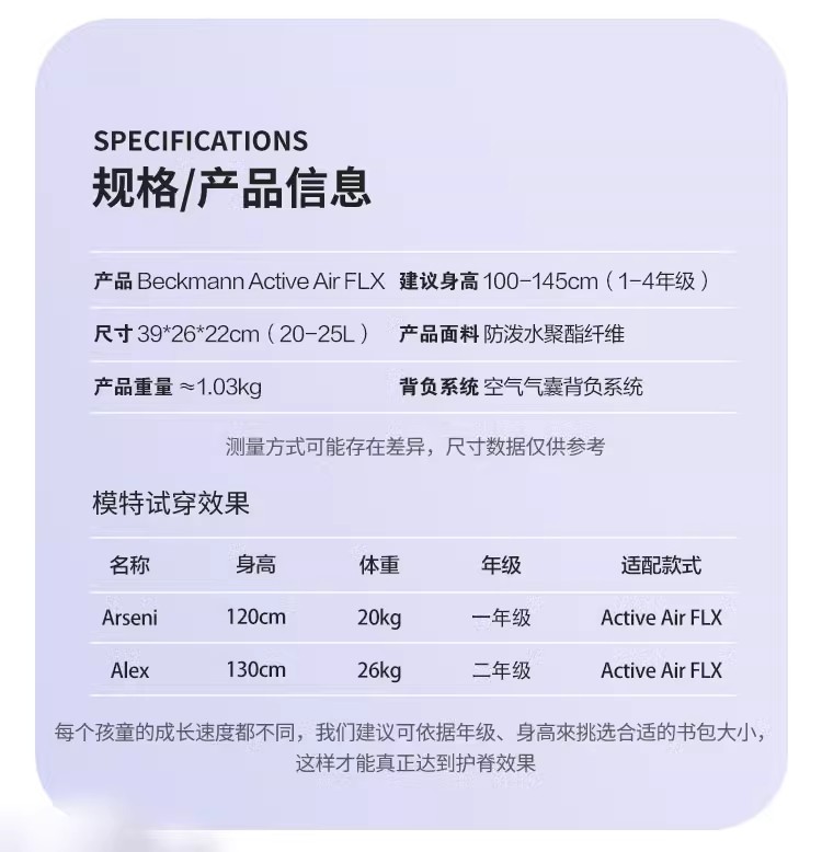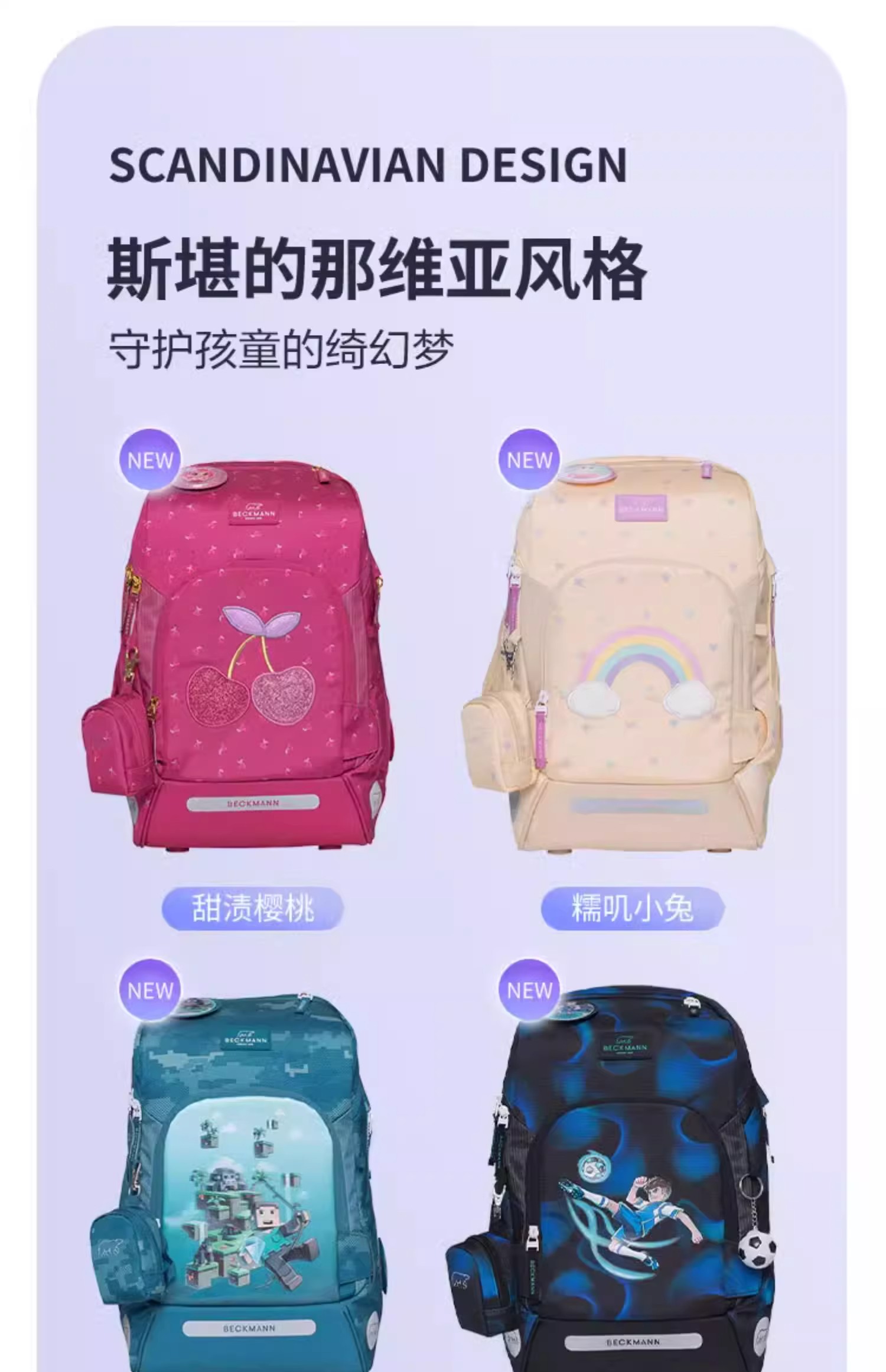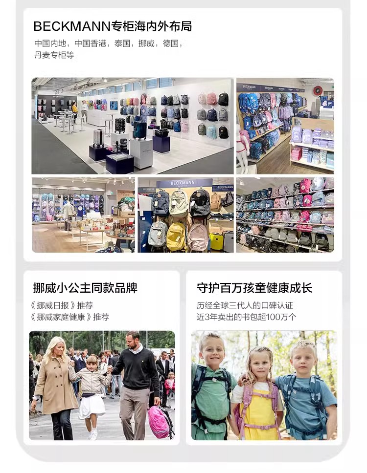 挪威Beckmann贝克曼 魔法气垫系列 挪威Air FLX护脊双肩背包男女1-4年级小学生书包20-25L