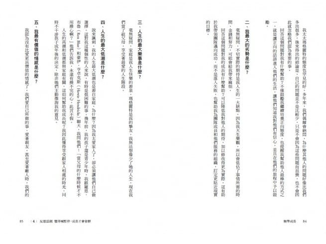 做法》回答七個問題,你想做什麼?你有才華、能力和機會支持自己去做這件事嗎?你知道(今天開始)要執行哪些步驟嗎?……你必須知道你的目標,以及當下的位置,否則很可能會迷路。