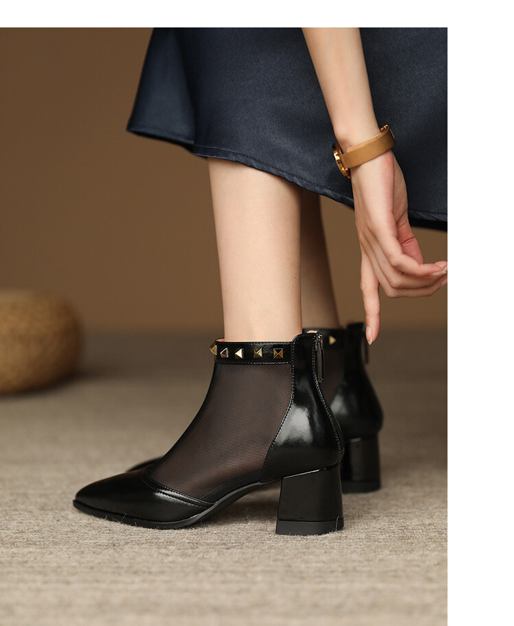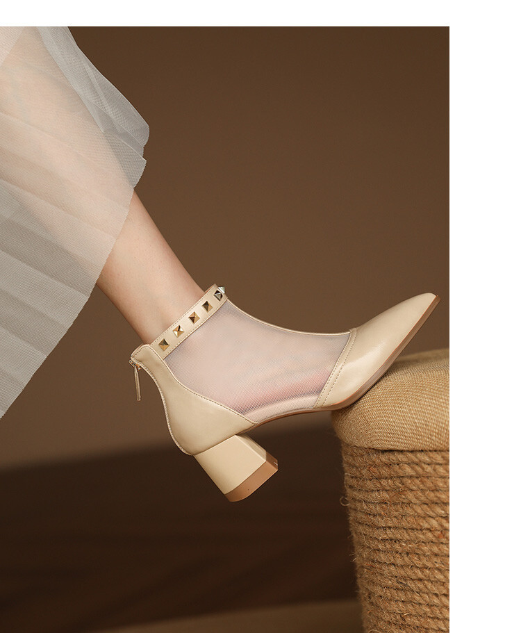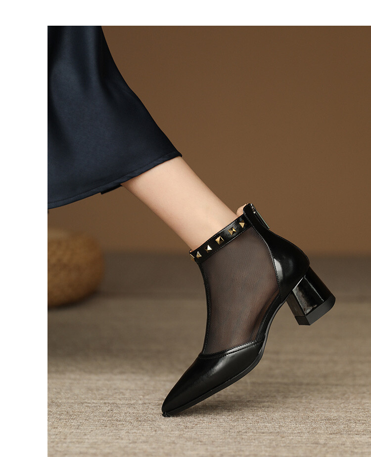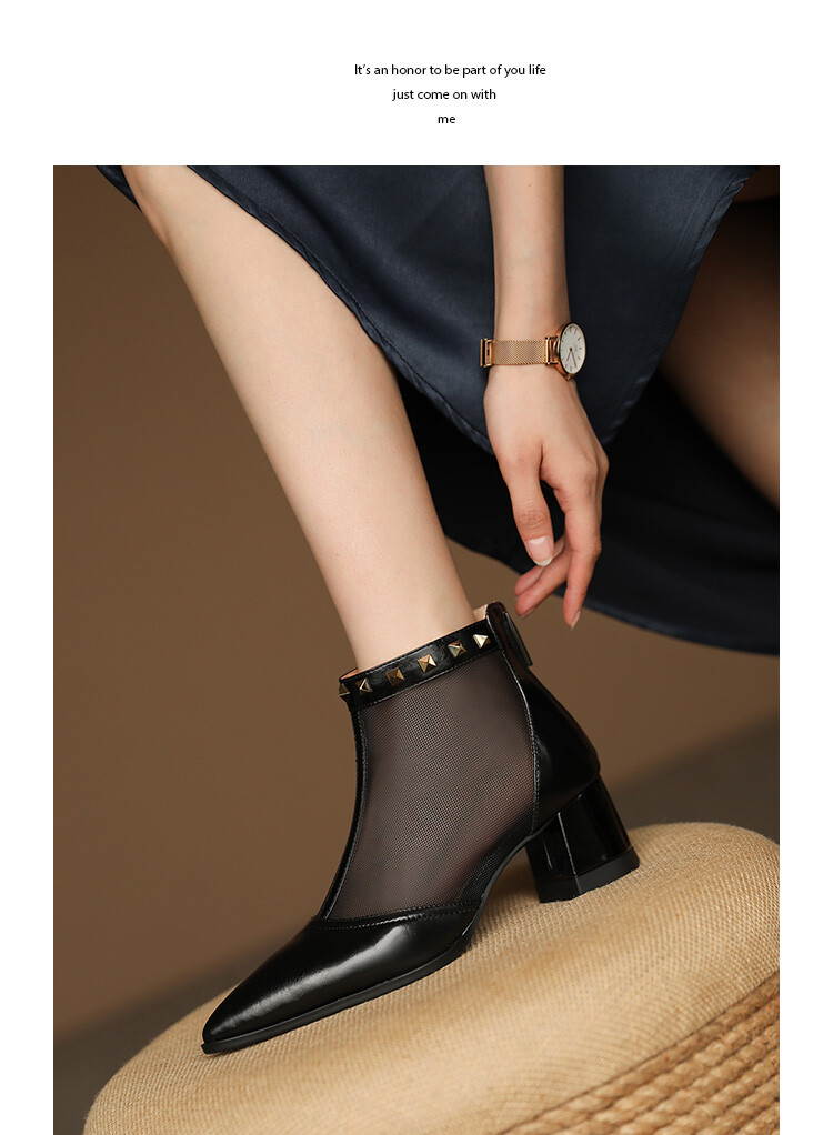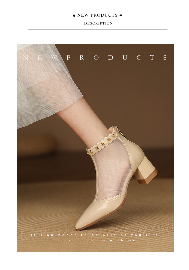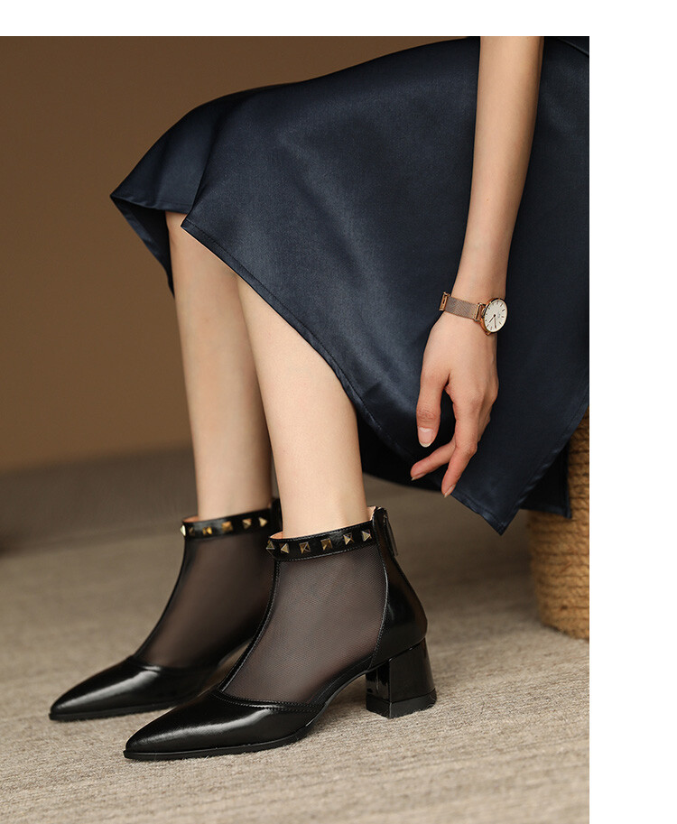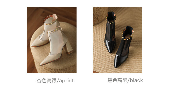时尚优雅,尖头网纱拼接铆钉网靴短筒靴YDE-D5205