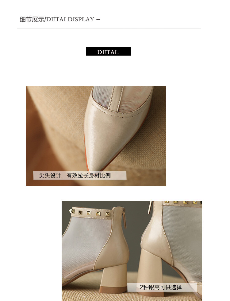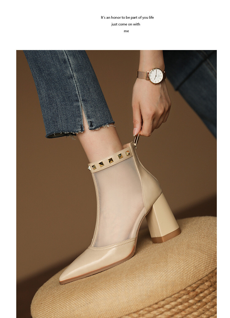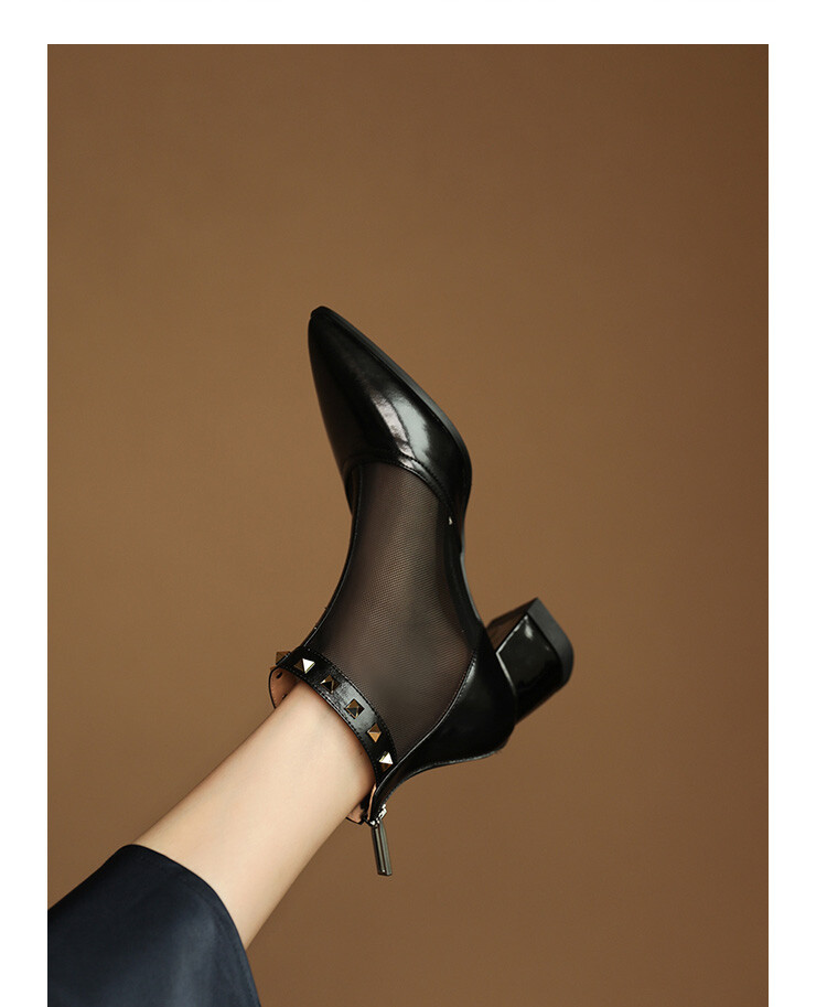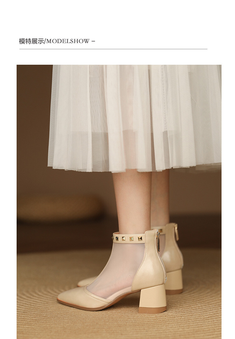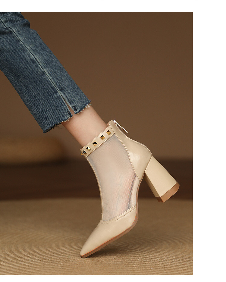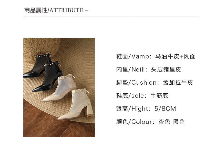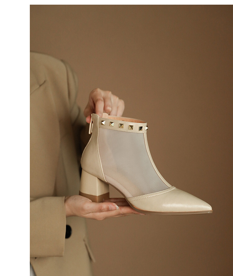 时尚优雅,尖头网纱拼接铆钉网靴短筒靴YDE-D5205