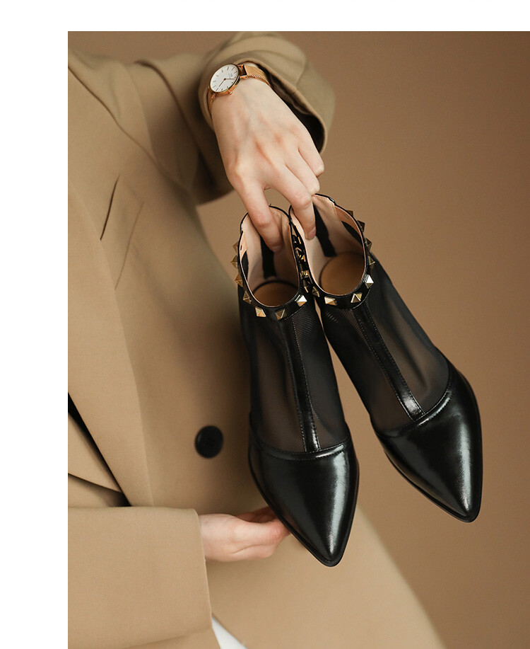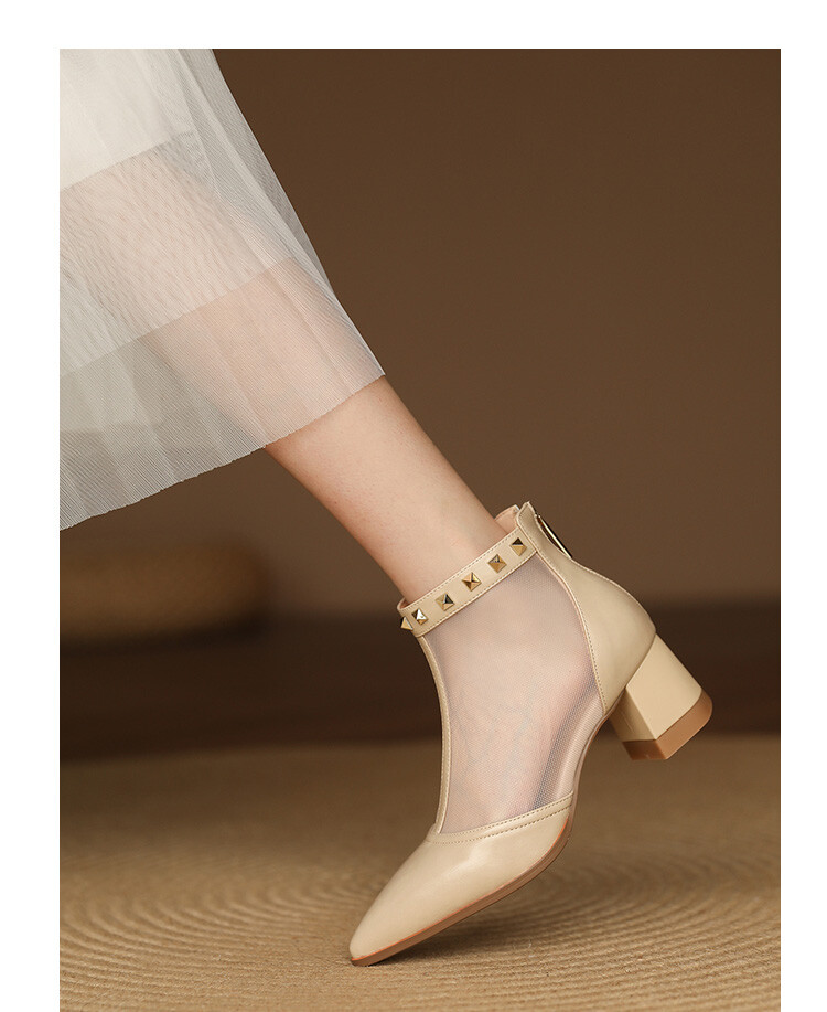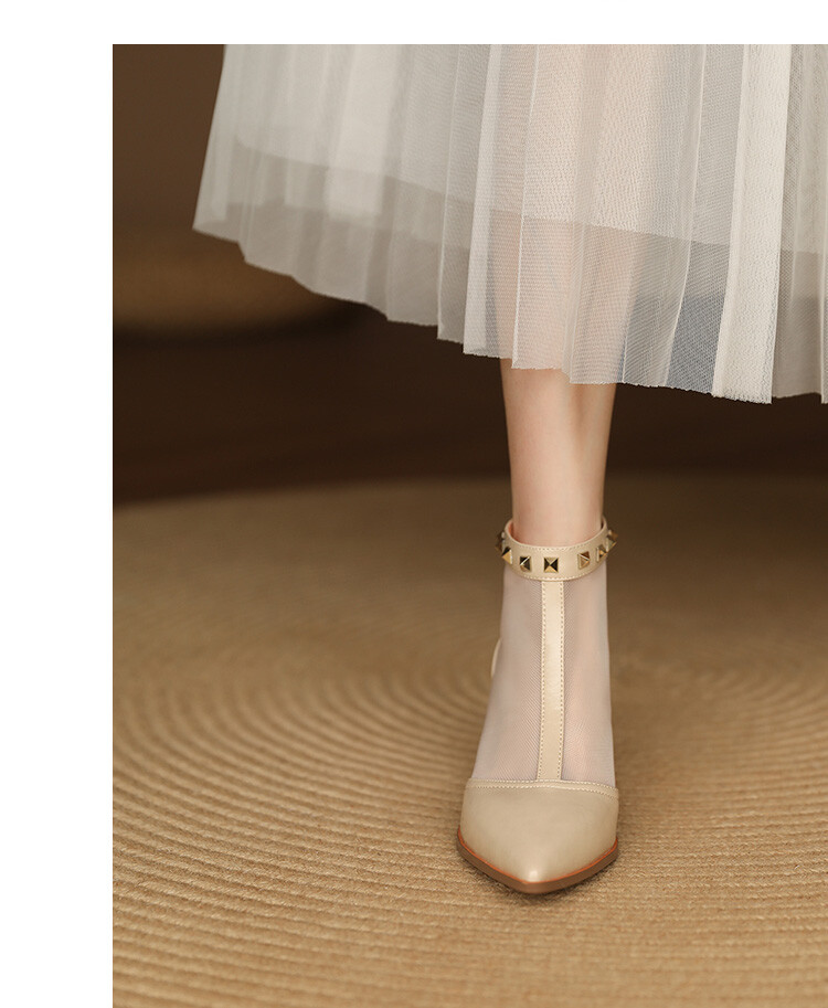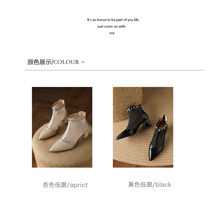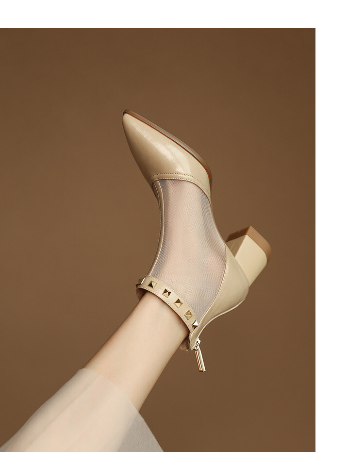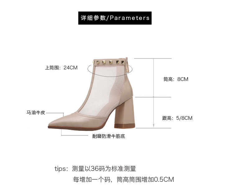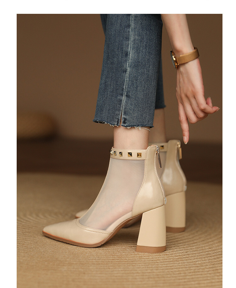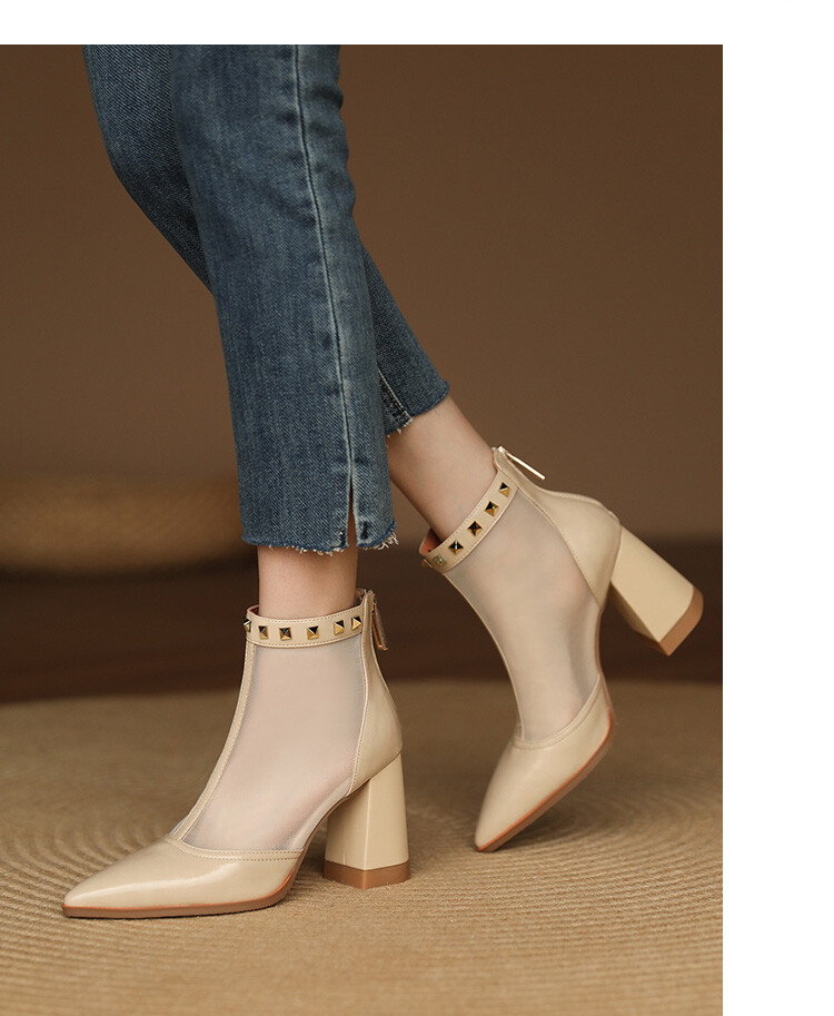 时尚优雅,尖头网纱拼接铆钉网靴短筒靴YDE-D5205