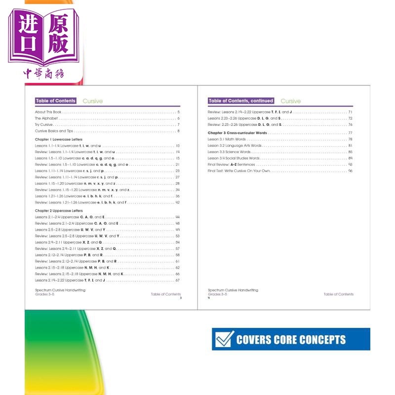 【中商原版】光谱练习册 草书手写 3 - 5 年级Spectrum Cursive Handwriting, Grades 3 - 5英文原版 进口图书 小学教辅参考书