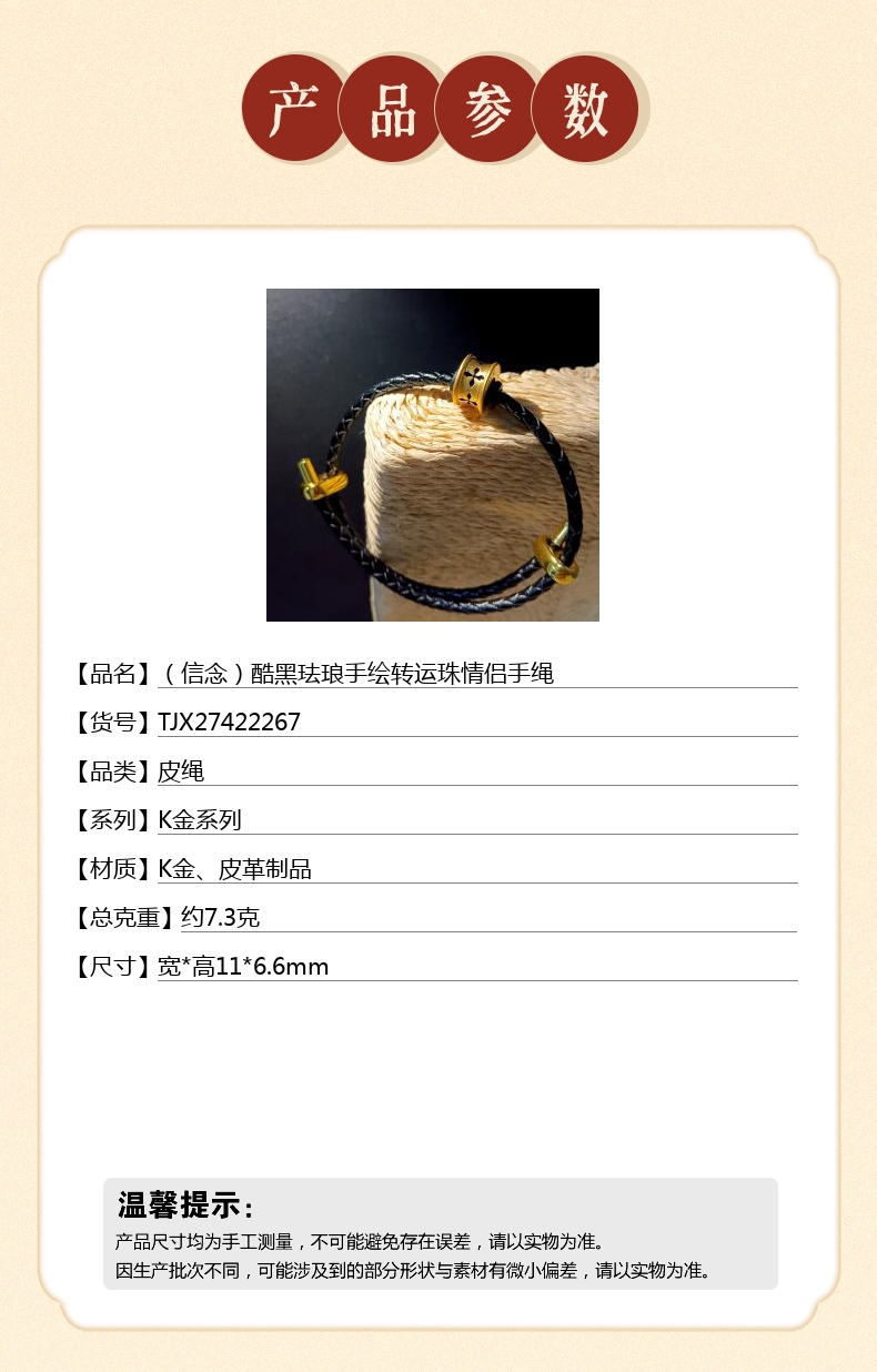 【品名】(信念)酷黑珐琅手绘转运珠情侣手绳