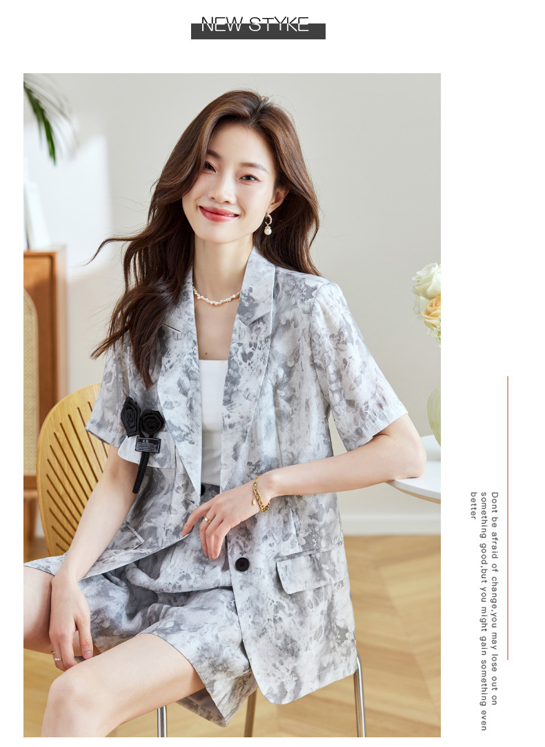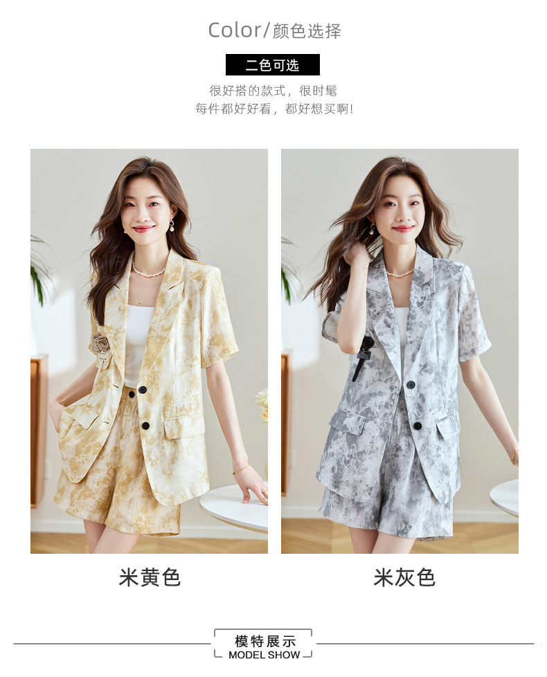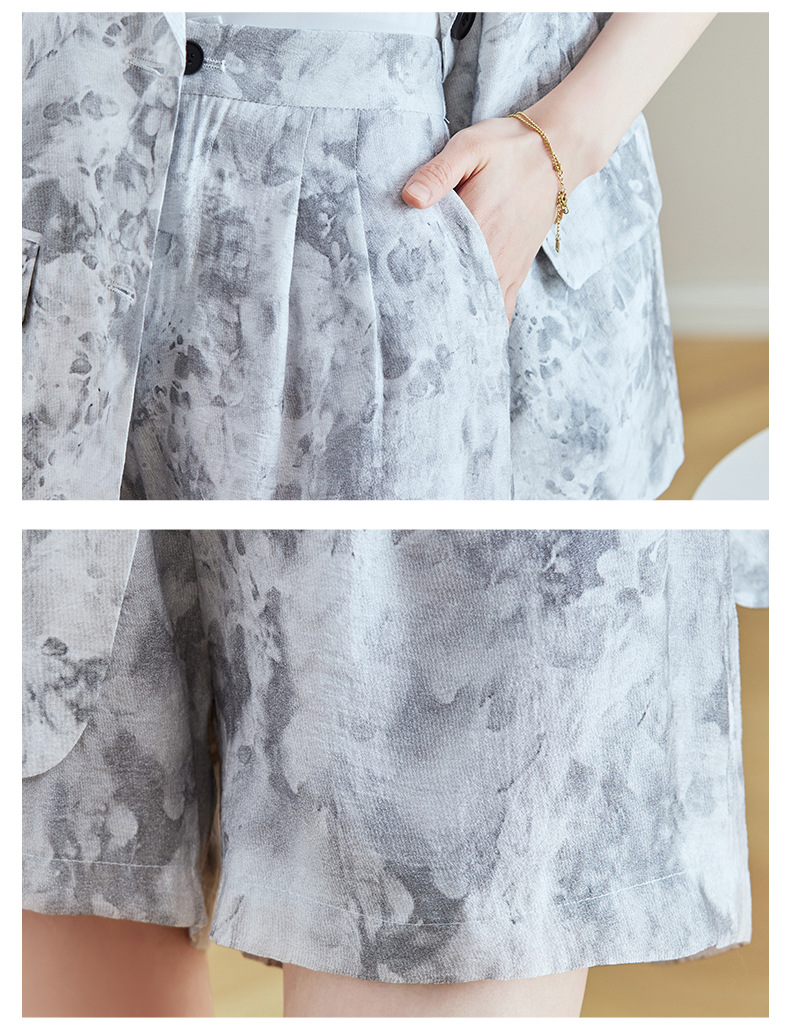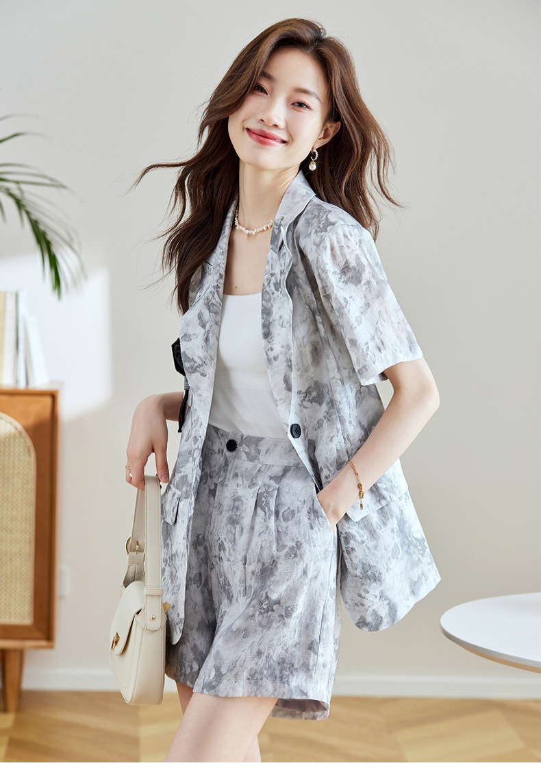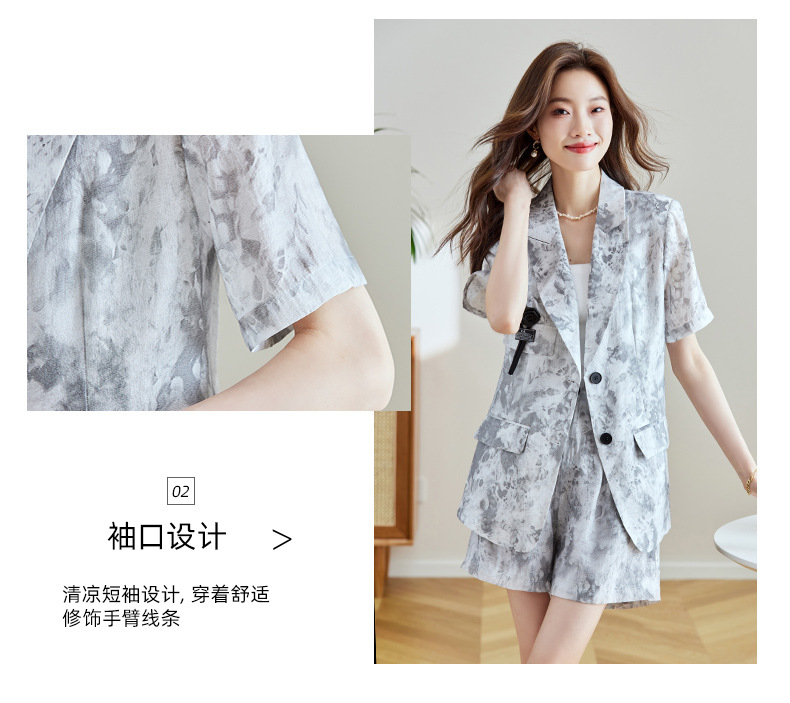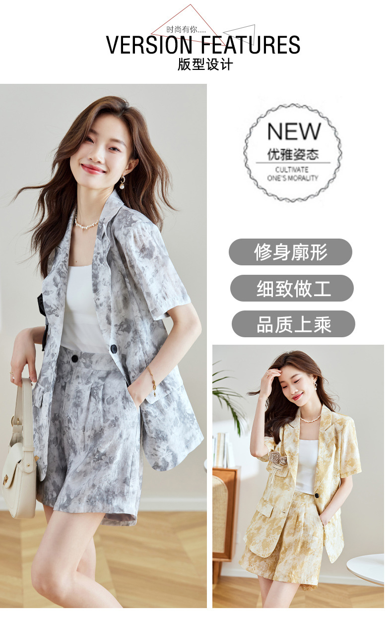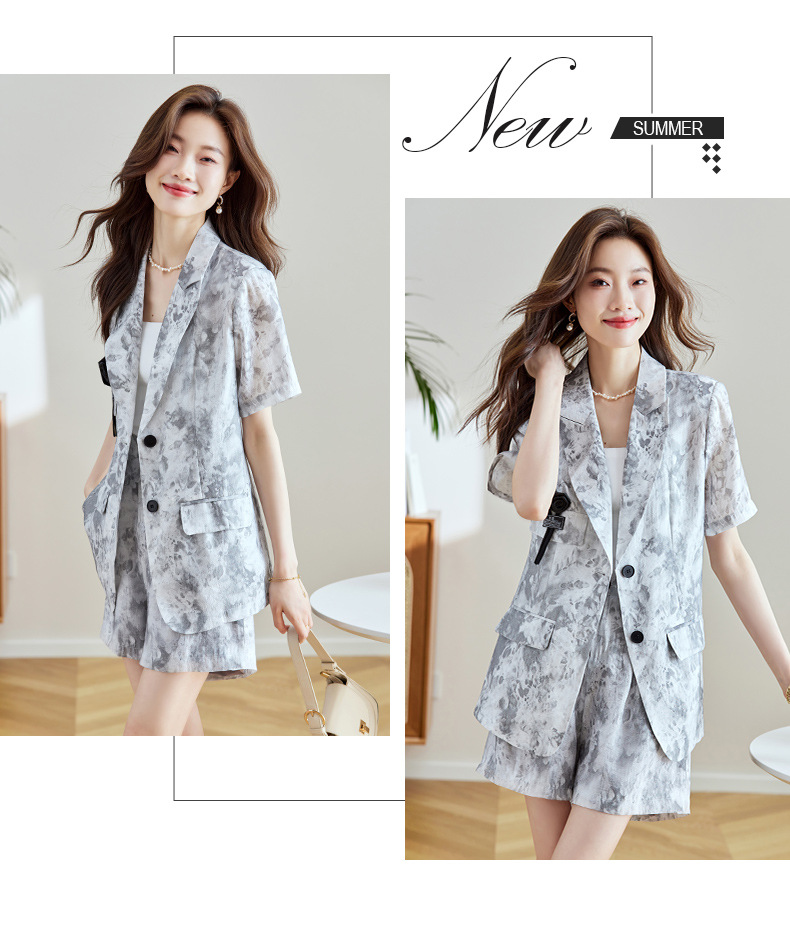 冷淡系印花西装短裤套装,薄款时尚两件套HR-SNX2810