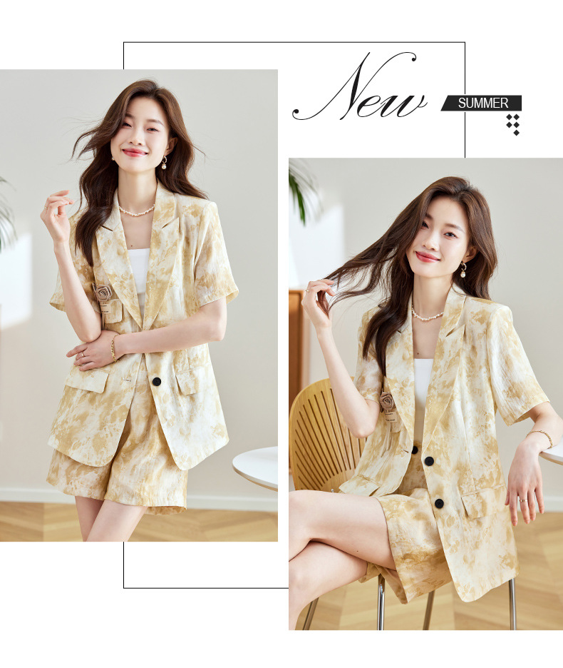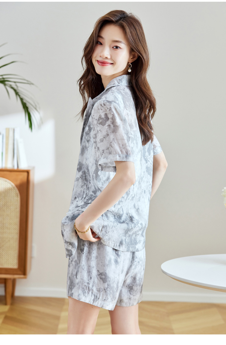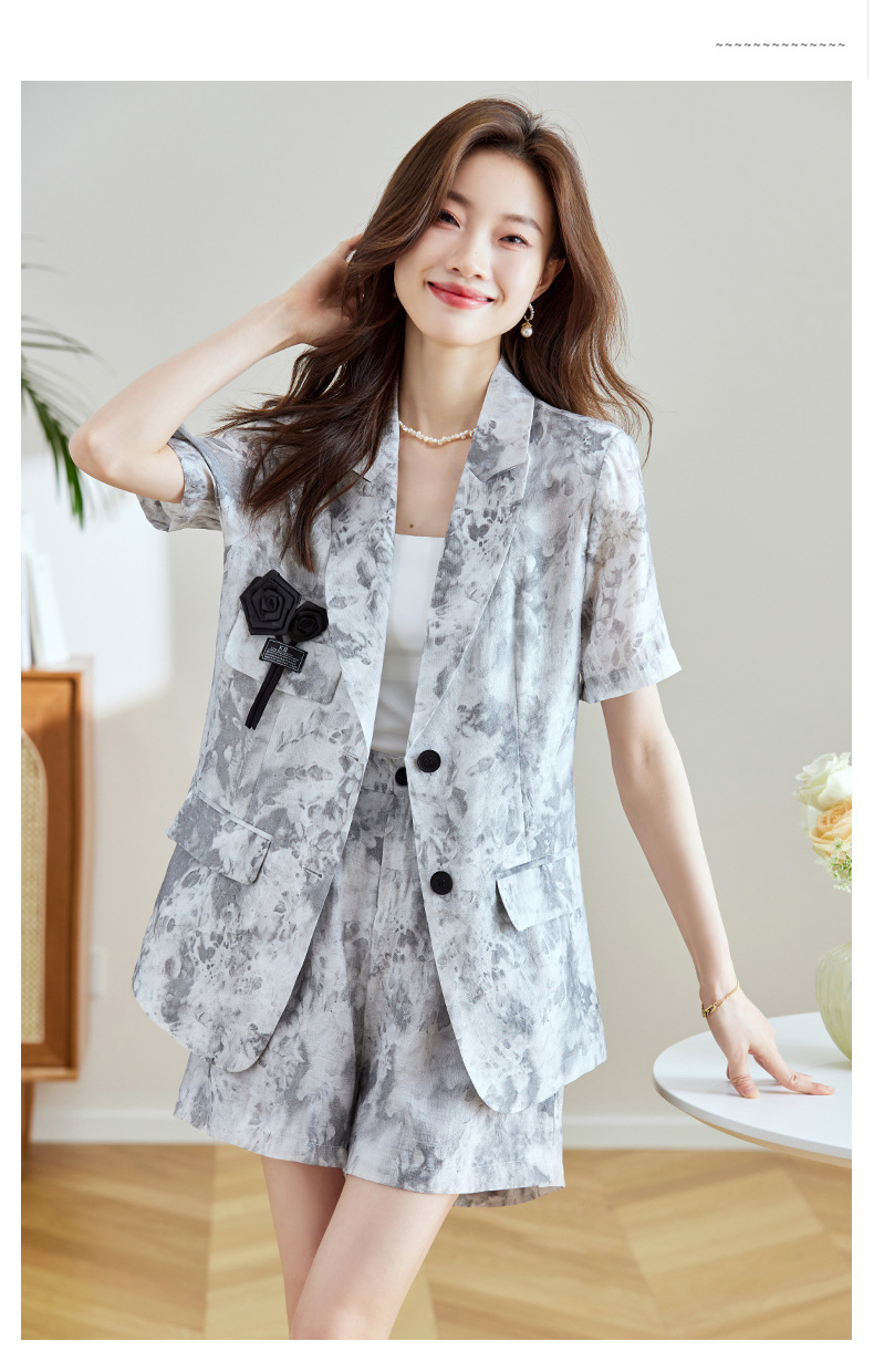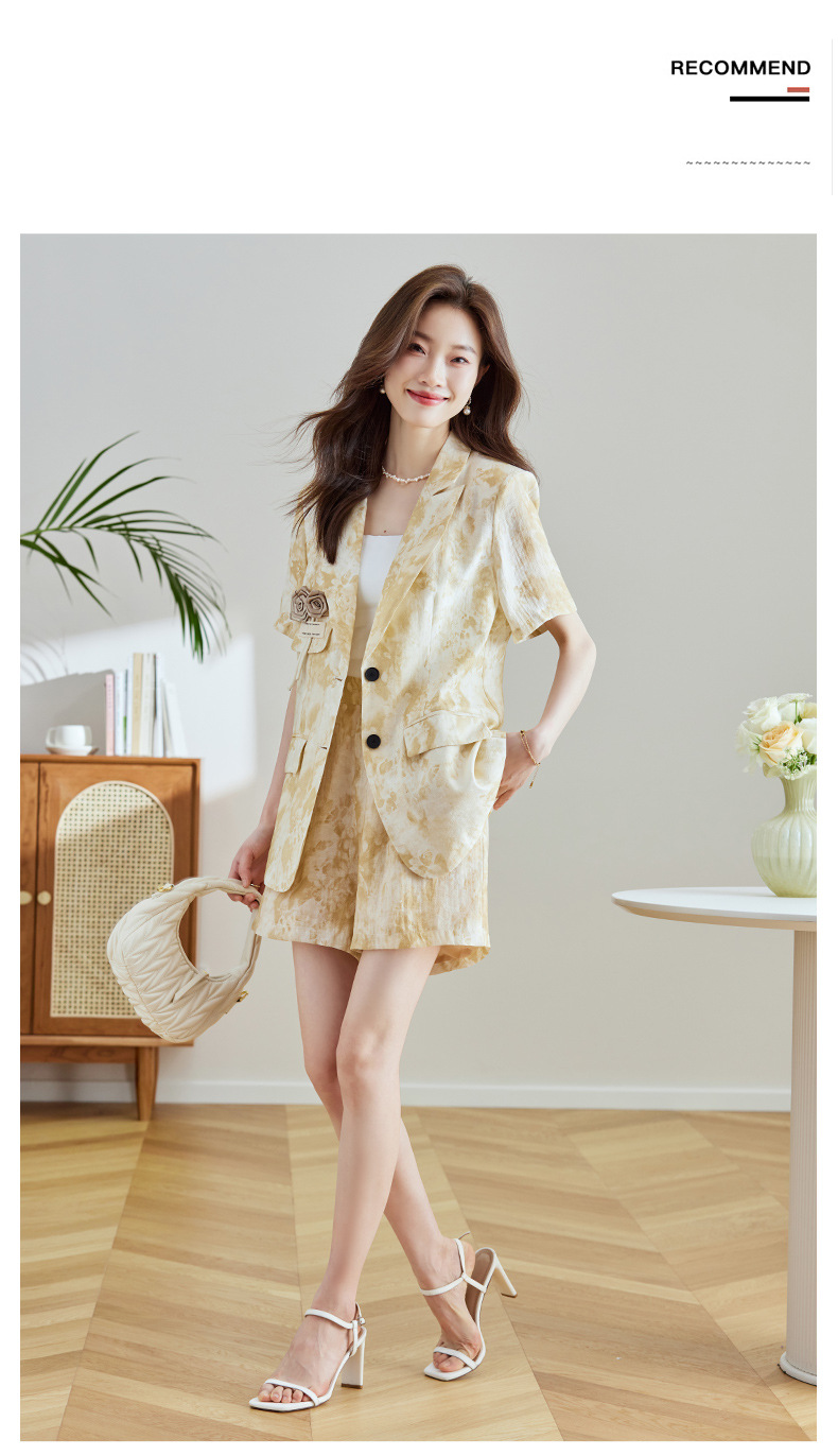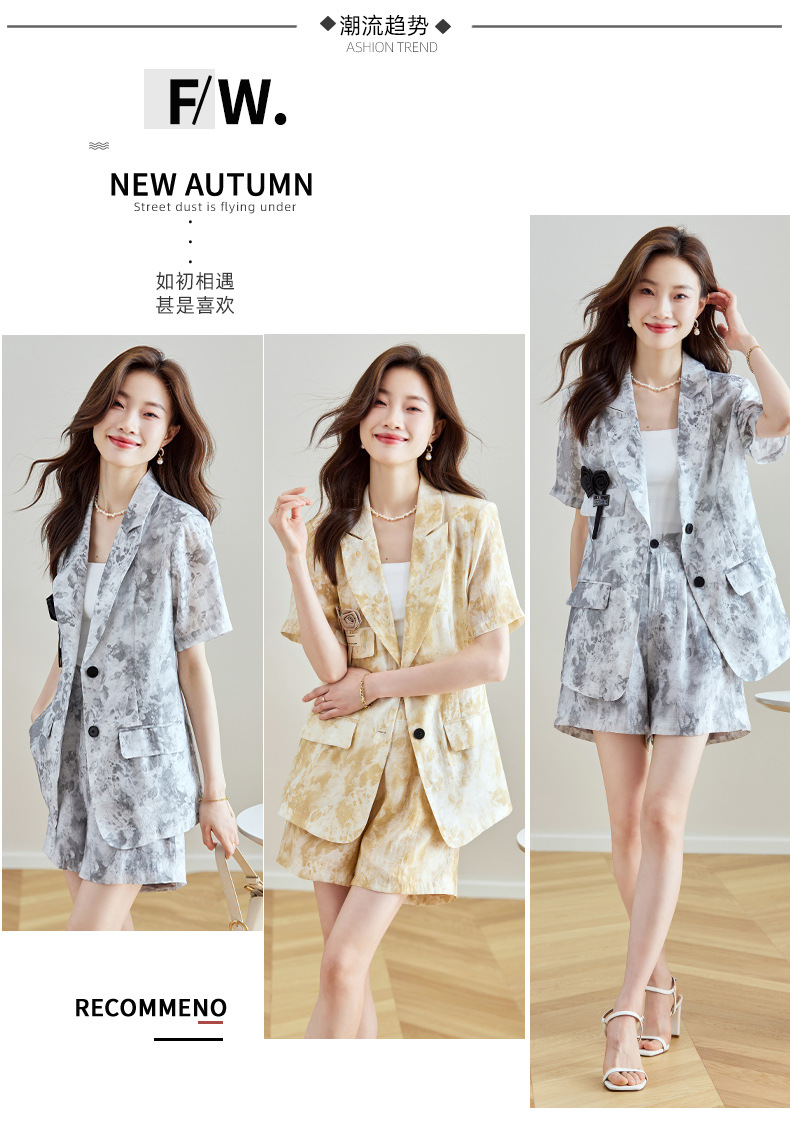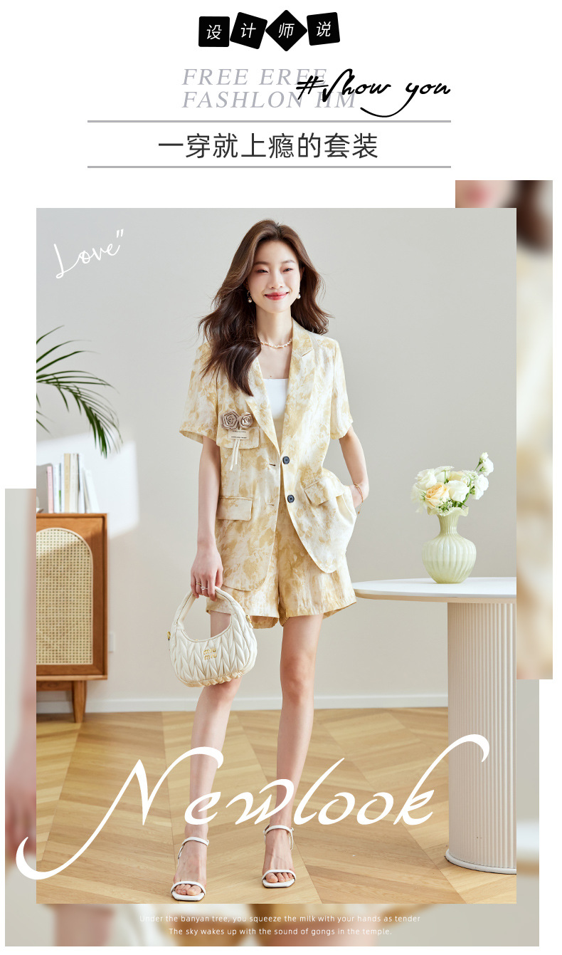 冷淡系印花西装短裤套装,薄款时尚两件套HR-SNX2810