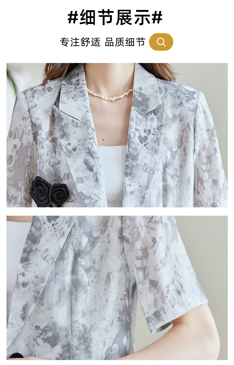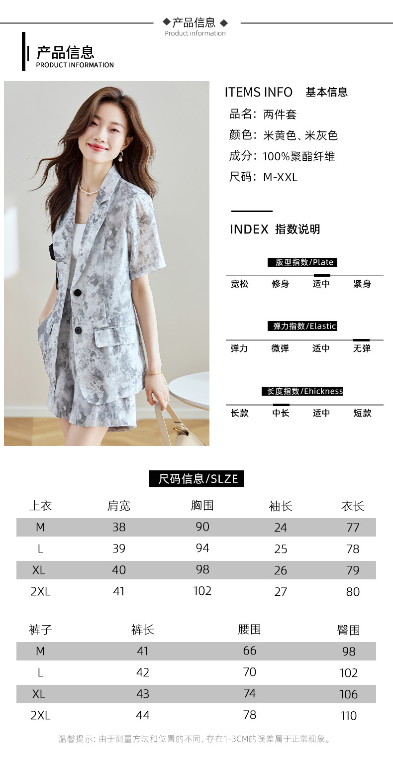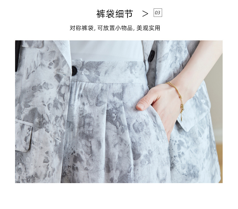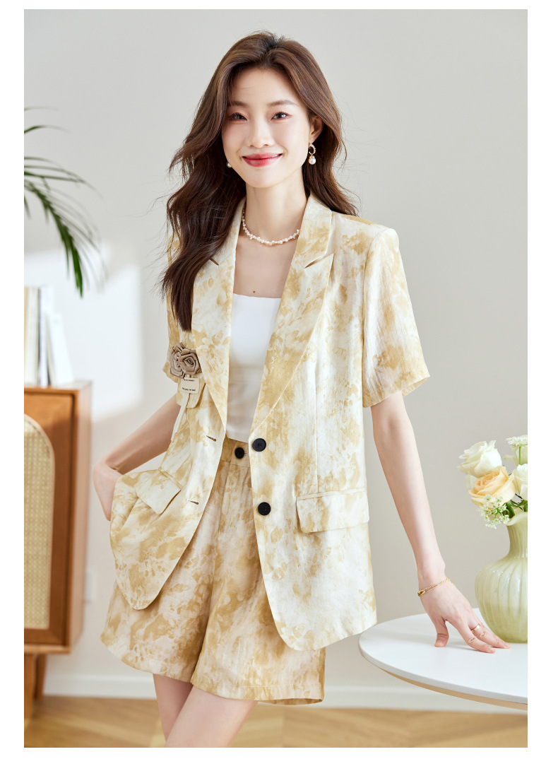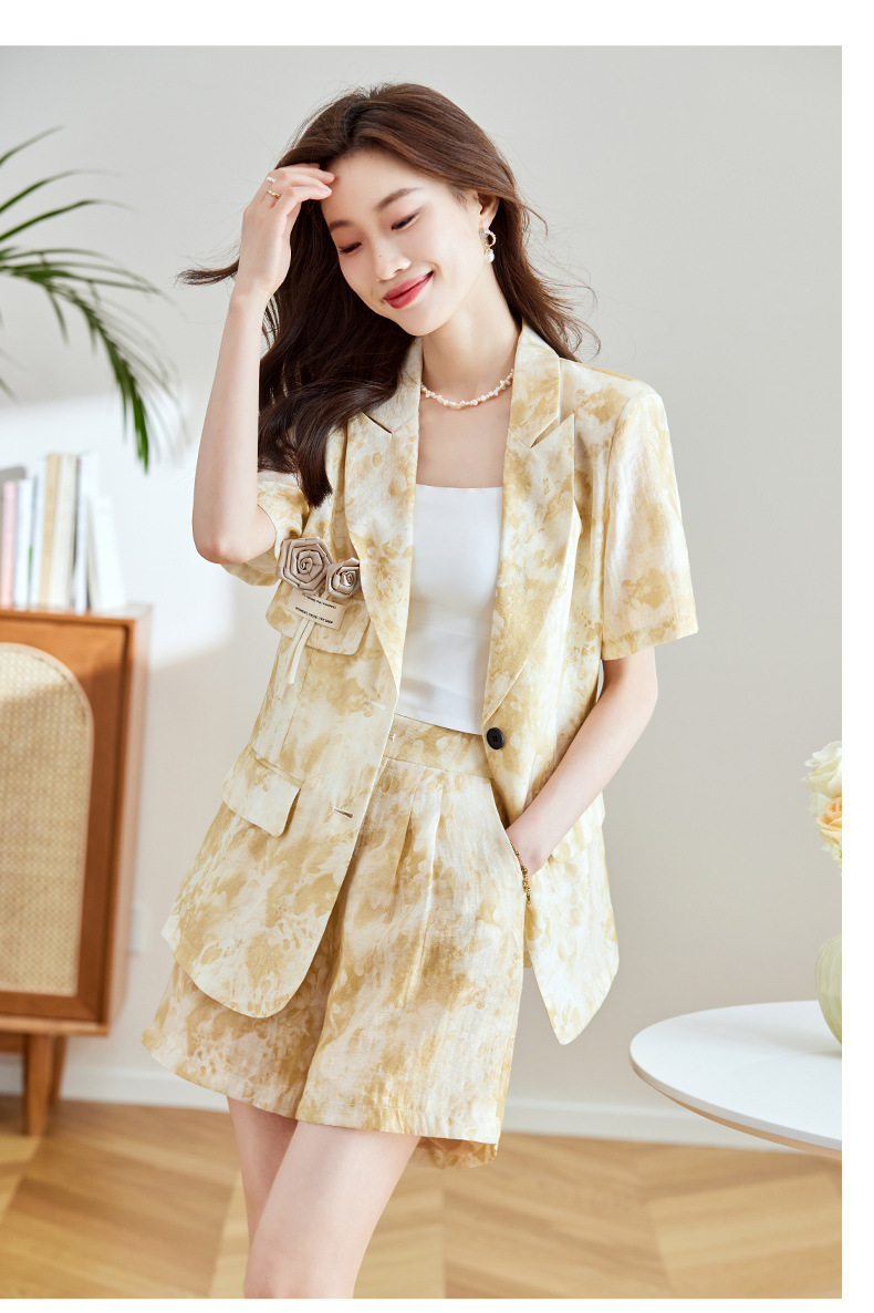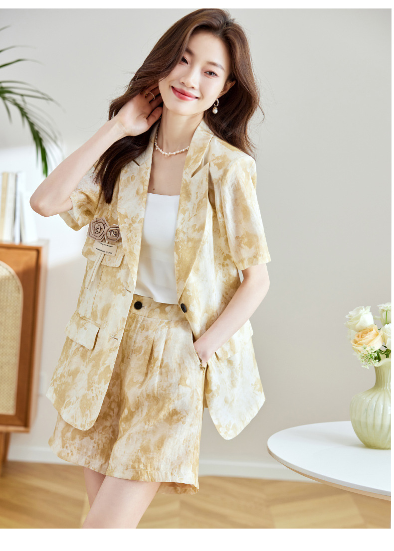 冷淡系印花西装短裤套装,薄款时尚两件套HR-SNX2810