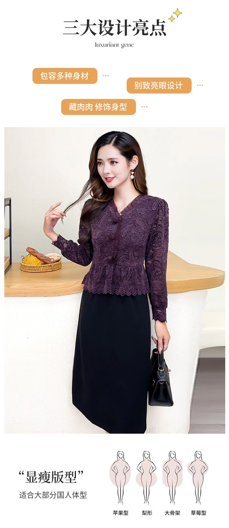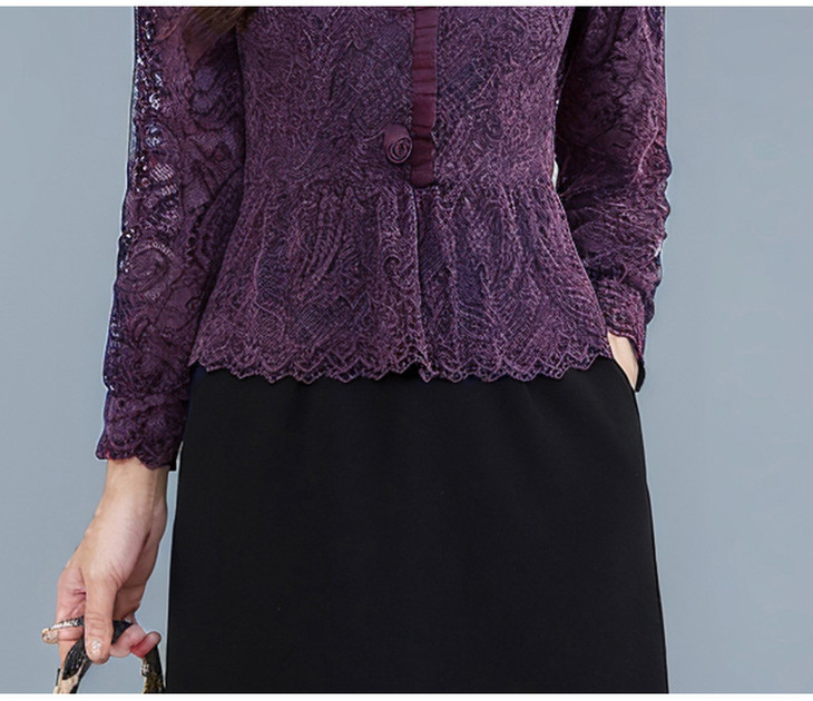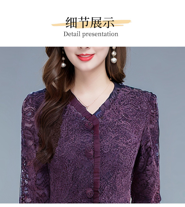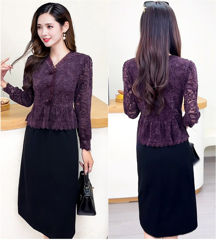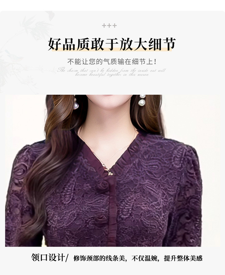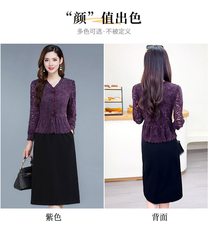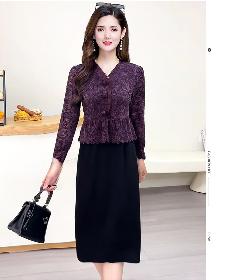 V领蕾丝拼接假两件连衣裙,气质优雅中年妈妈裙子QYM-YJ25B270