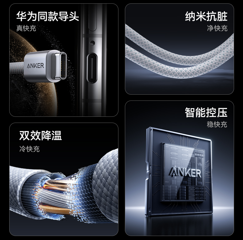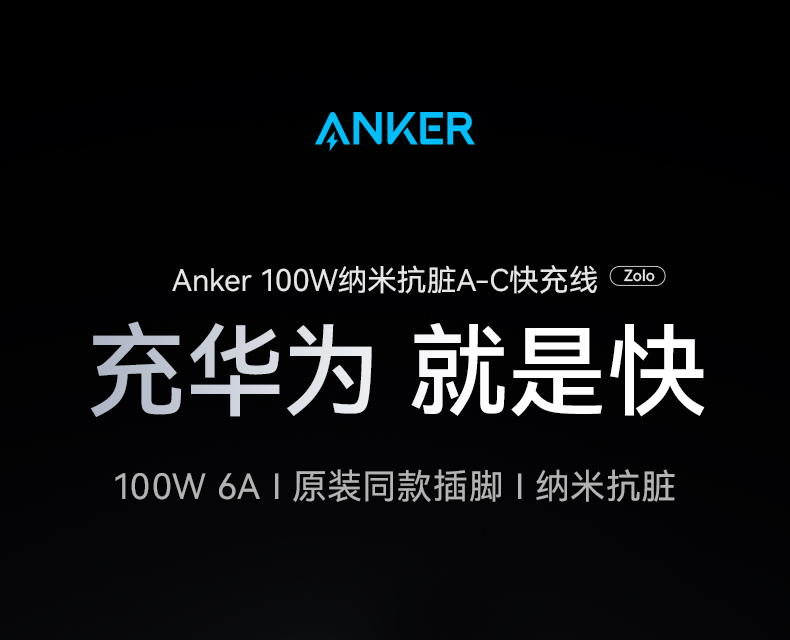 【新品】Anker安克 100W纳米抗脏A-C快充线适用华为超级快充安卓Type-C平板通用 A8052