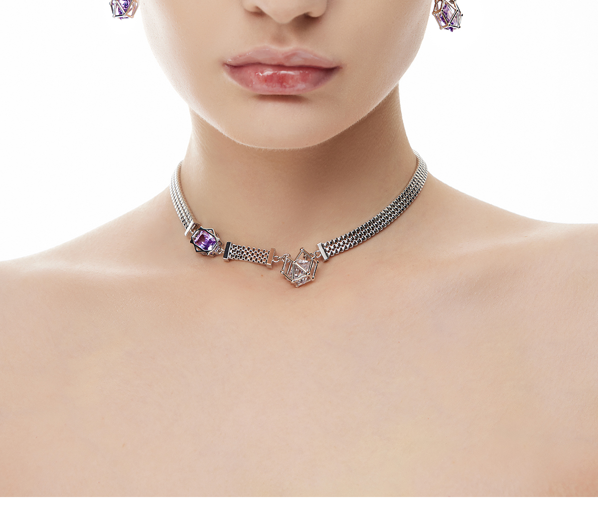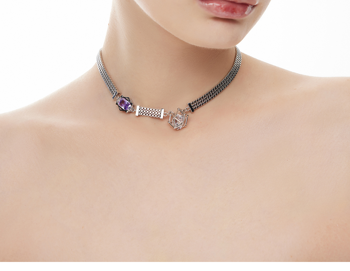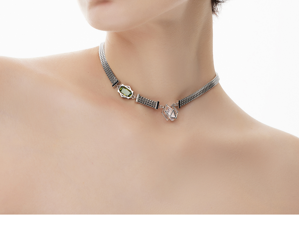 [捡漏价]lost in echo设计师款宝石猎人锆石盒子宽链条chocker项链锁骨链