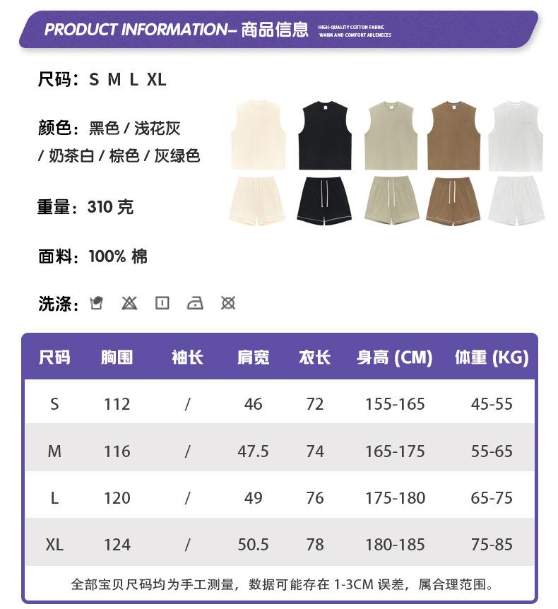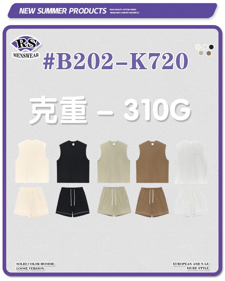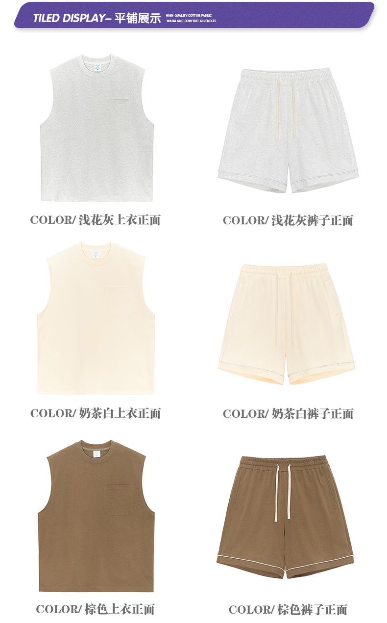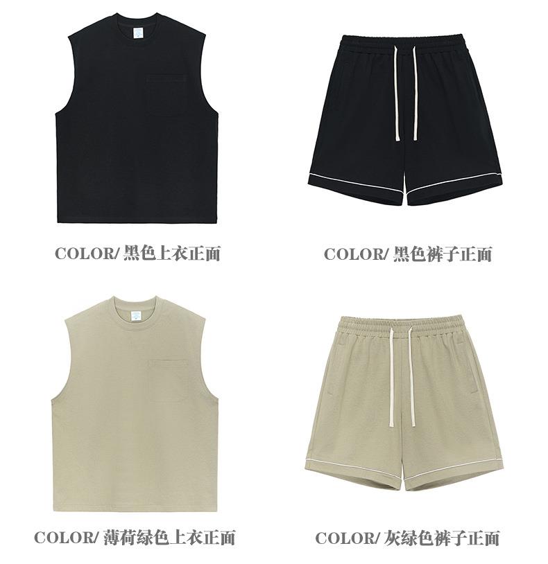 RS男装|2023夏季310g重磅纯棉纯色背心复古美式潮牌休闲短裤套装