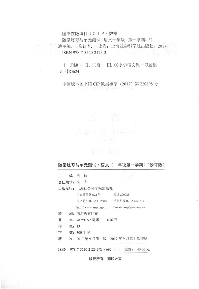 正版现货 新版 上海小学教材教辅 随堂练习与单元测试 语文 一年级第一学期/1年级上教材配套同步辅导随堂练习单元测试卷 全新版