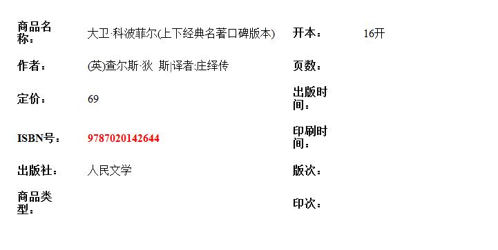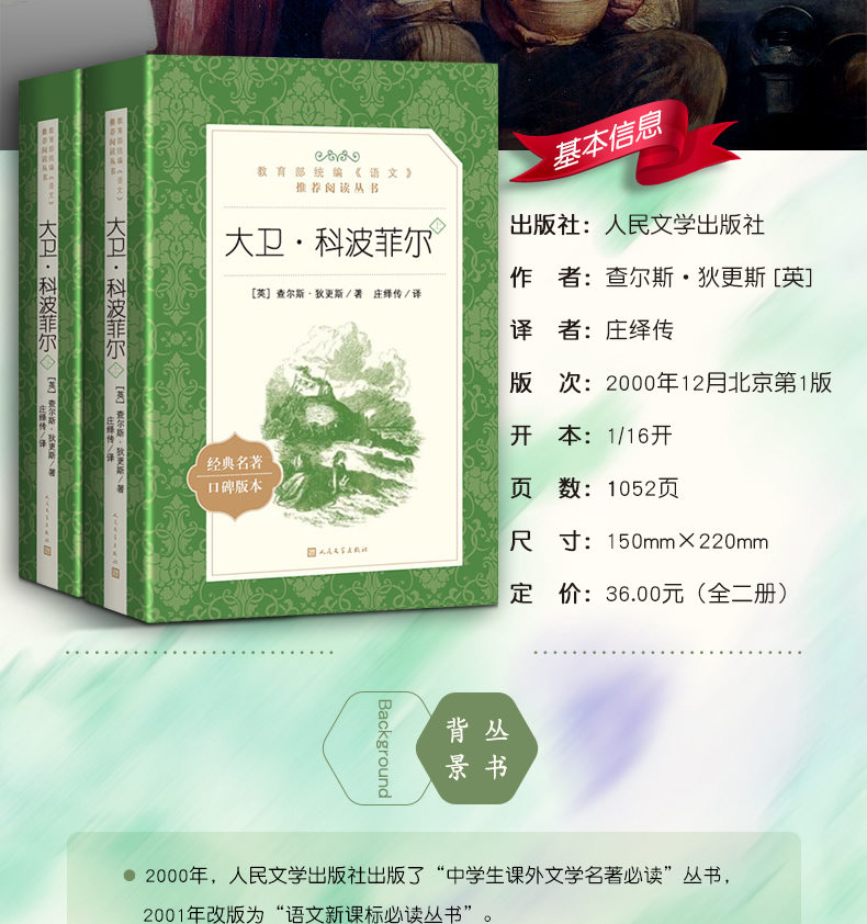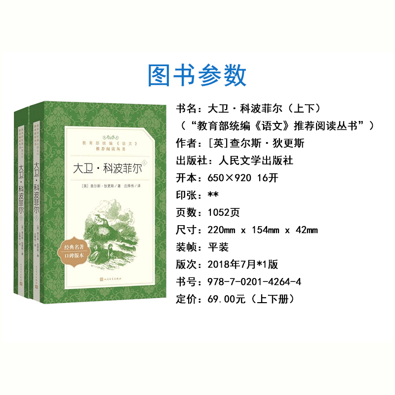 大卫科波菲尔 查尔斯狄更斯原著人民文学出版社无删减部编版统编语文初高中生七八九年级高一二三课外阅读物书目经典名著