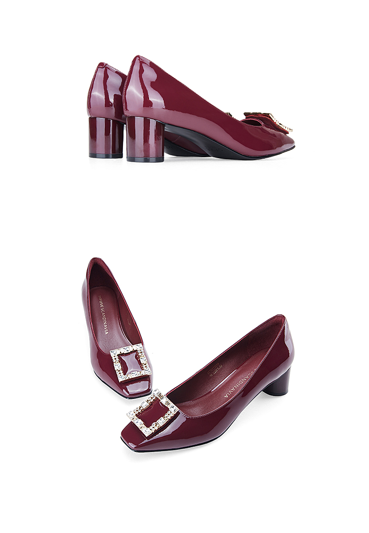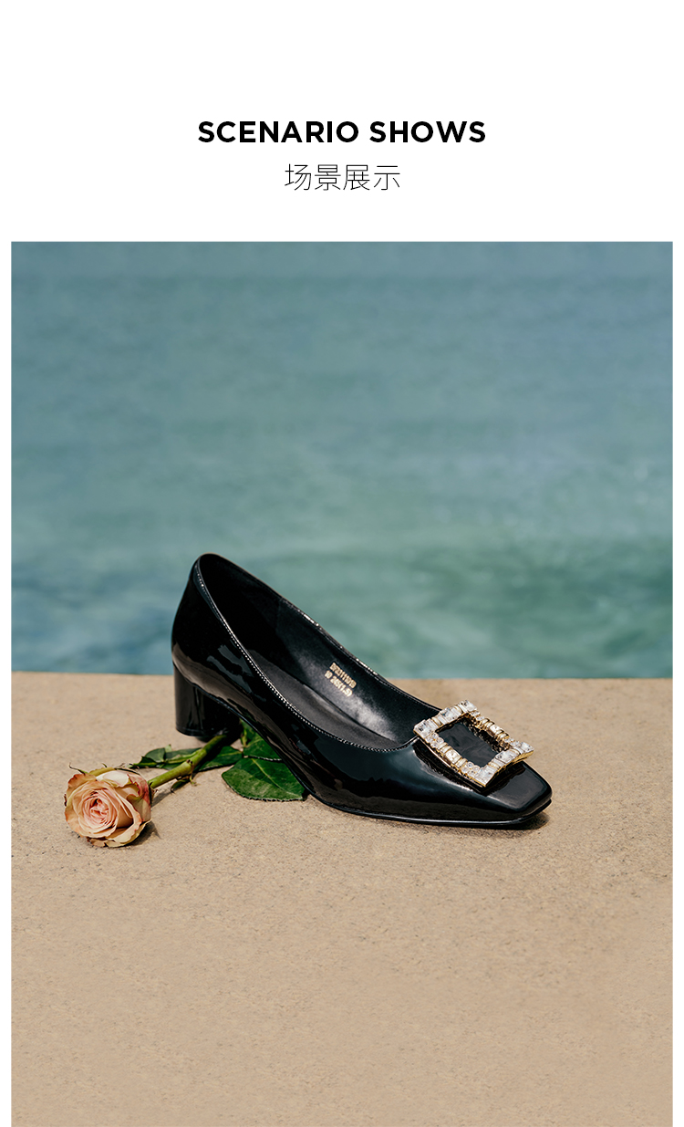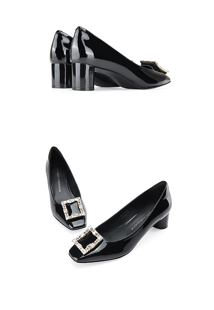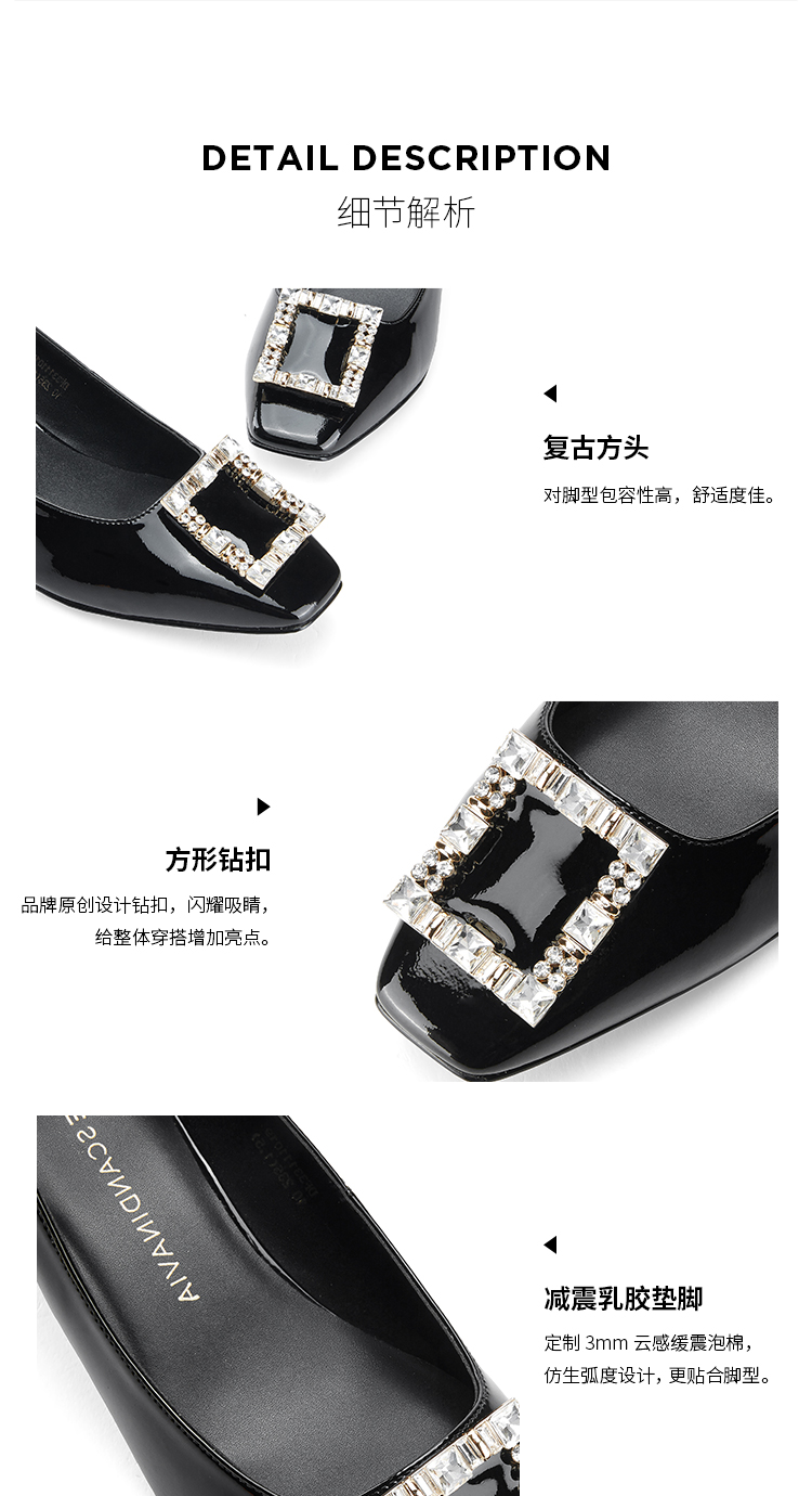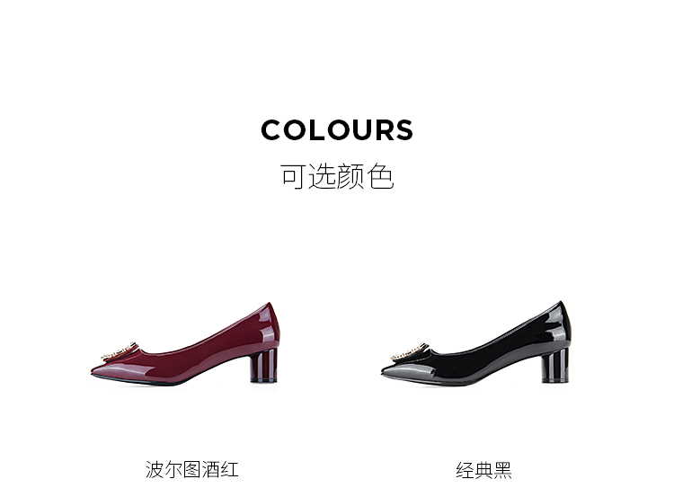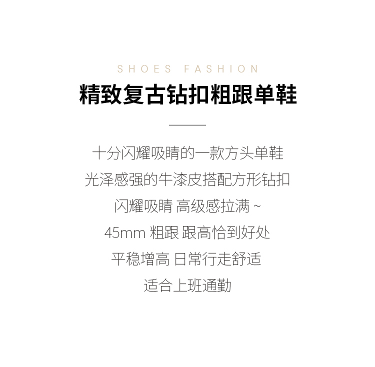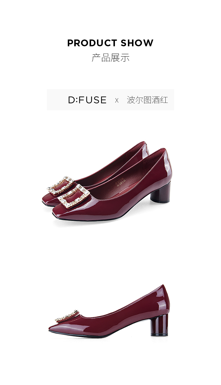 迪芙斯D:FUSE女鞋秋款单鞋女漆面牛皮方头复古钻扣粗跟单鞋DF33111019