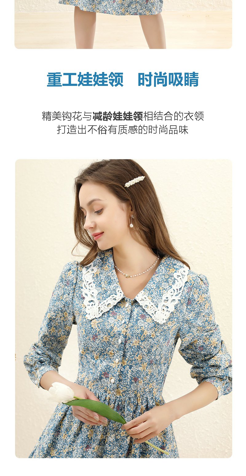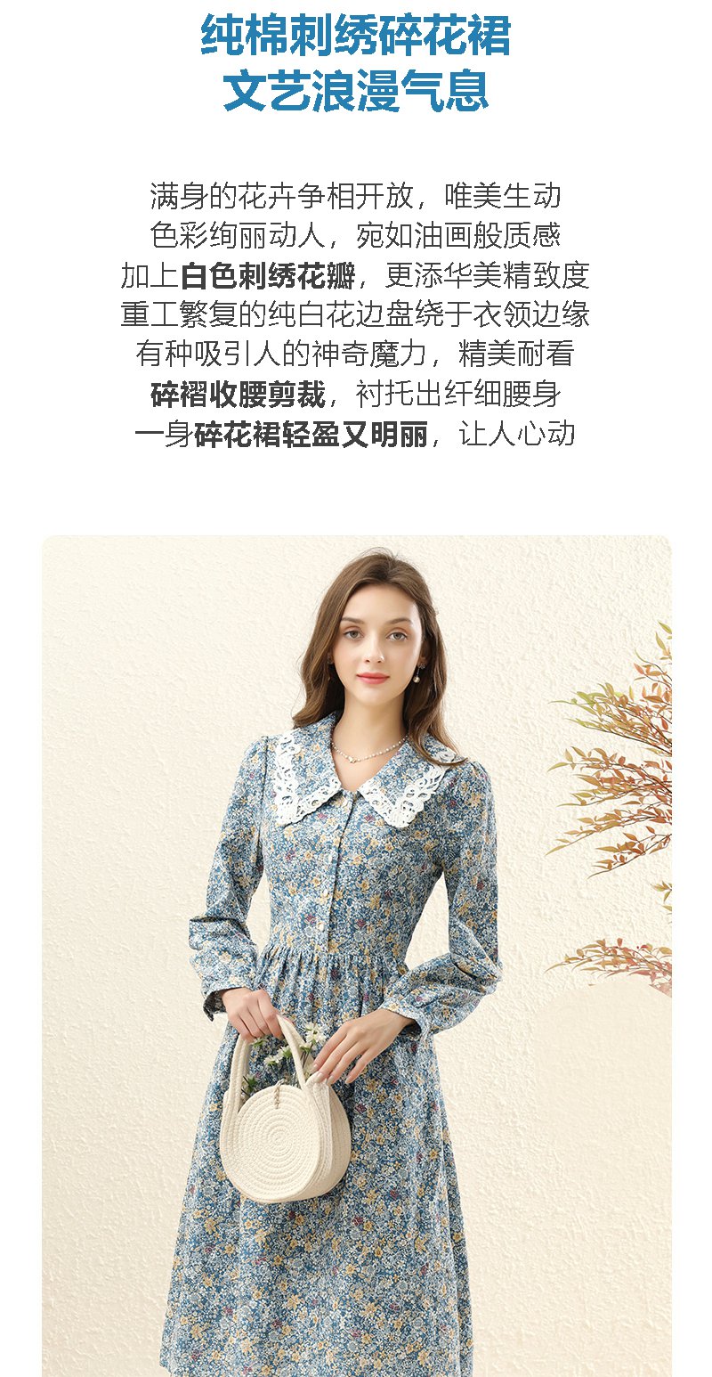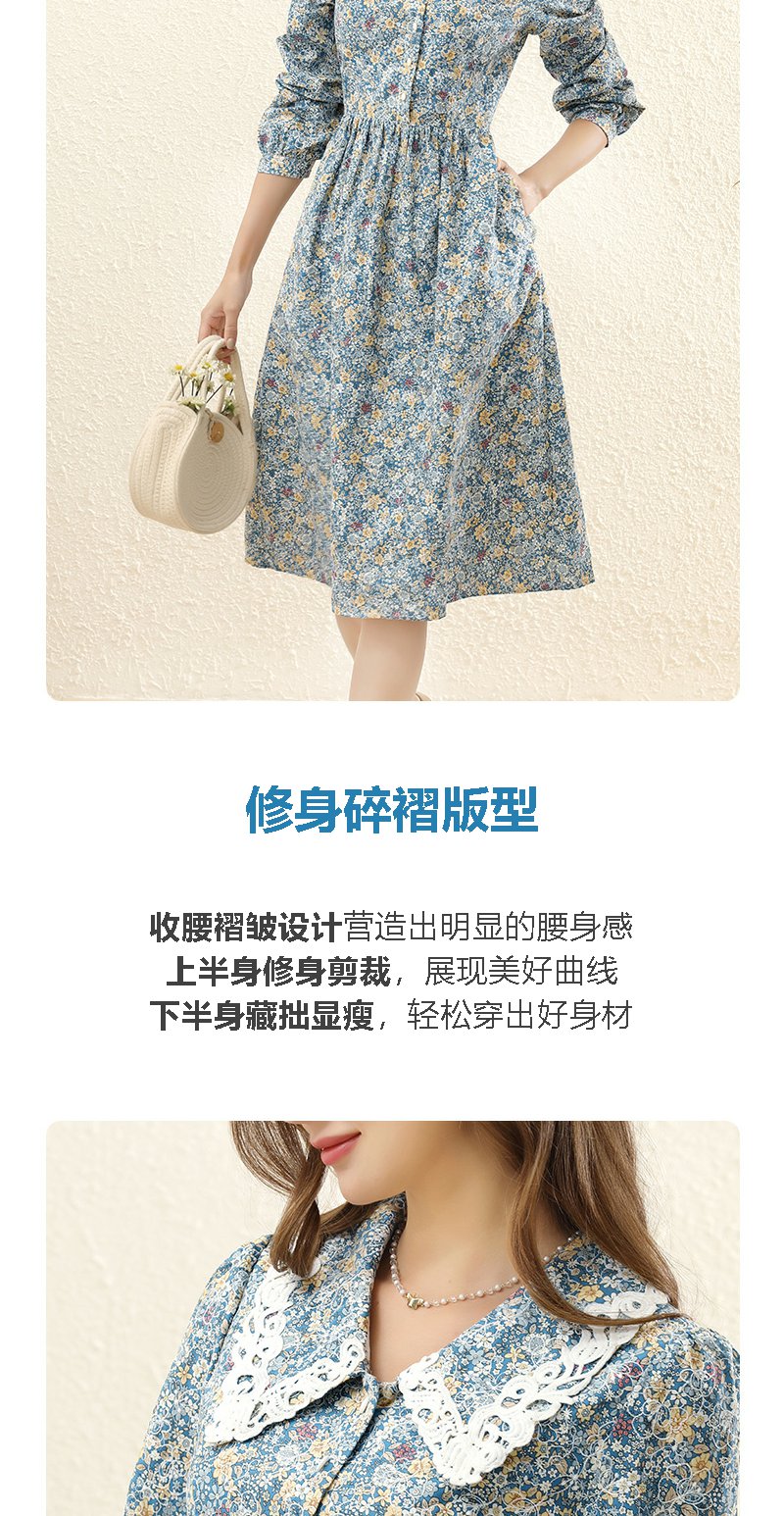 勿忘花纯棉碎花复古娃娃领连衣裙女2025春季新款小个子裙子