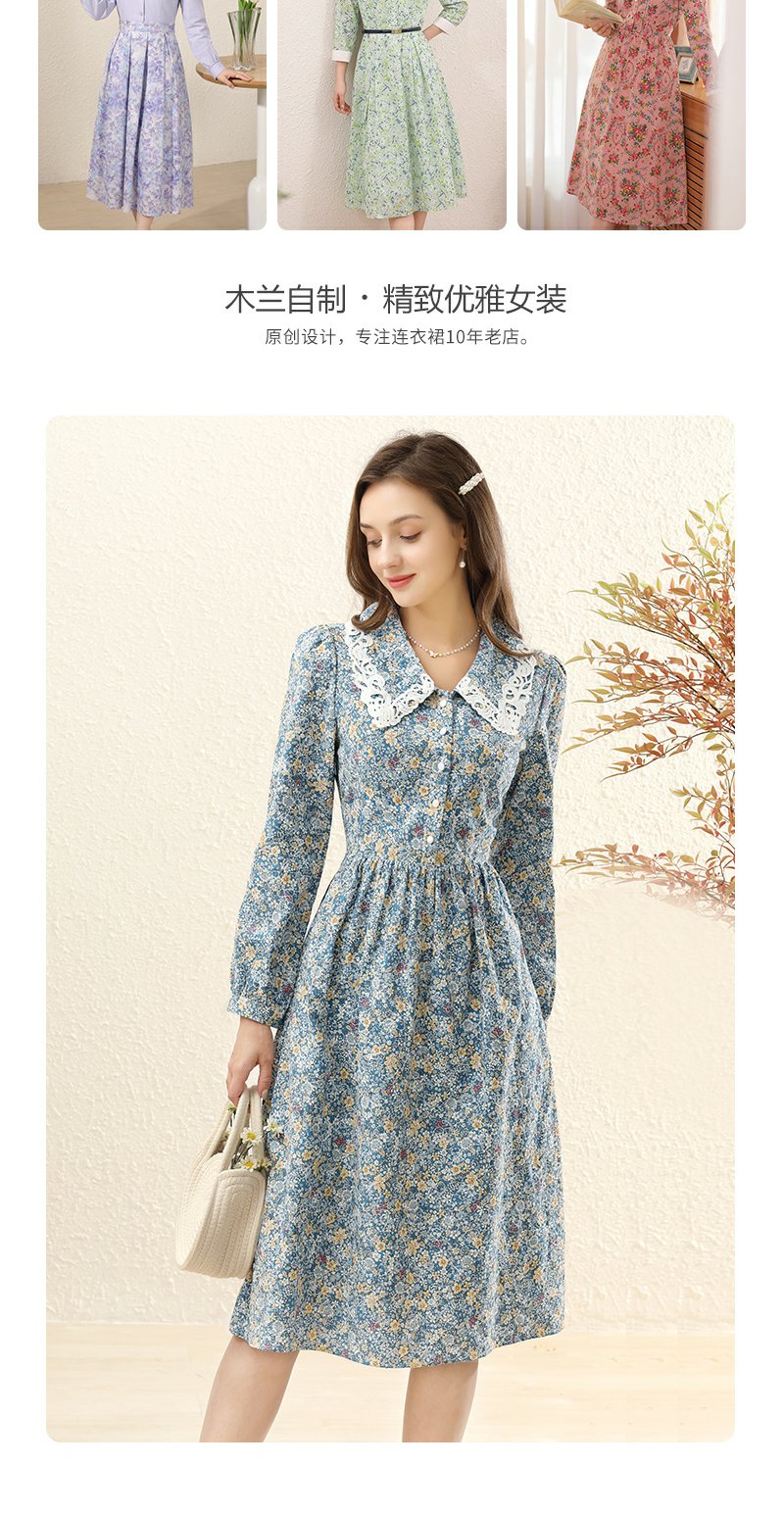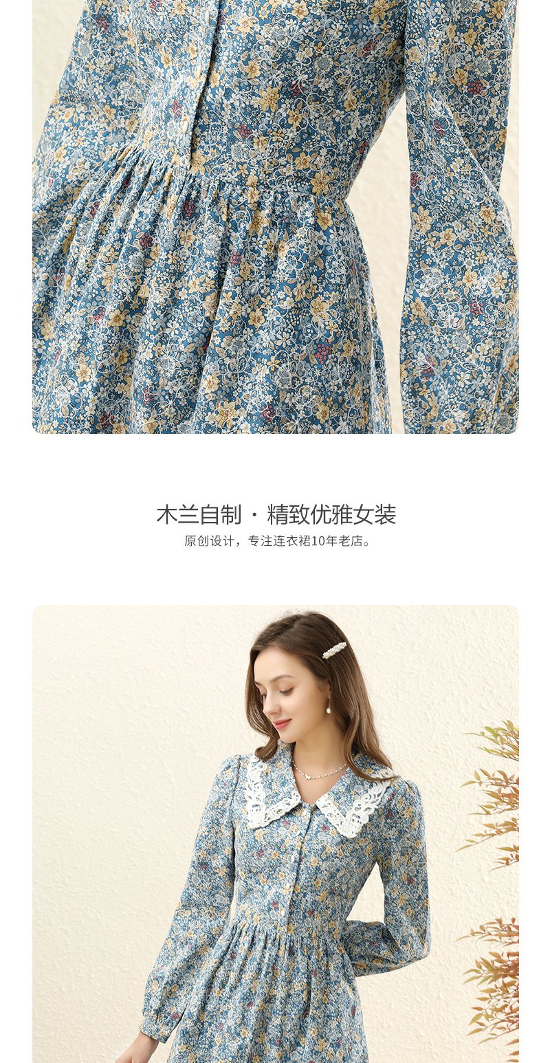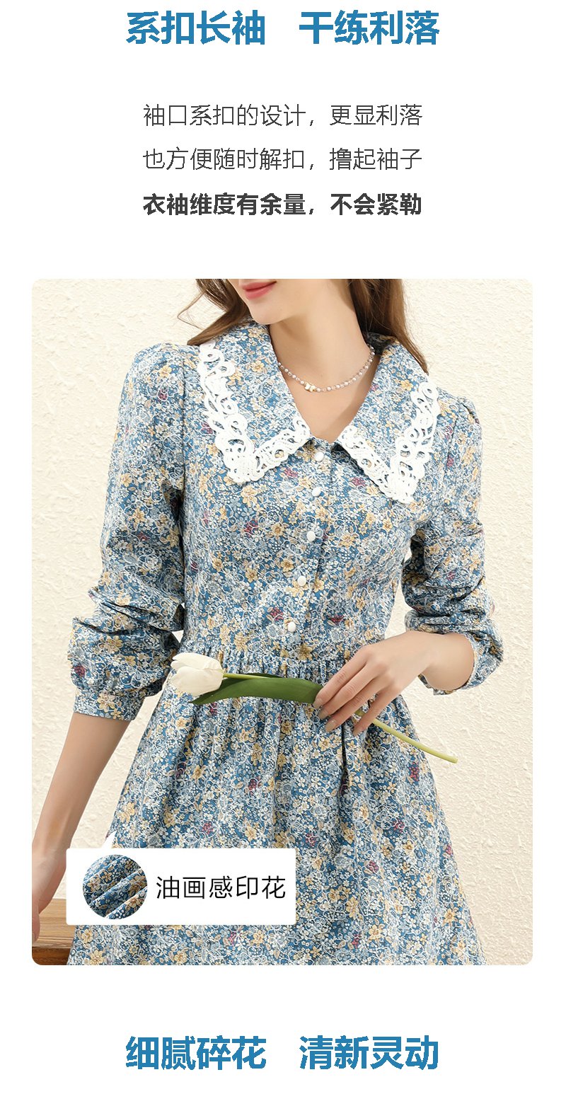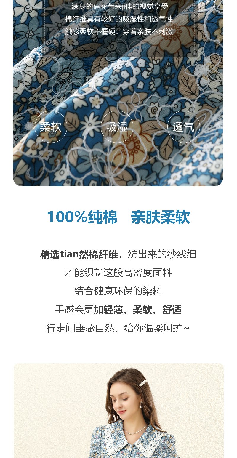 勿忘花纯棉碎花复古娃娃领连衣裙女2025春季新款小个子裙子