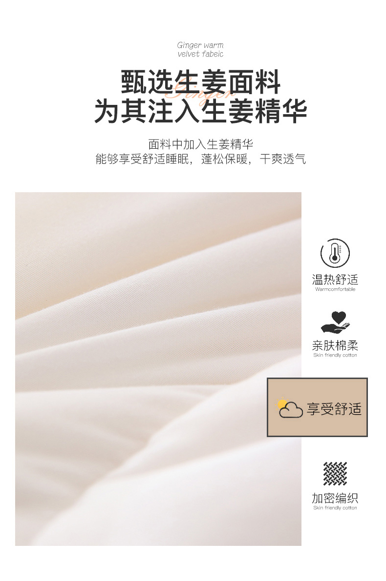 生姜暖绒秋冬被、、加厚保暖、蕴含天然生姜萃取精华、防寒保暖、被窝里面的小太阳-yc