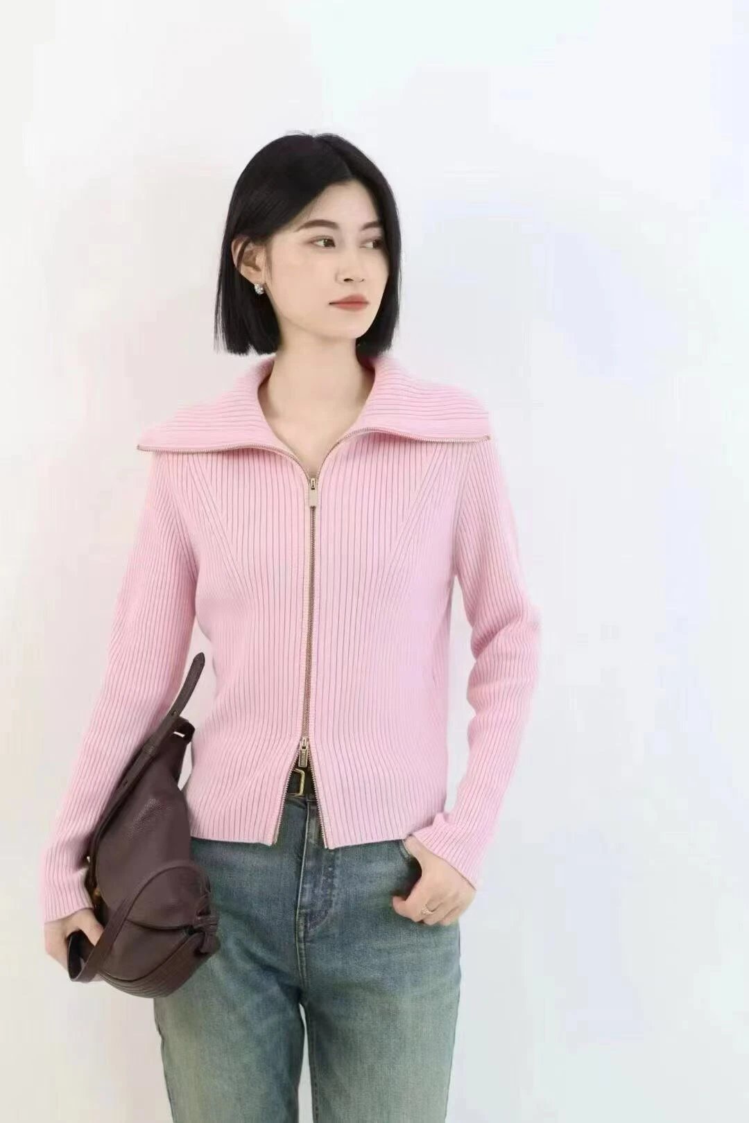 重磅渠道 早春新款 IC半精纺拉链羊毛衫 超实穿版型 细支羊毛 坑条针织