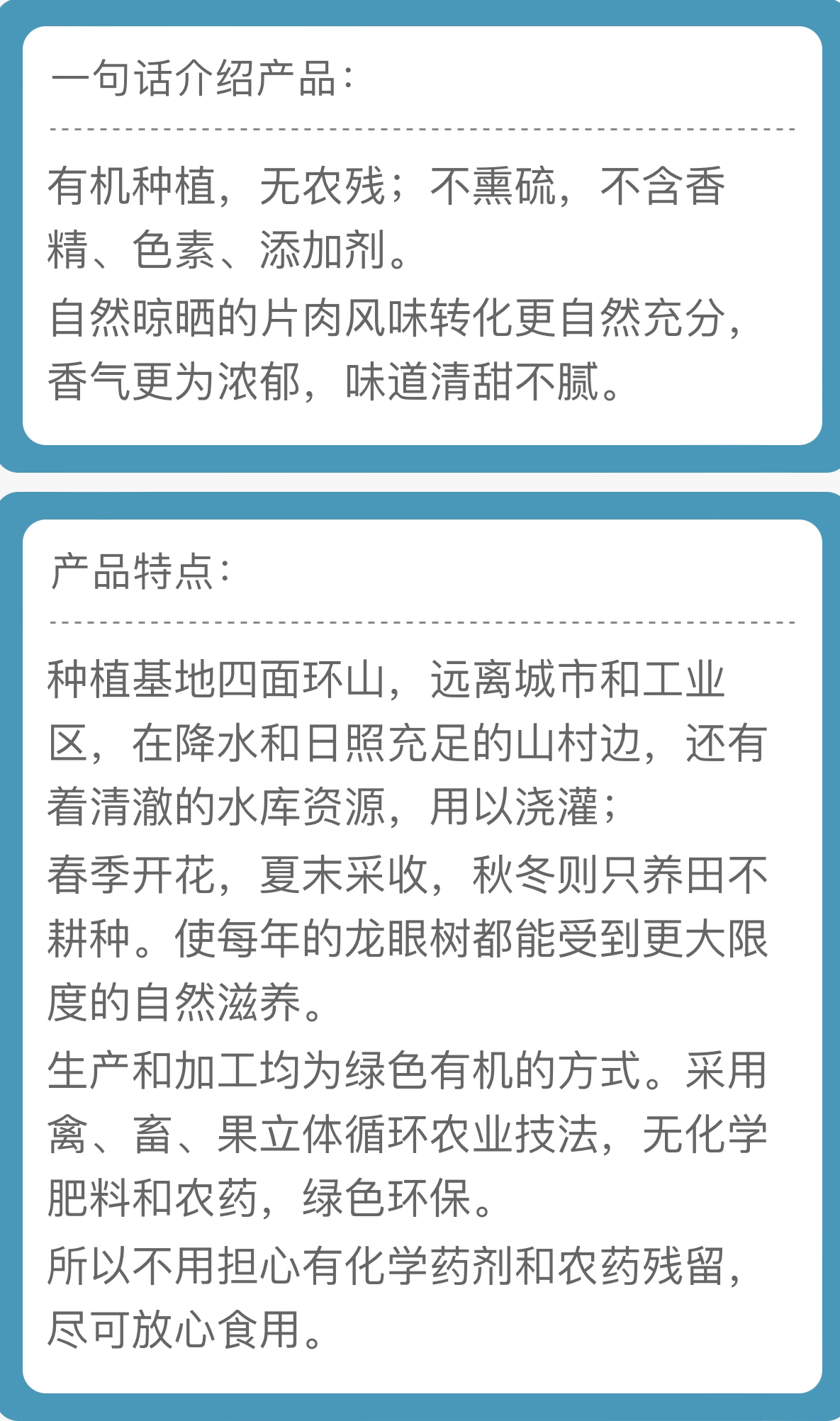 有机种植,无农残;自然晾晒,不熏硫,不含香精、色素、添加剂。