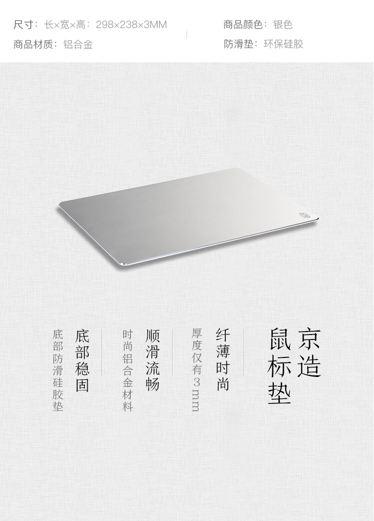 京东京造 金属鼠标垫自营大号 电脑办公游戏铝合金鼠标垫 银色