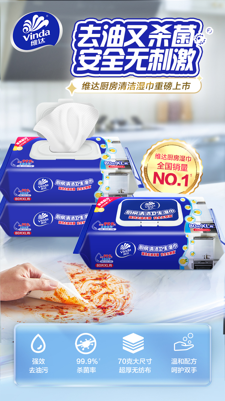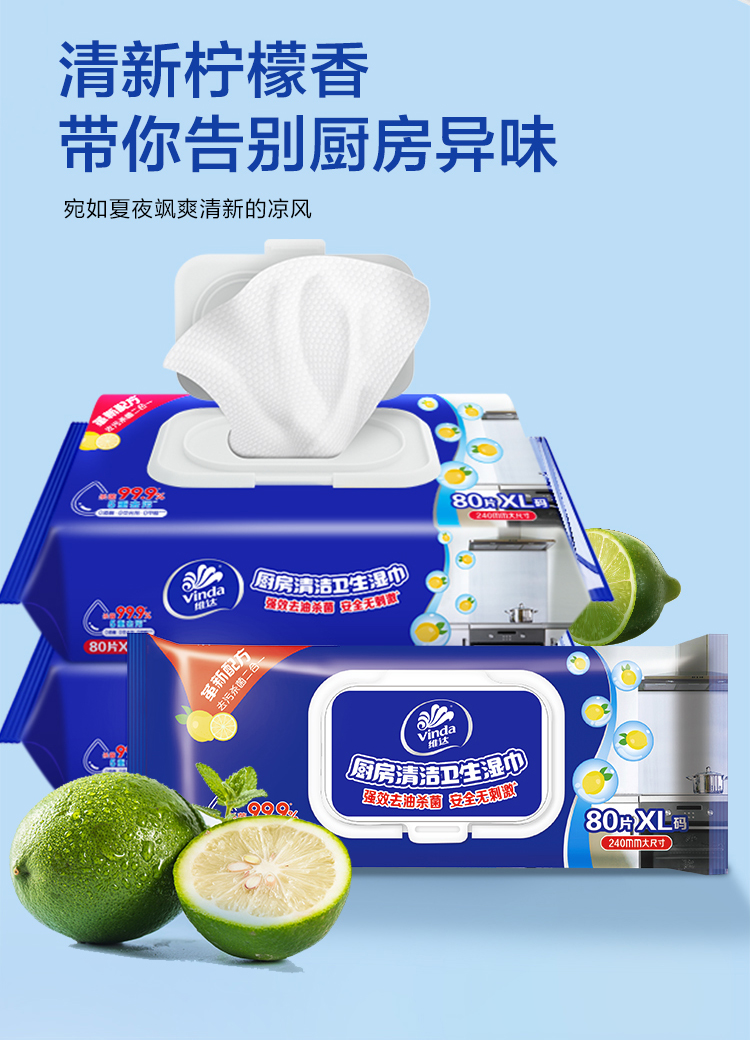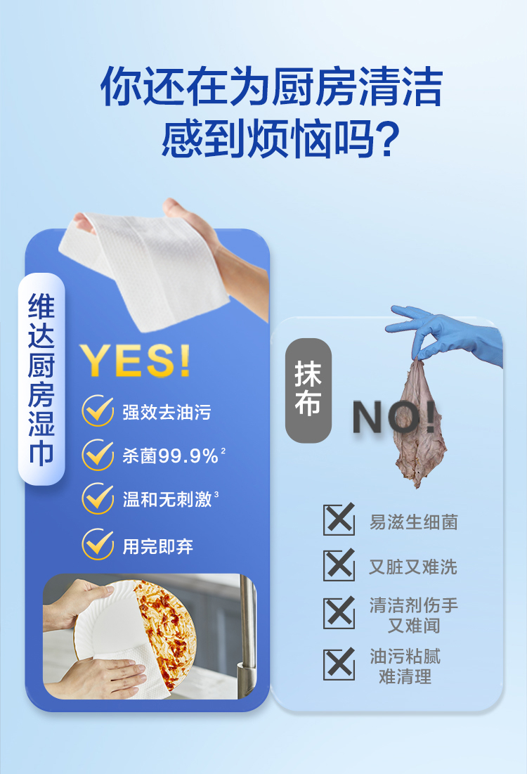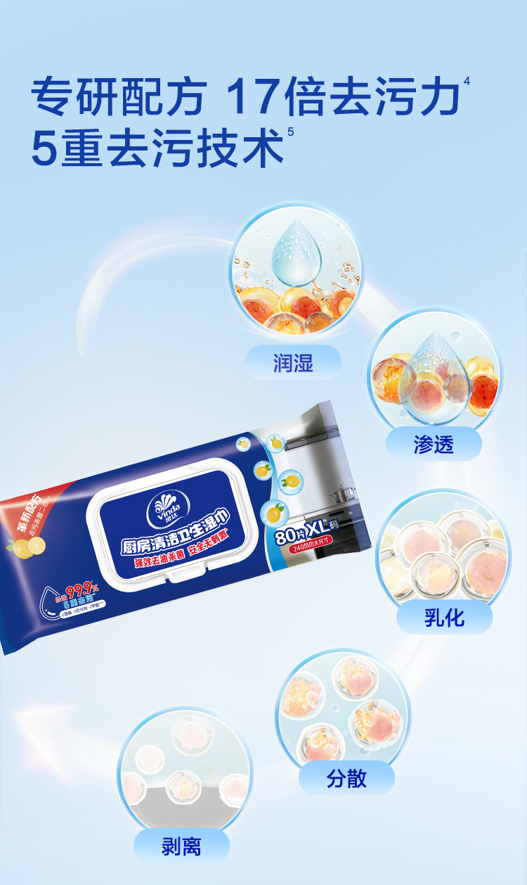 【官方包邮】维达厨房清洁卫生湿巾80片/包×4包*2箱 共8包