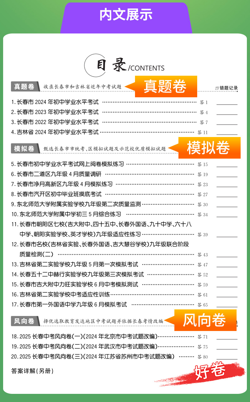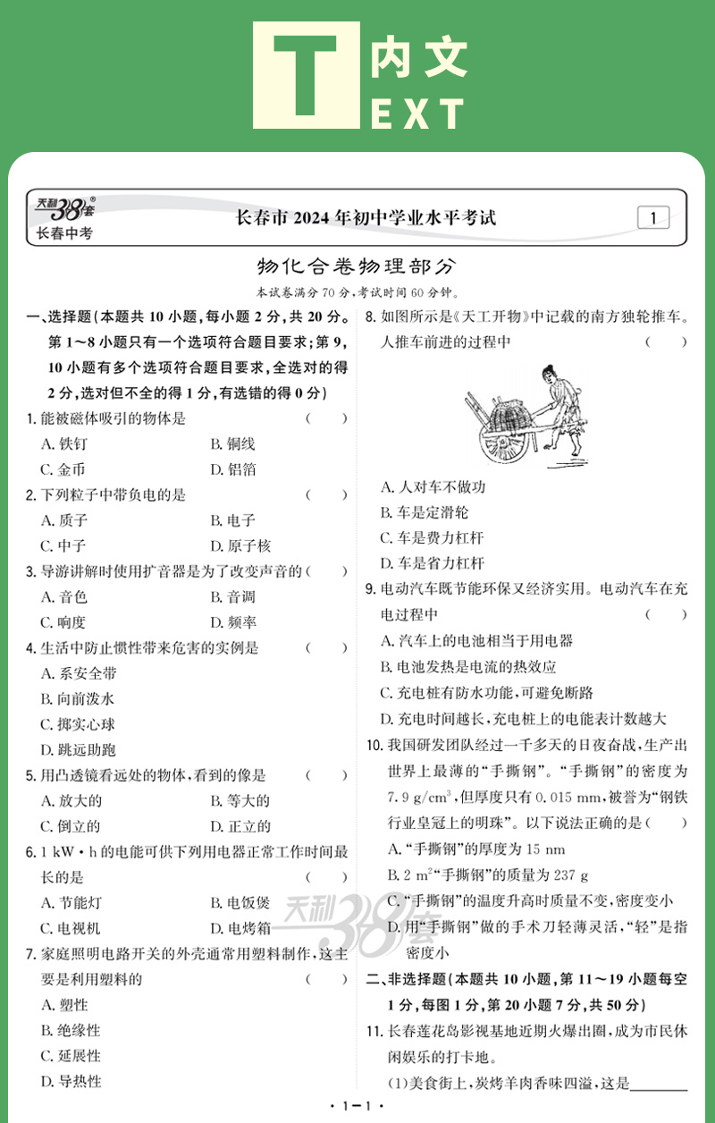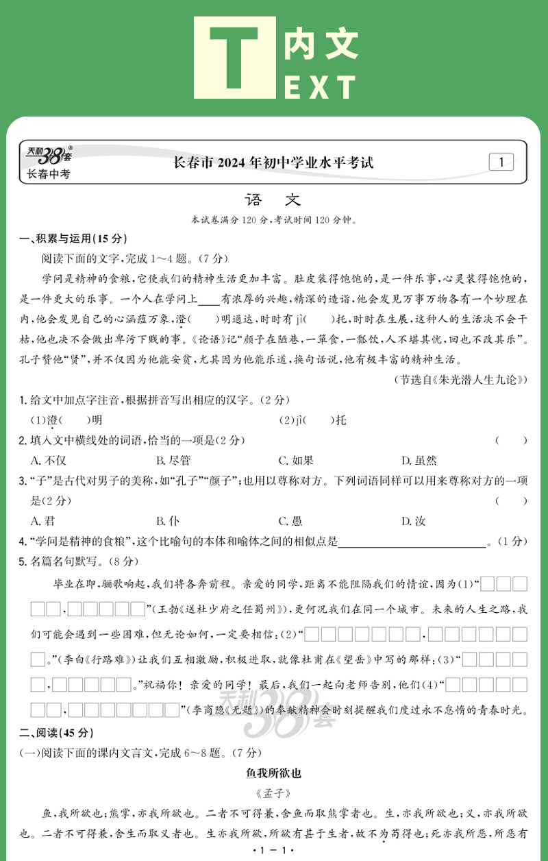 天利38套 2025长春中考试题精选 语文 数学 英语 物理 化学 生物 地理