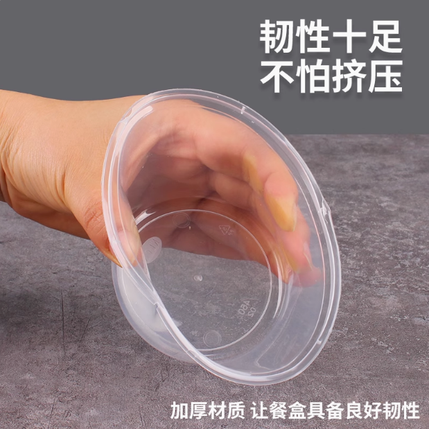 50个 450ml塑料圆碗带盖 打包盒一次性水果捞酸奶盒凉菜粥碗透明圆碗