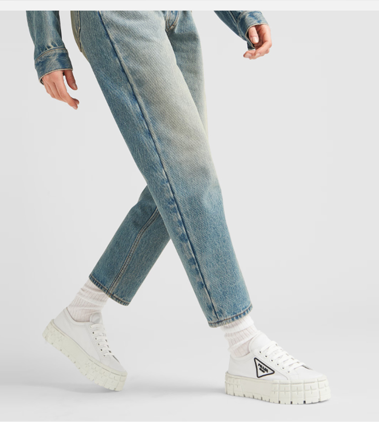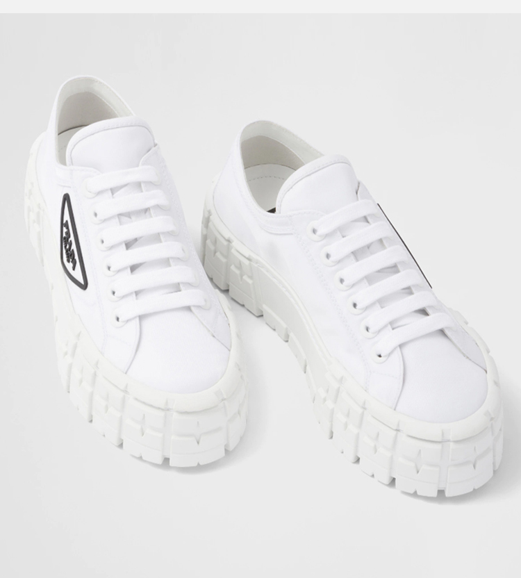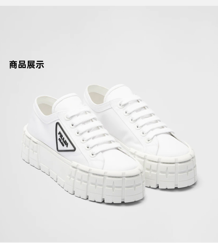 【二】PRADA 普拉达 女士 Double Wheel 厚底尼龙华达呢橡胶三角徽标系带休闲运动鞋 白色 1E260M 3LFX F0009