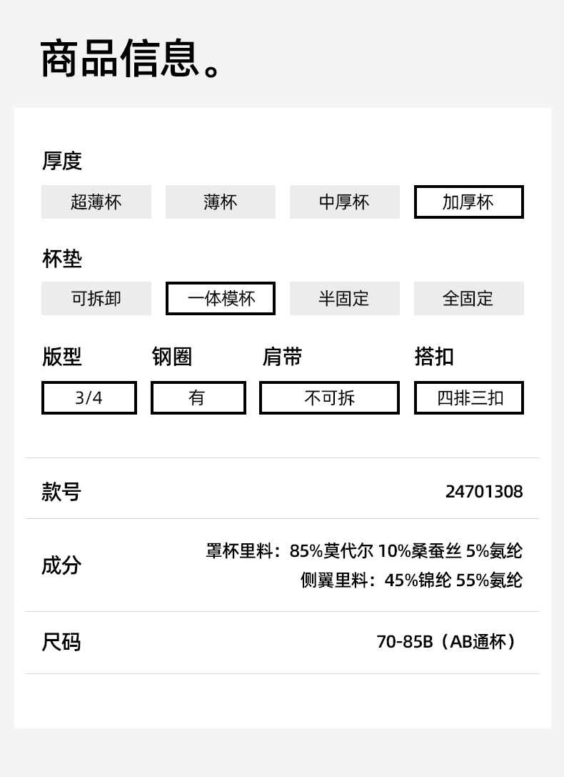 【商场同款】熳洁儿 秋日夜色系列小胸聚拢性感织带蕾丝中厚杯云感棉24701308