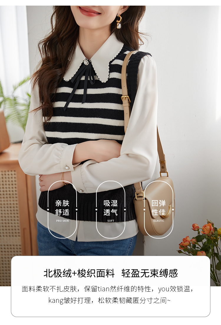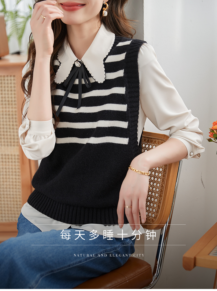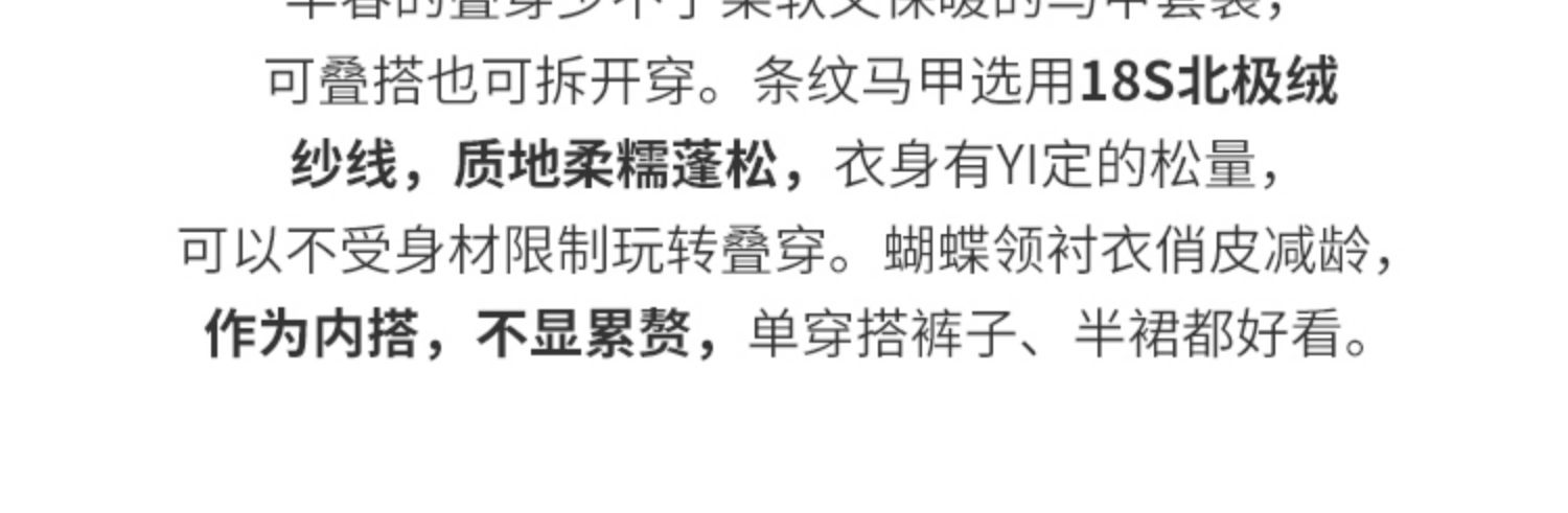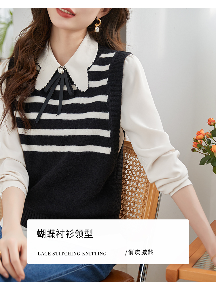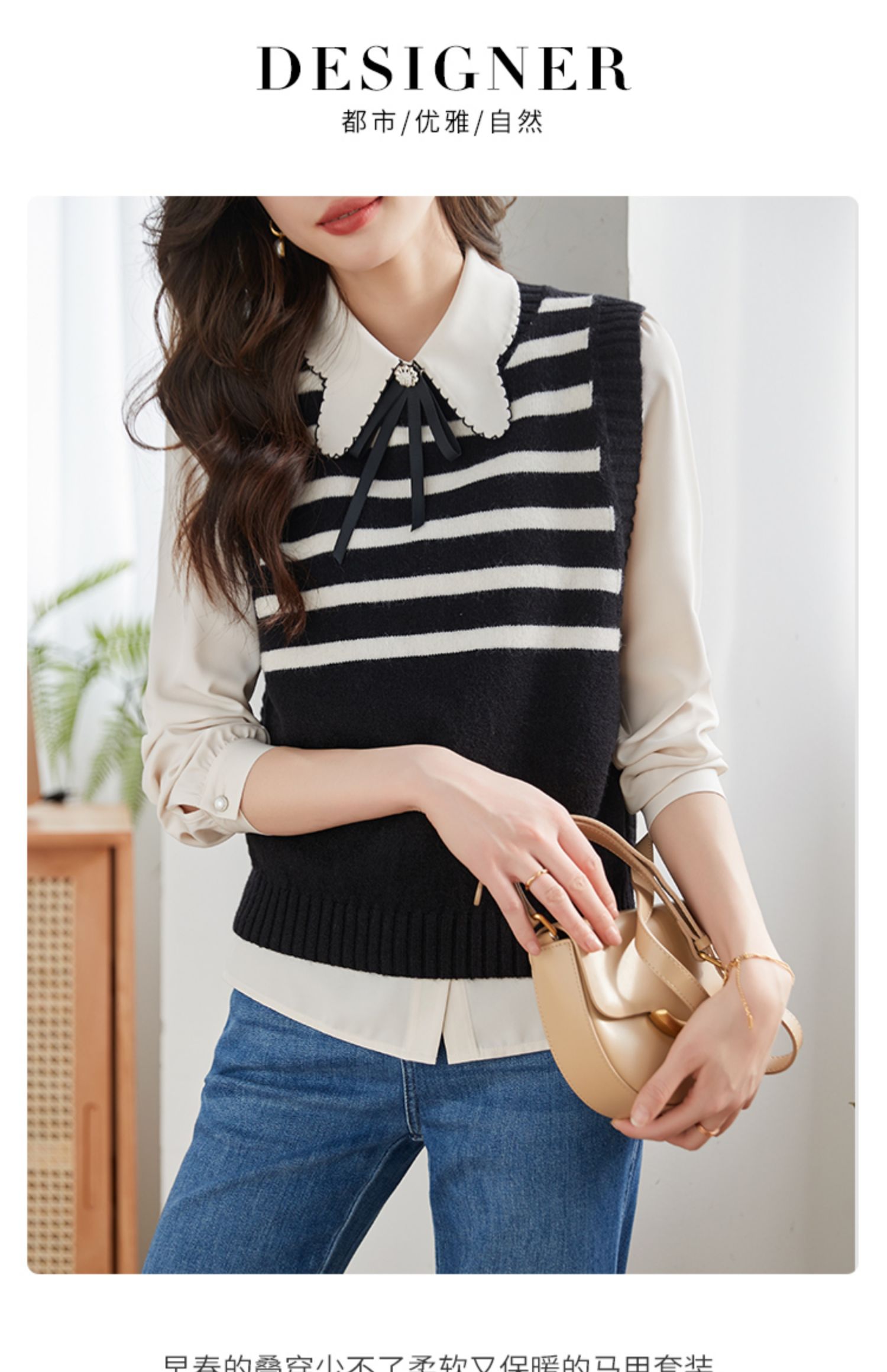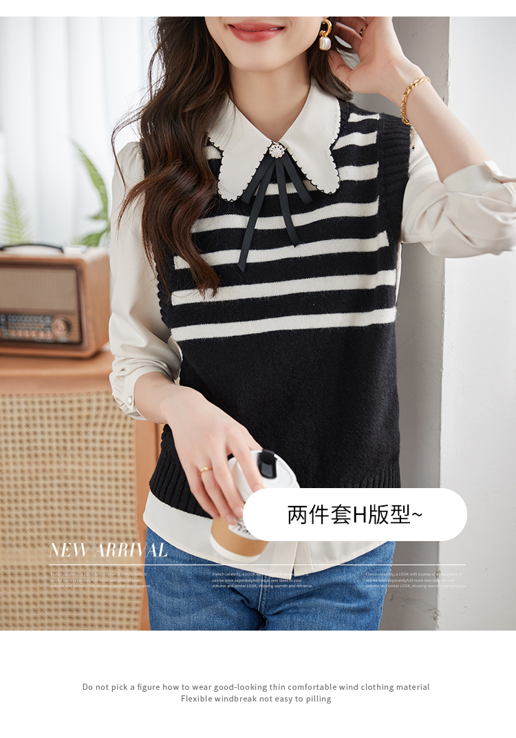 【专属特价】熙世界条纹针织衫马甲套装女2025春装新款无袖背心上衣衬衫两件套