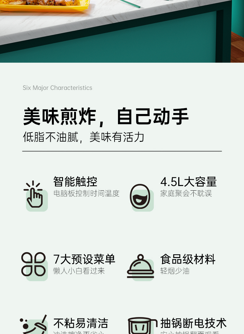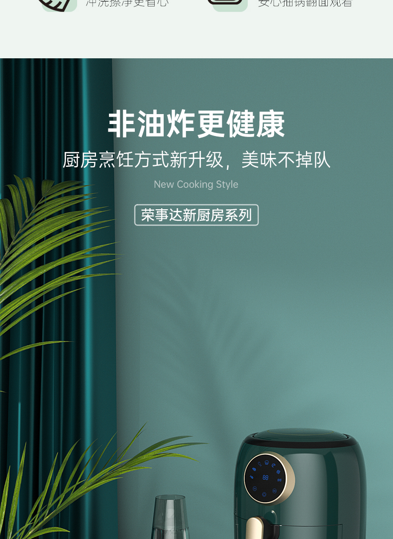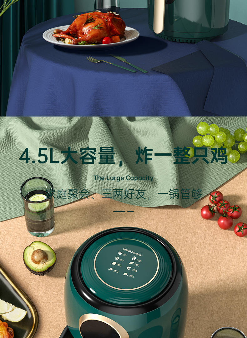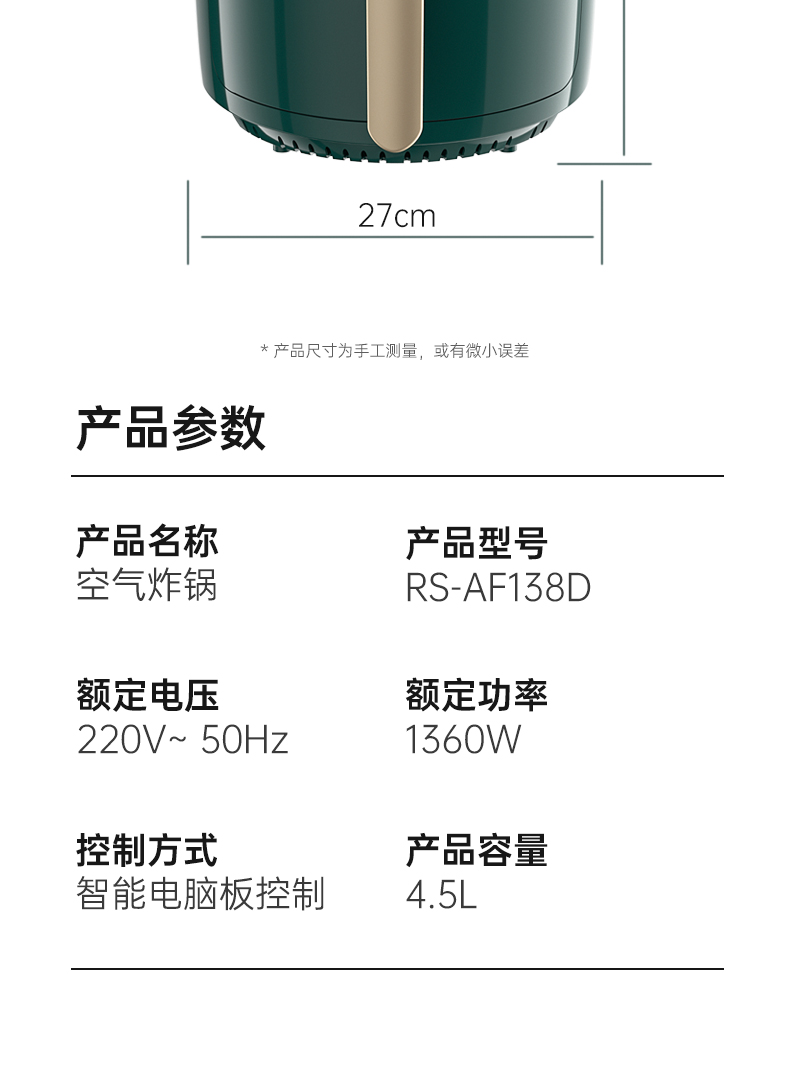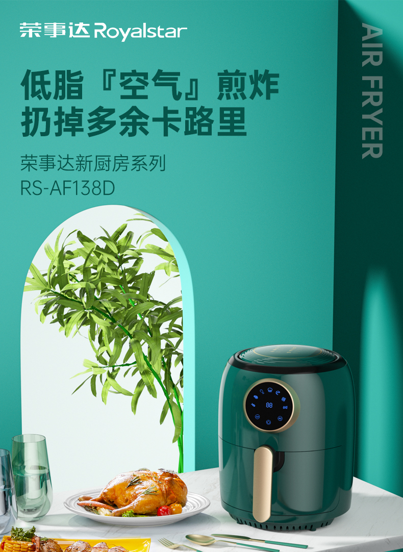 荣事达 空气炸锅 RS-AF138D 容量4.5L 一机多用 智能菜单 轻松享美食 48小时发货