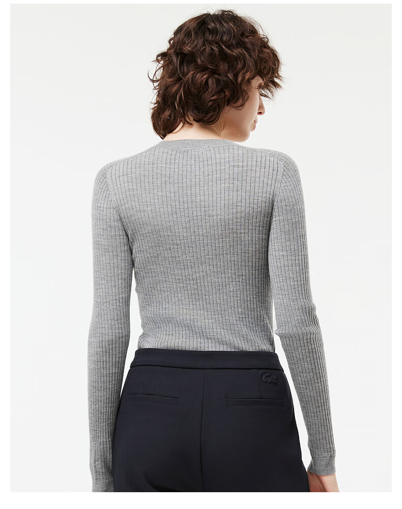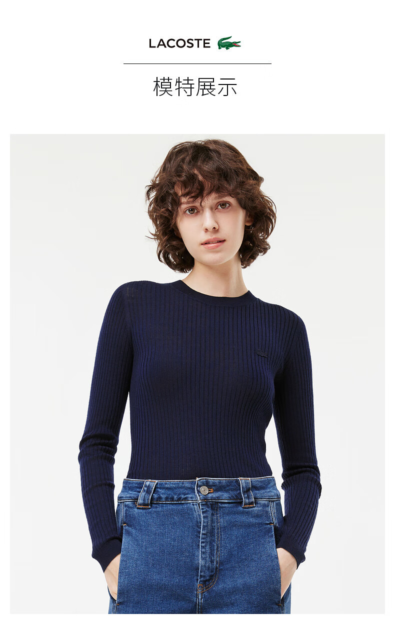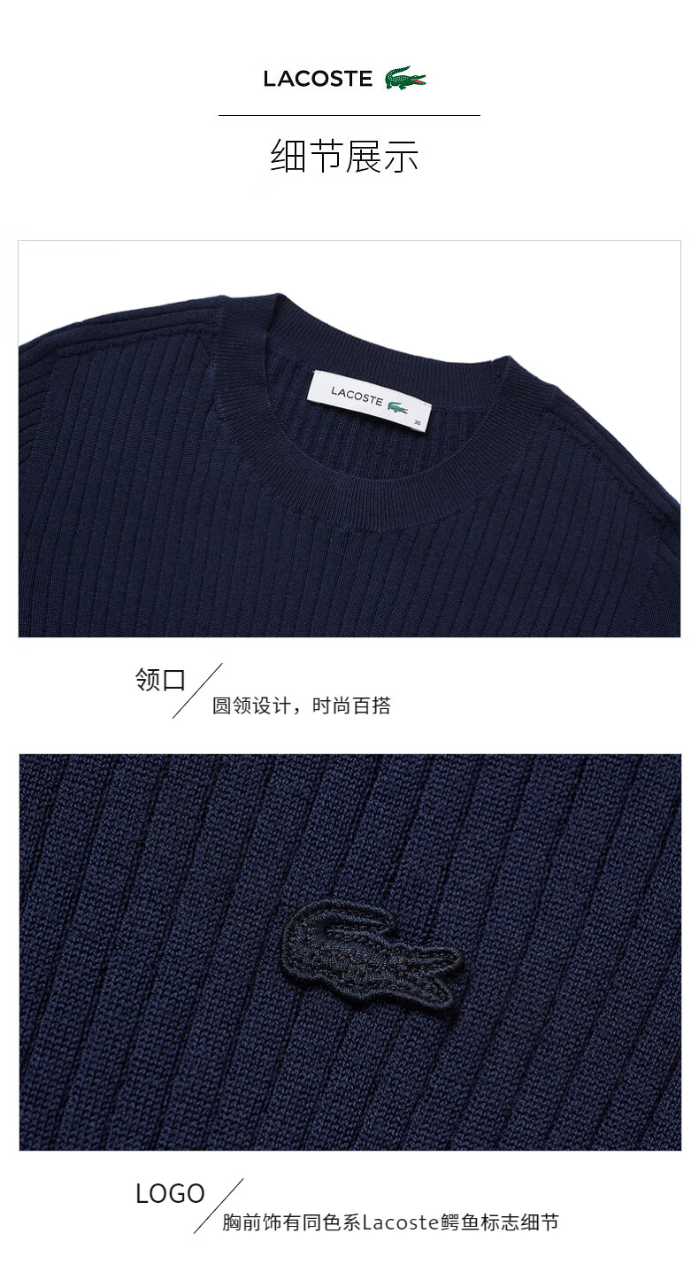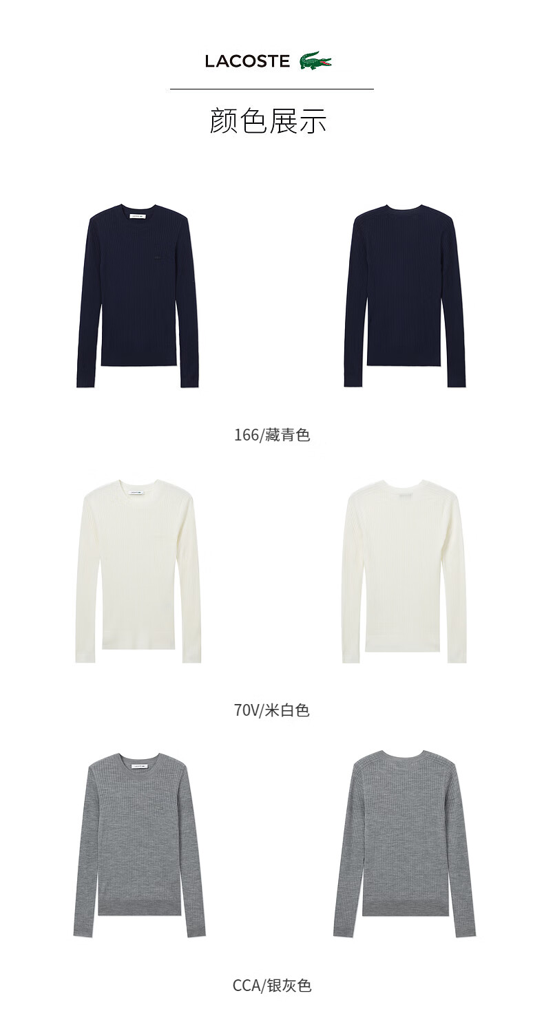 Lacoste法国鳄鱼女装新款时尚百搭修身气质圆领羊毛毛衣AF2576-98