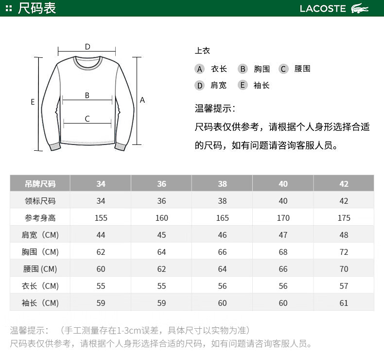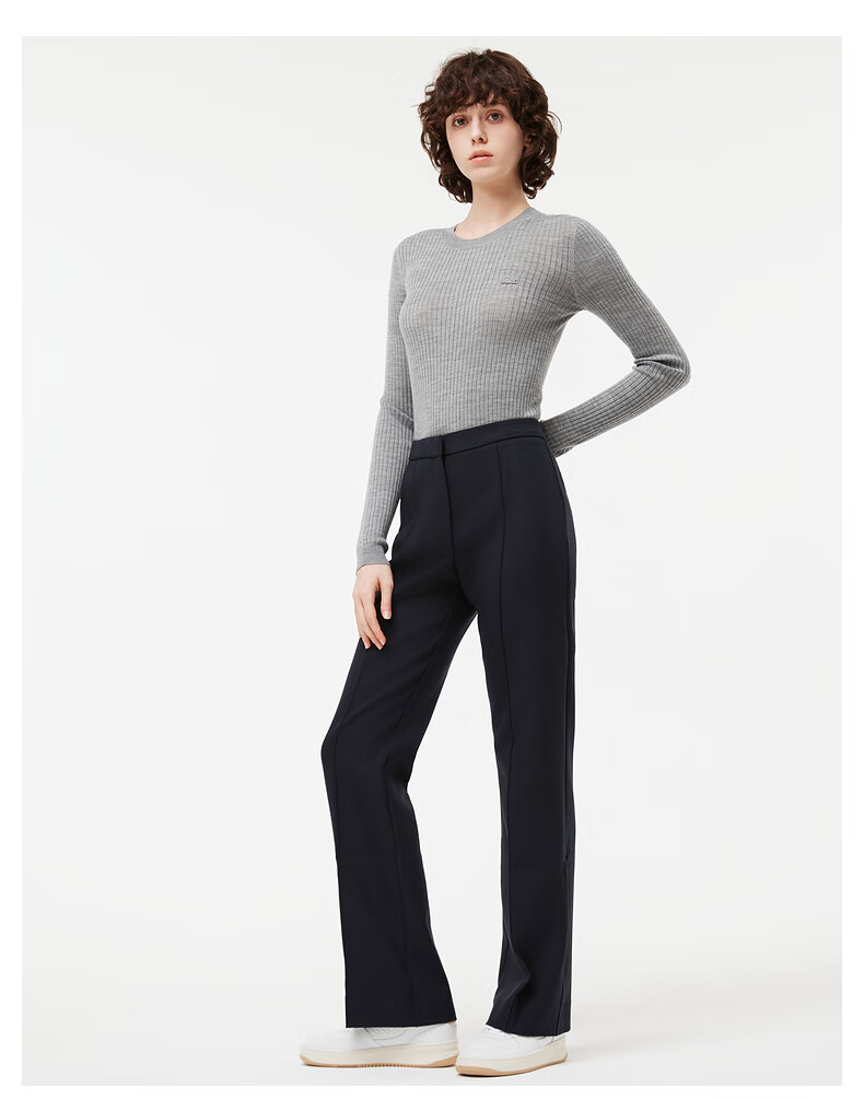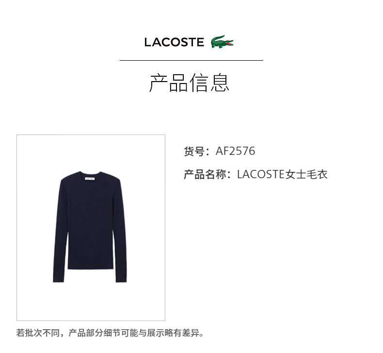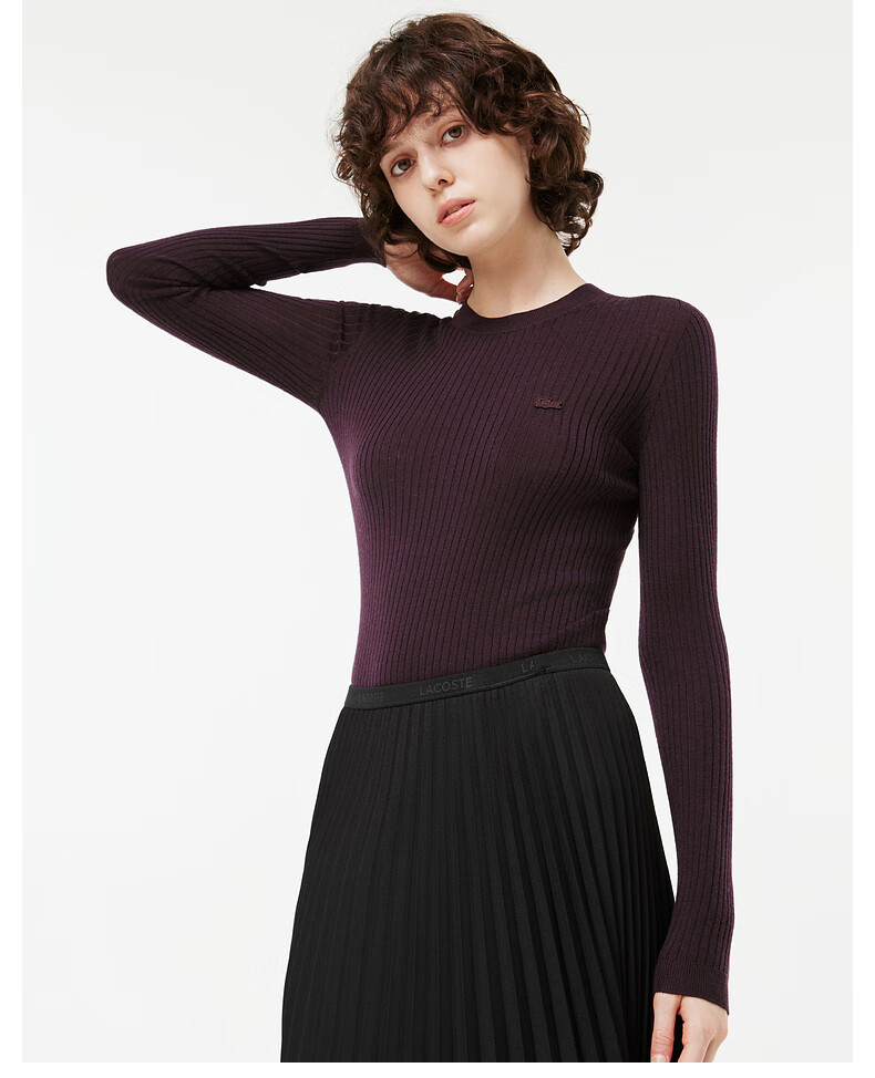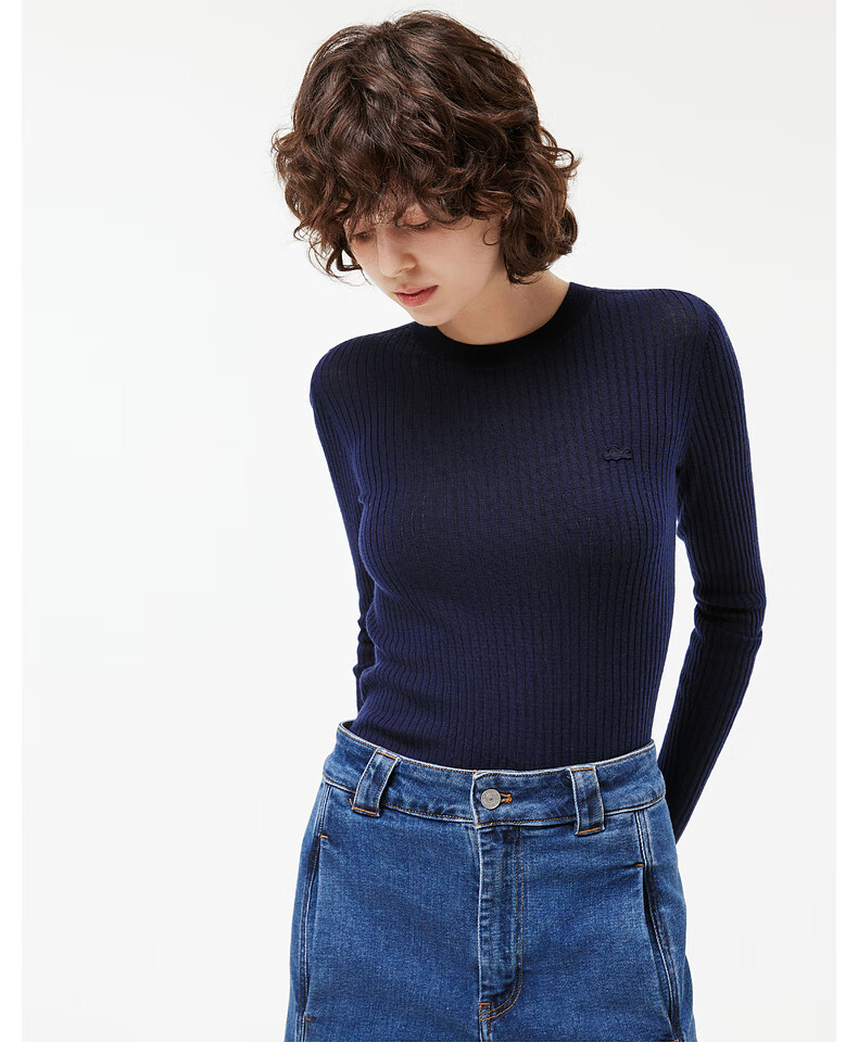 Lacoste法国鳄鱼女装新款时尚百搭修身气质圆领羊毛毛衣AF2576-98