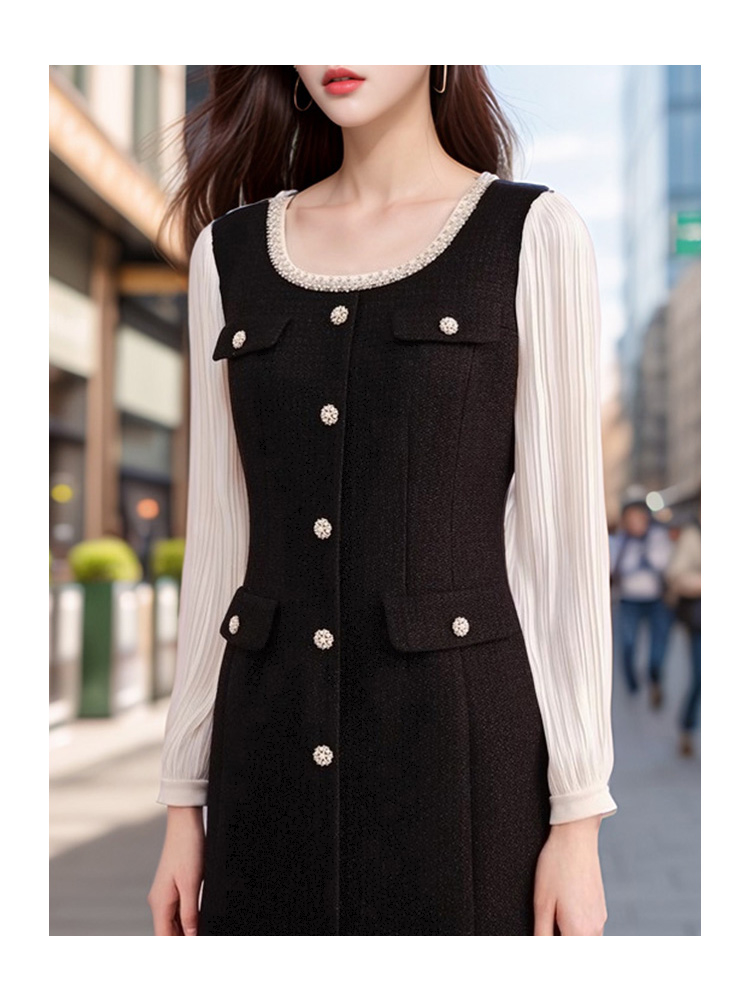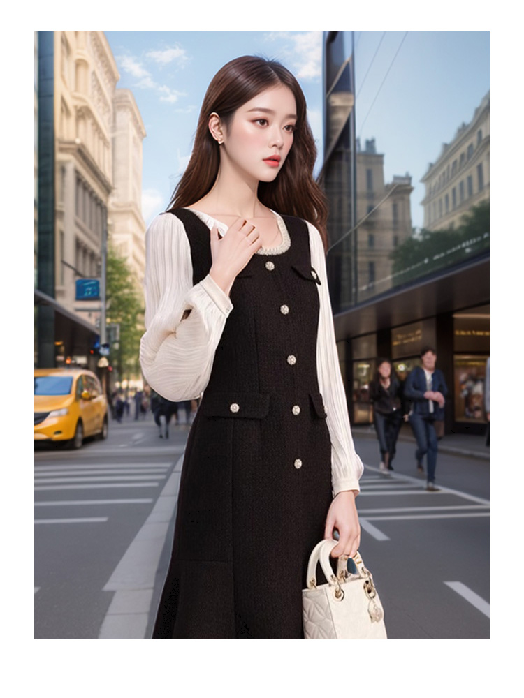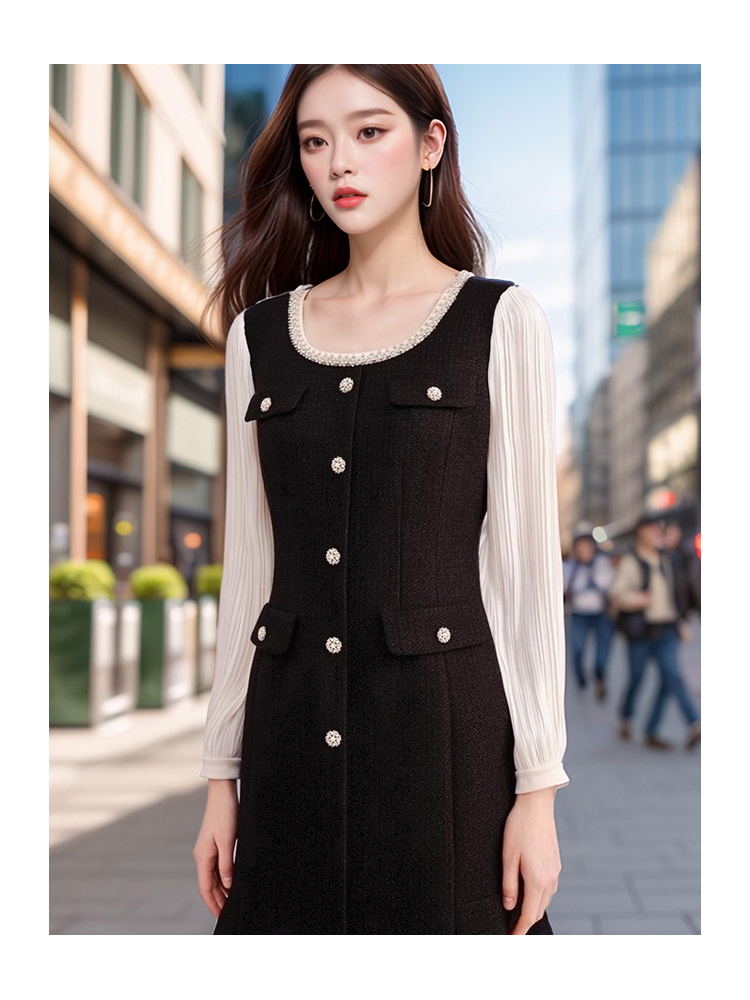 奢姿2024年秋季新款大码女装织带圆领裙子胖妹妹名媛气质连衣裙9943853673