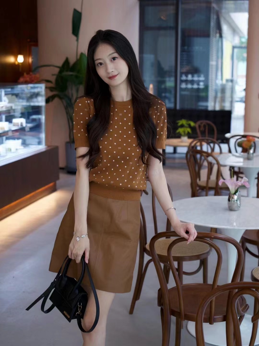 歌力思ELLASSAY 针织衫+皮裙EWE353M00500796