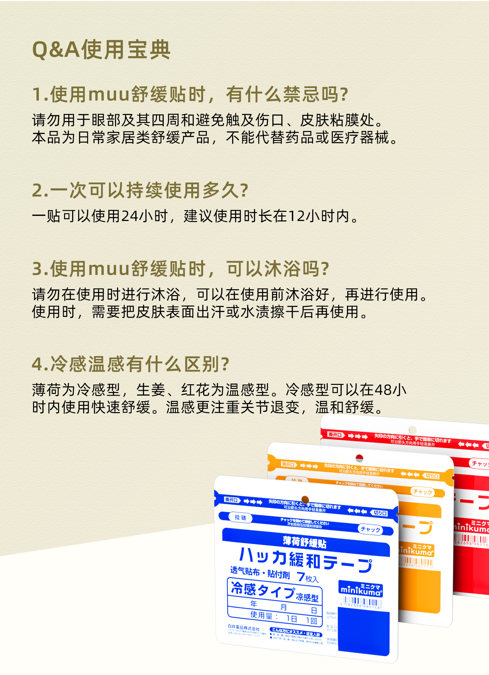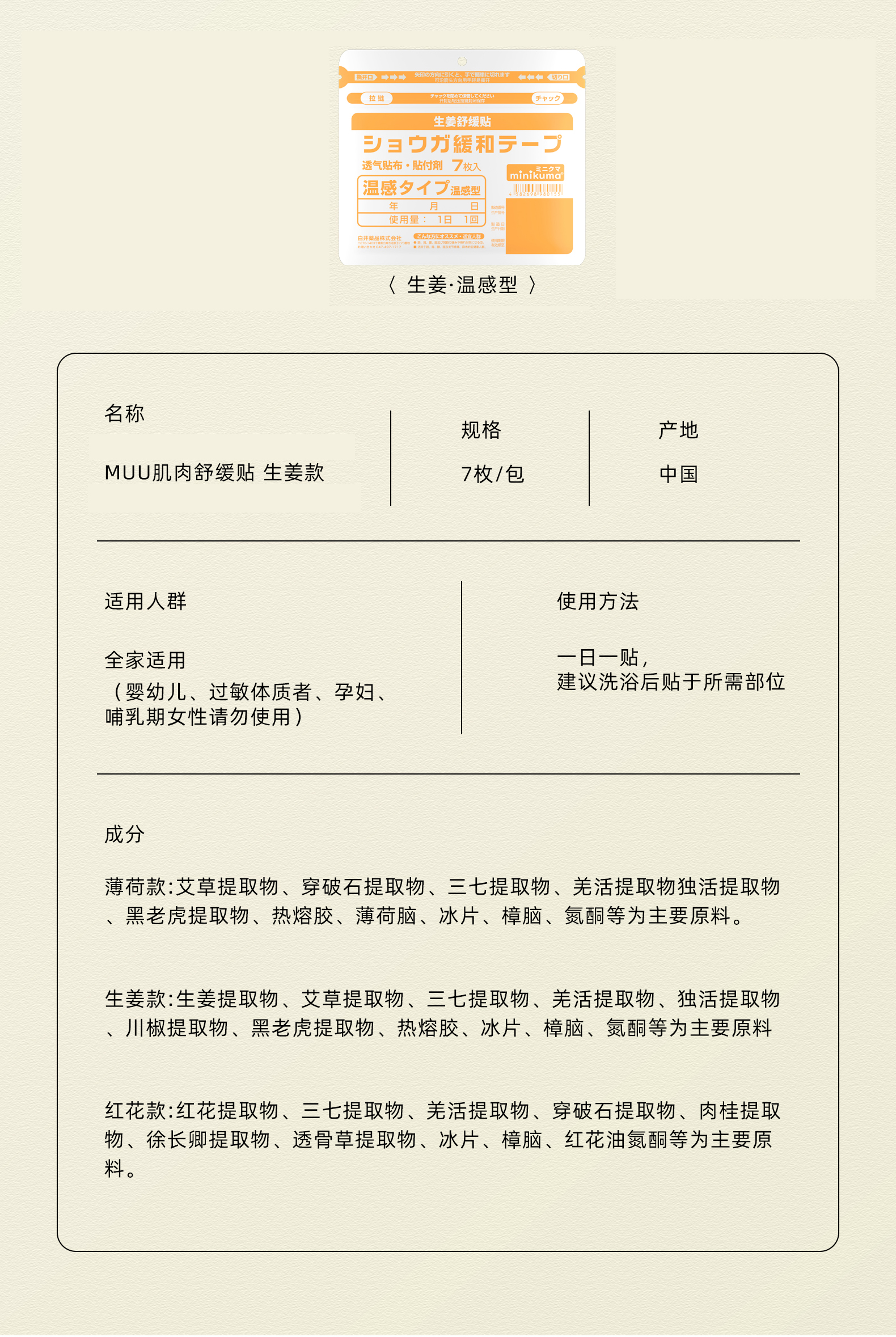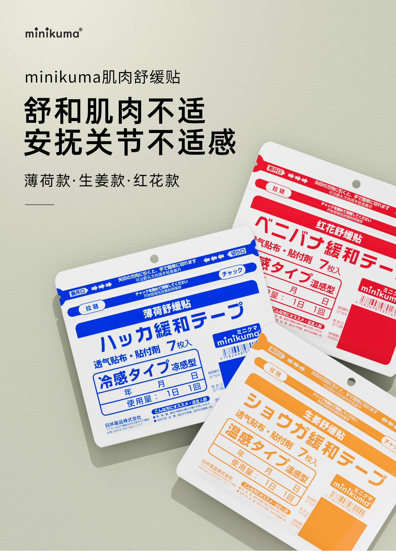 minikuma肌肉缓解生姜舒缓贴-温热版(7枚/包)生产日期: 25年6月