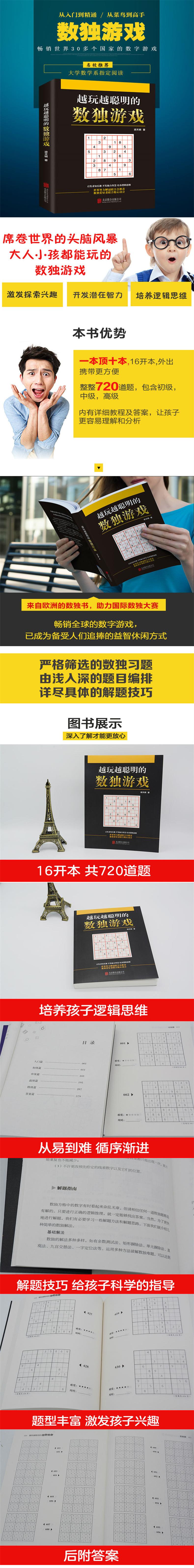 数独一词源于日语,是“SUDOKU”的音译,意思是“每个数字仅能出现一次”。看到数独的题目,人们首先会想到中国古代的“九宫格”。这是一种逻辑性非常强的的数字拼图益智游戏,它不仅具有很强的趣味性,而且对人的大脑非常有益处,如今它已经席卷个了整个世界。本书是一本标准数独游戏精选合集,其中开始处的“入门篇”主要介绍了数独的一些知识,并介绍了基本的解题方法,接下来的“初级篇”“中级篇”“高级篇”“特级篇”则为大家准备了不同难度的数独题目。数独作为一种智力游戏,已经有两百多年的历史了。1783年,瑞士盲人数学家莱昂哈德·欧拉发明了一种在当时称作“拉丁方块”的游戏,但这种游戏在当时并没有引起人们的重视。直到20世纪70年代,美国杂志以“数字拼图”的名称将它重新推出,而日本随后接受并推广了这种游戏。1984年,一家日本游戏杂志提出了“独立的数字”的概念,并将这种游戏命名为“SUDOKU(数独)”,由此这......