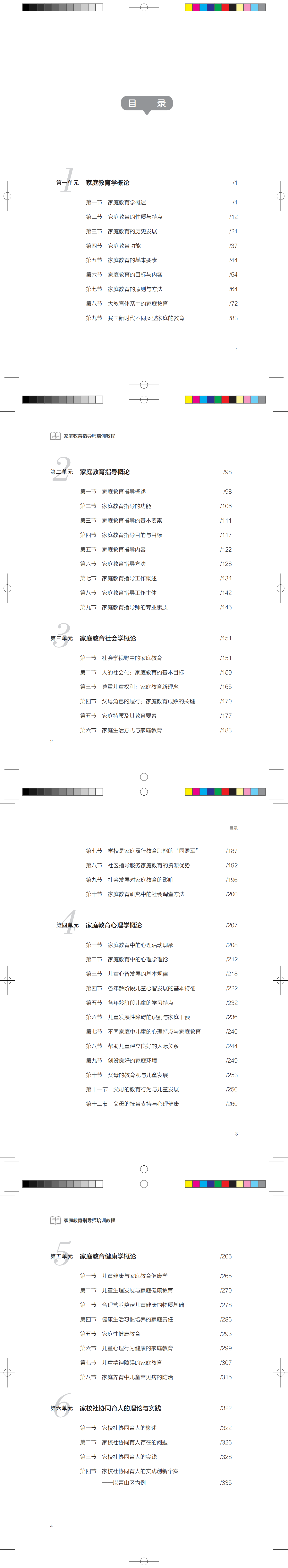 【体系完备】 六大单元跨科融合——家庭教育学、指导概论、社会学、心理学、健康学、家校社协同育人。