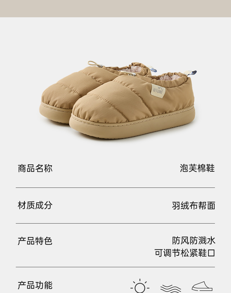 【代发】优调泡芙棉鞋成人款棉拖鞋冬季男/女款居家锁温御寒防泼水