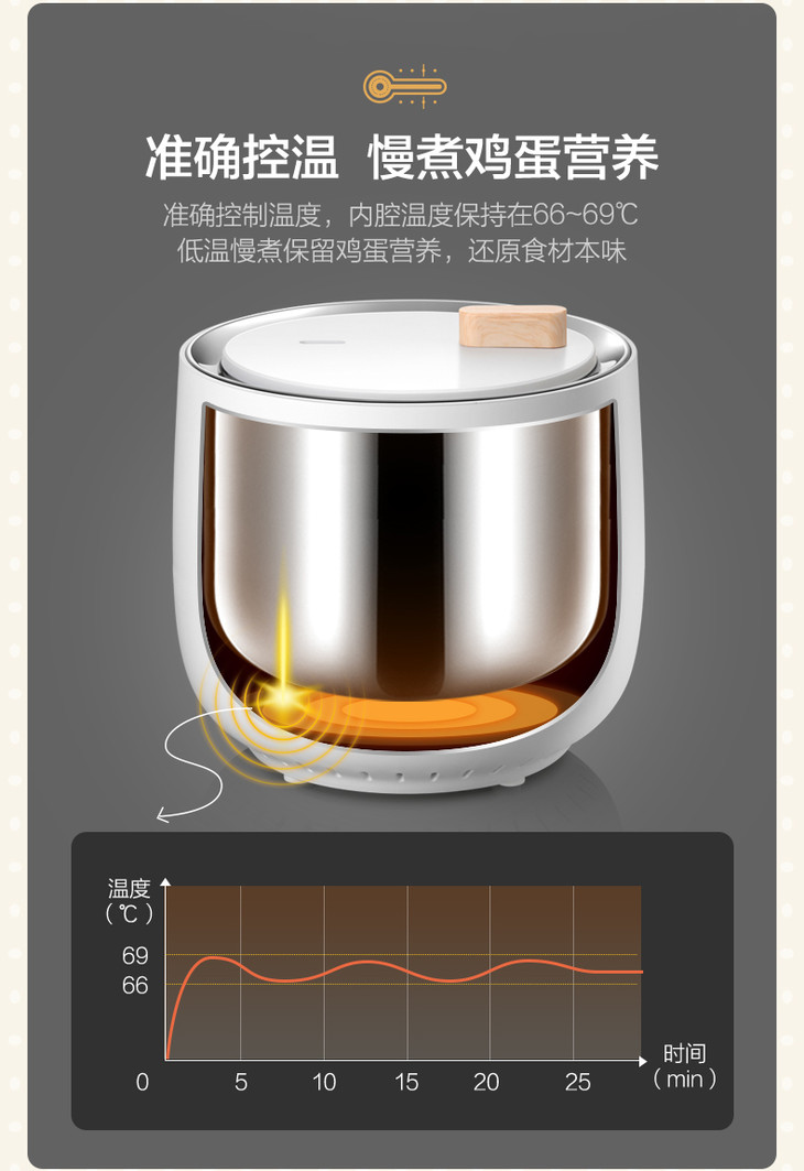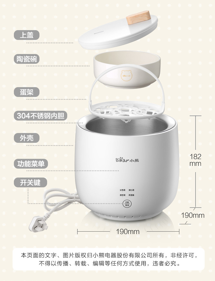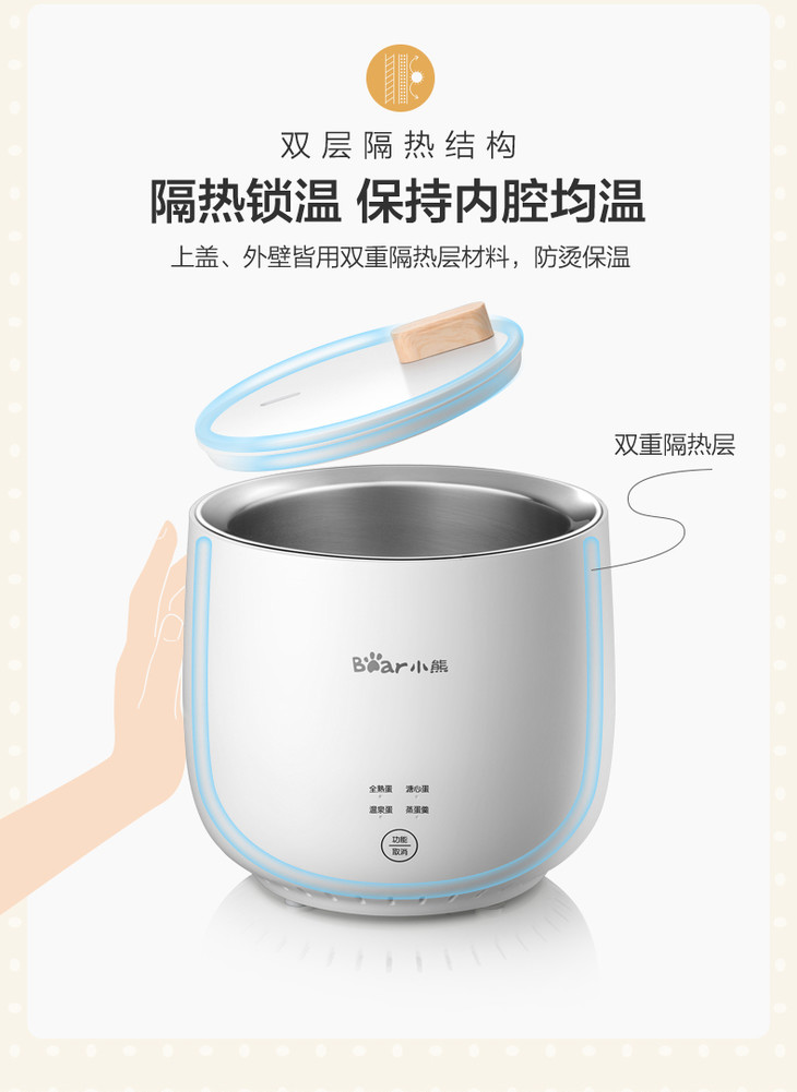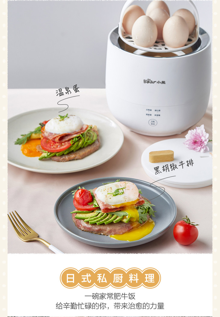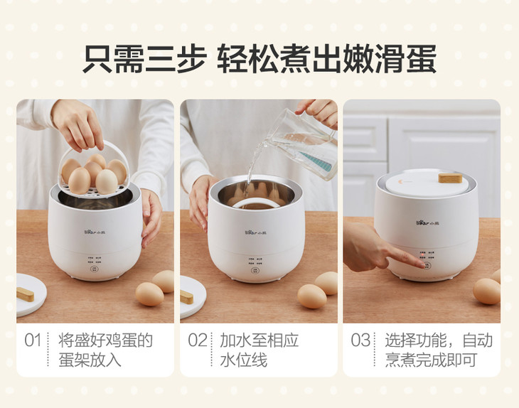 【小程序】小熊煮蛋器蒸蛋器自动断电家用智能温泉蛋机蒸鸡蛋羹神器溏心蛋机 不锈钢内胆 ZDQ-B06R2