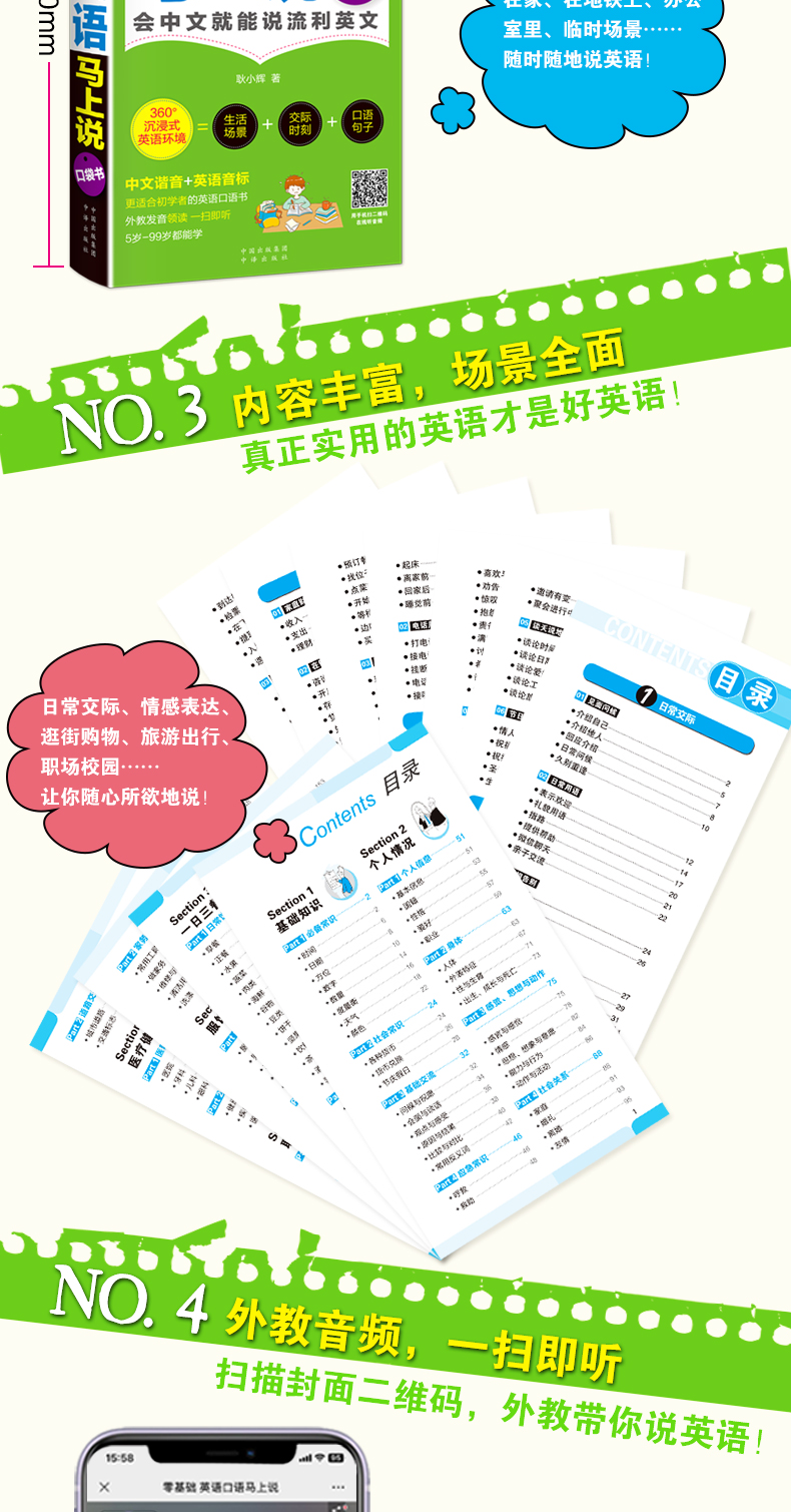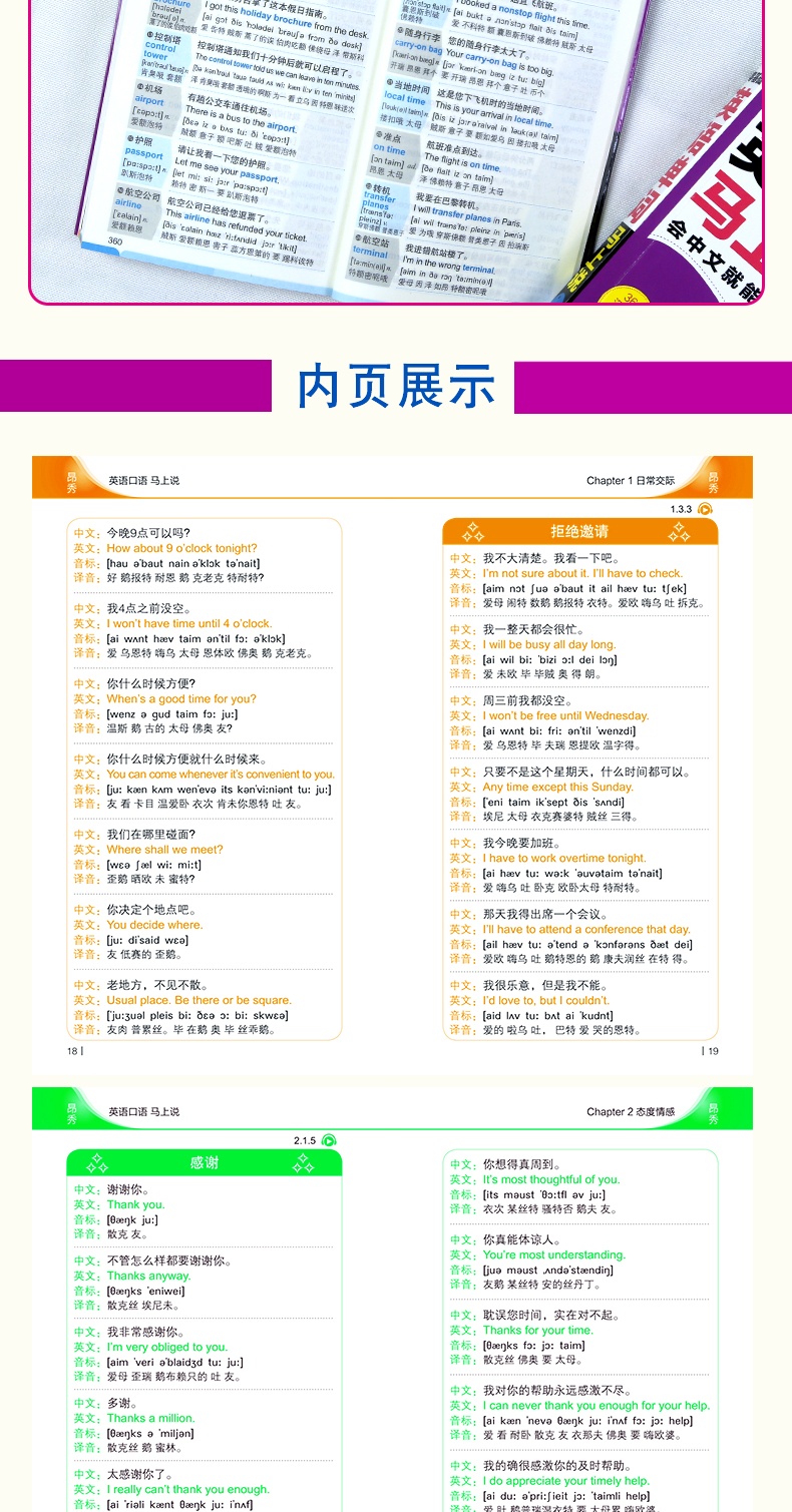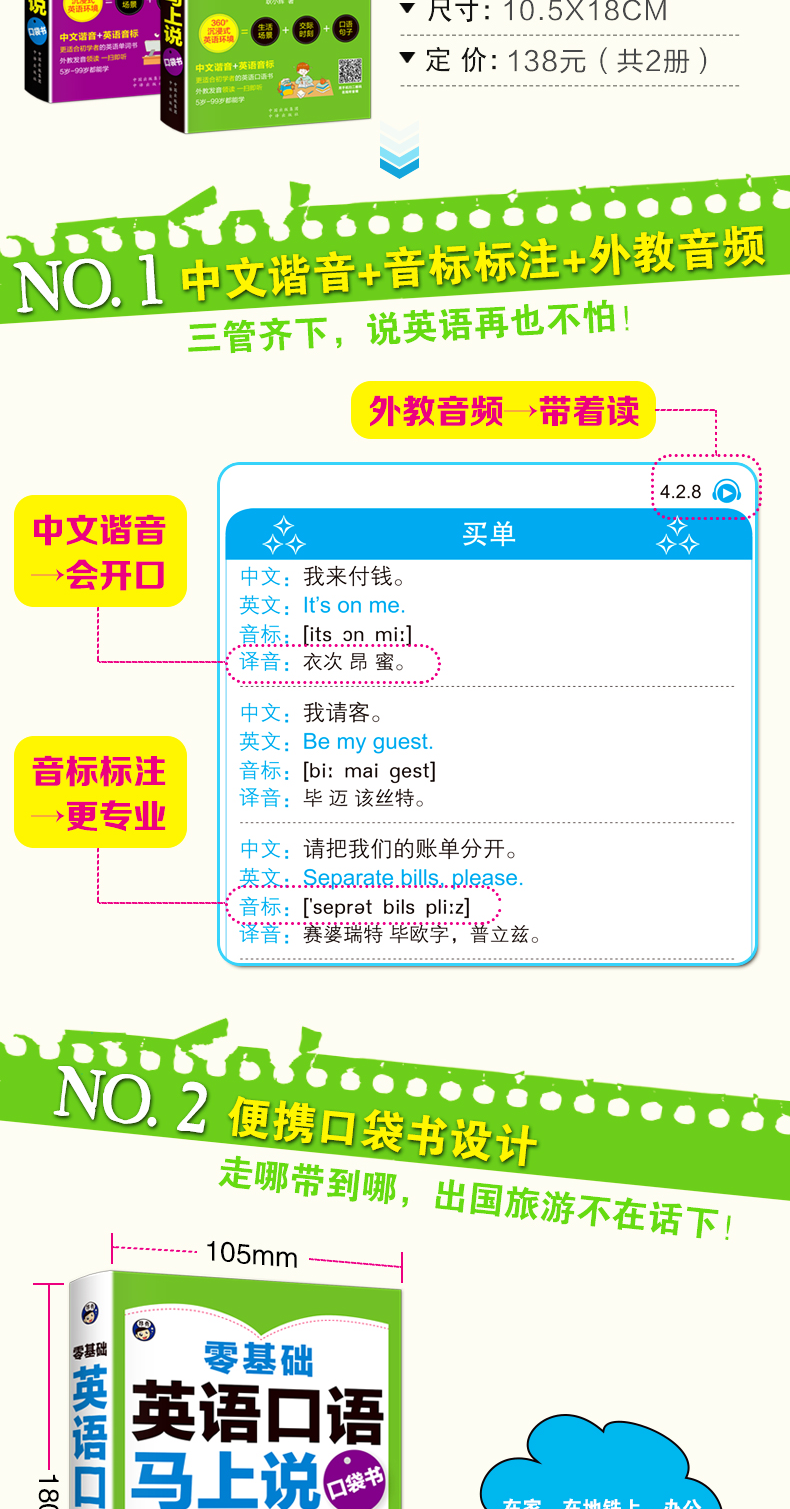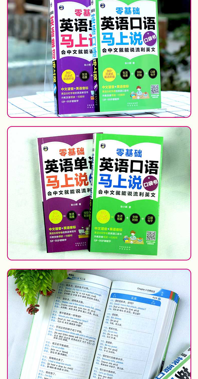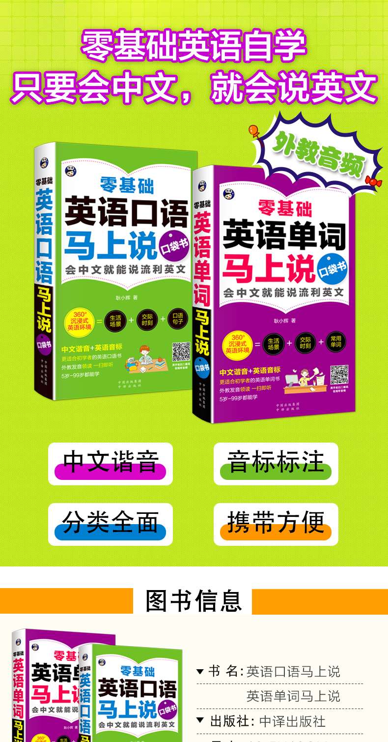 零基础英语单词口语马上说口袋书(2册)会中文就能说流利英文国际音标标注搭配中文谐音