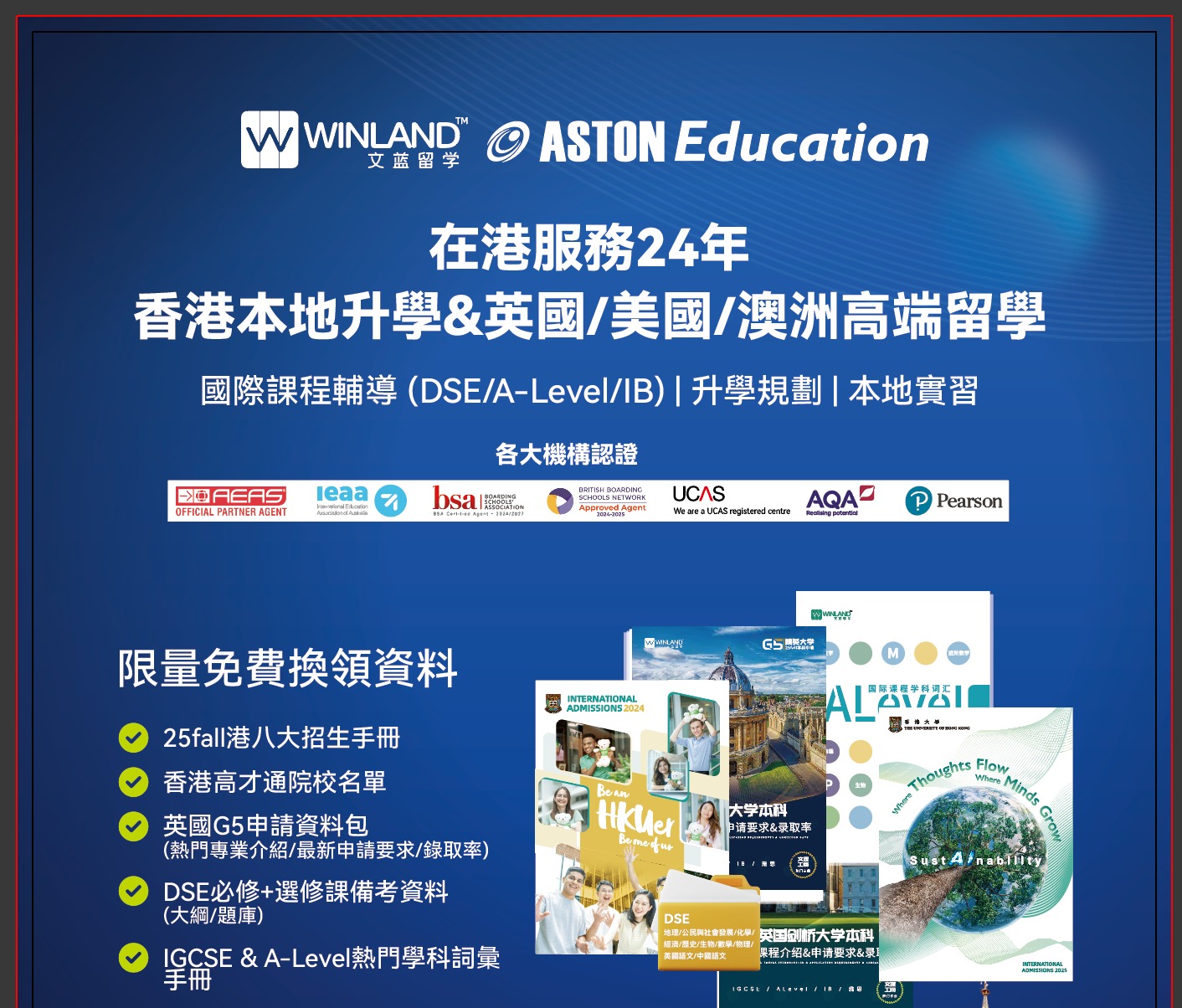 在港服務24年!各大機構認證!香港本地升學&英國/美國/澳洲高端留學,預留信息限量免費換領升學&國際課程資料!